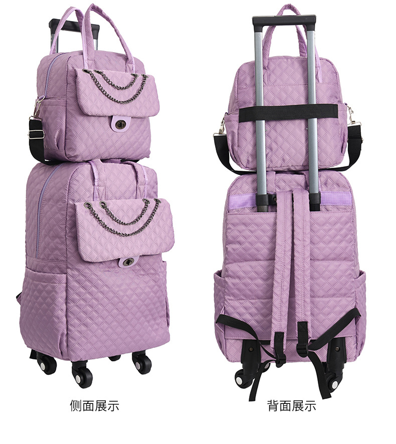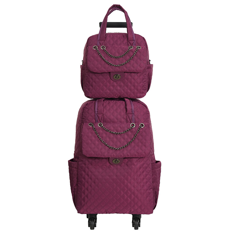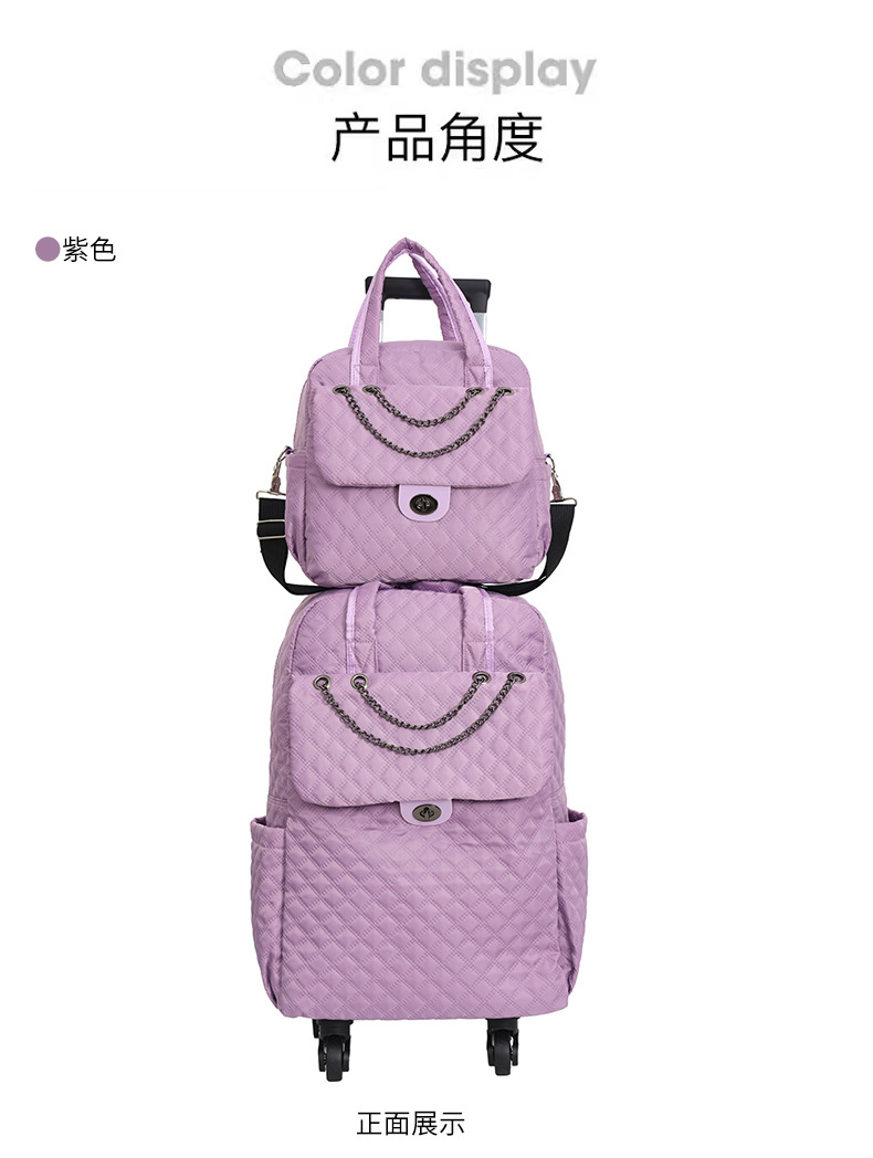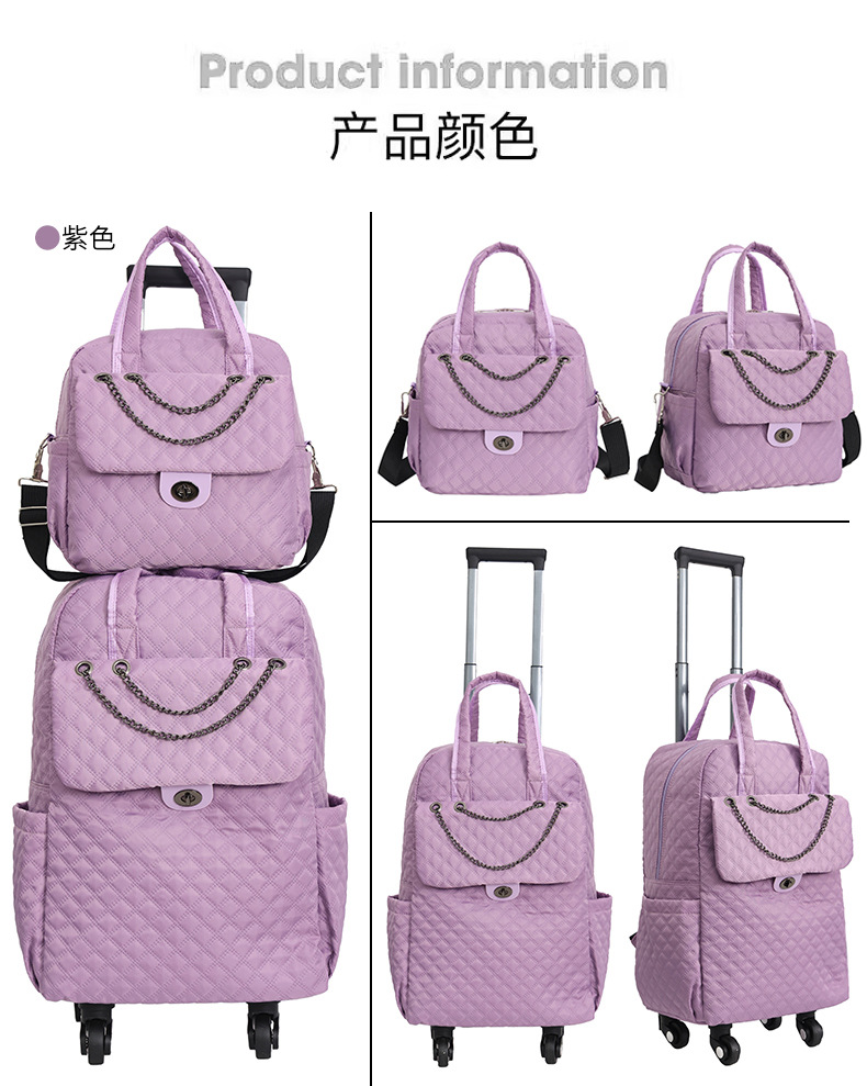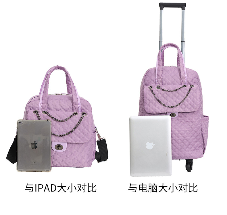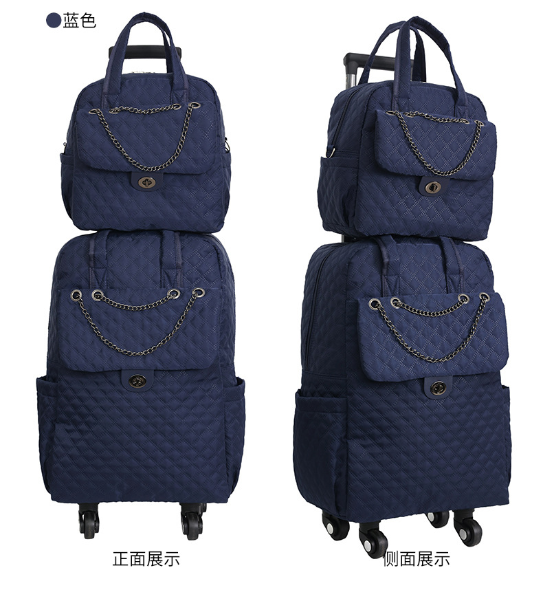 Lingge 작은 향기로운 스타일 트롤리 가방 유행 유행 휴대용 경량 여성용 간단한 보트 가방 가방 유니버설 휠 트롤리 가방스토어 가기