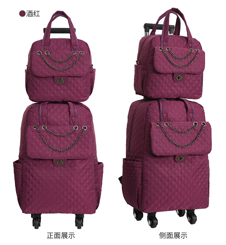 Lingge 작은 향기로운 스타일 트롤리 가방 유행 유행 휴대용 경량 여성용 간단한 보트 가방 가방 유니버설 휠 트롤리 가방