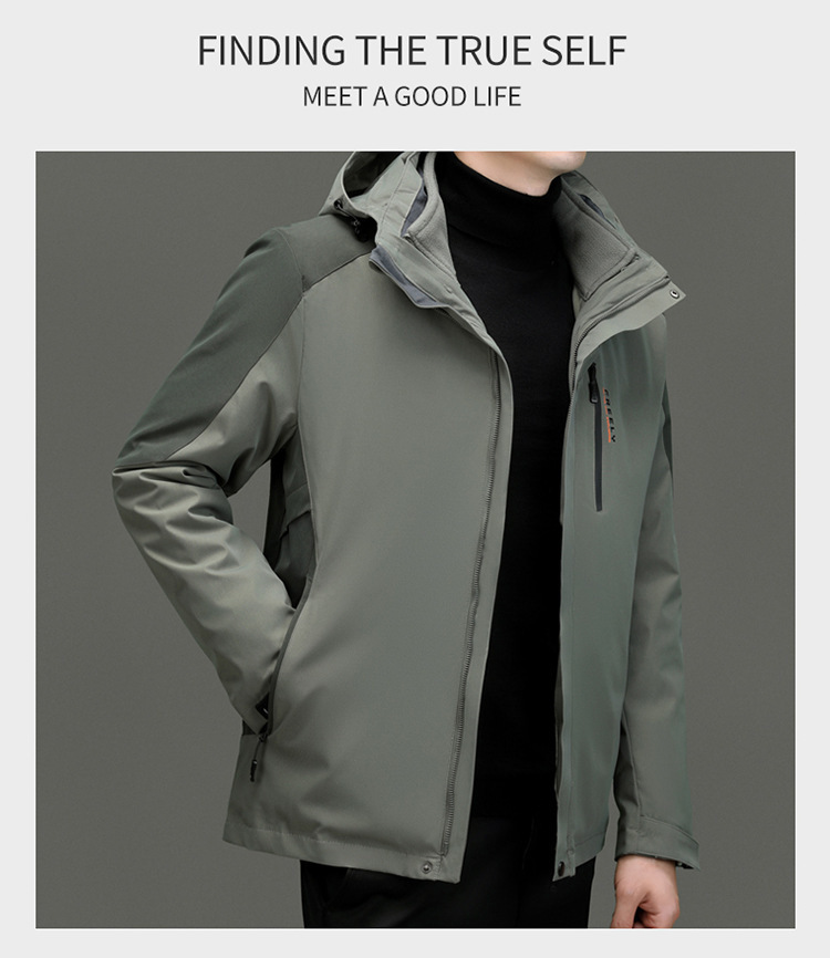 3 대 1 남성 가을 및 겨울 최신 탈착식 라이너 트렌디 한 올 매치 방풍 열 재킷
