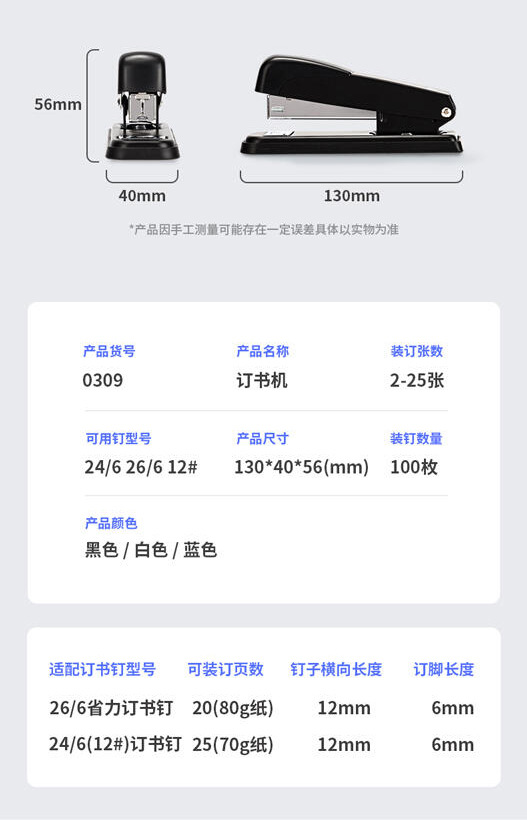 델리 스테이플러 0309 금속 스테이플러 12 바늘 스테이플러 25 장