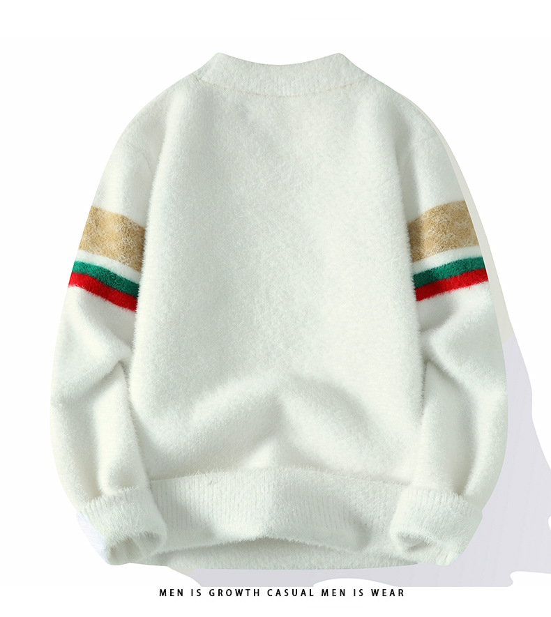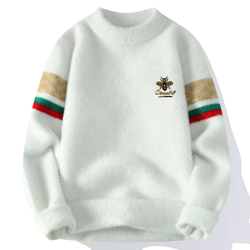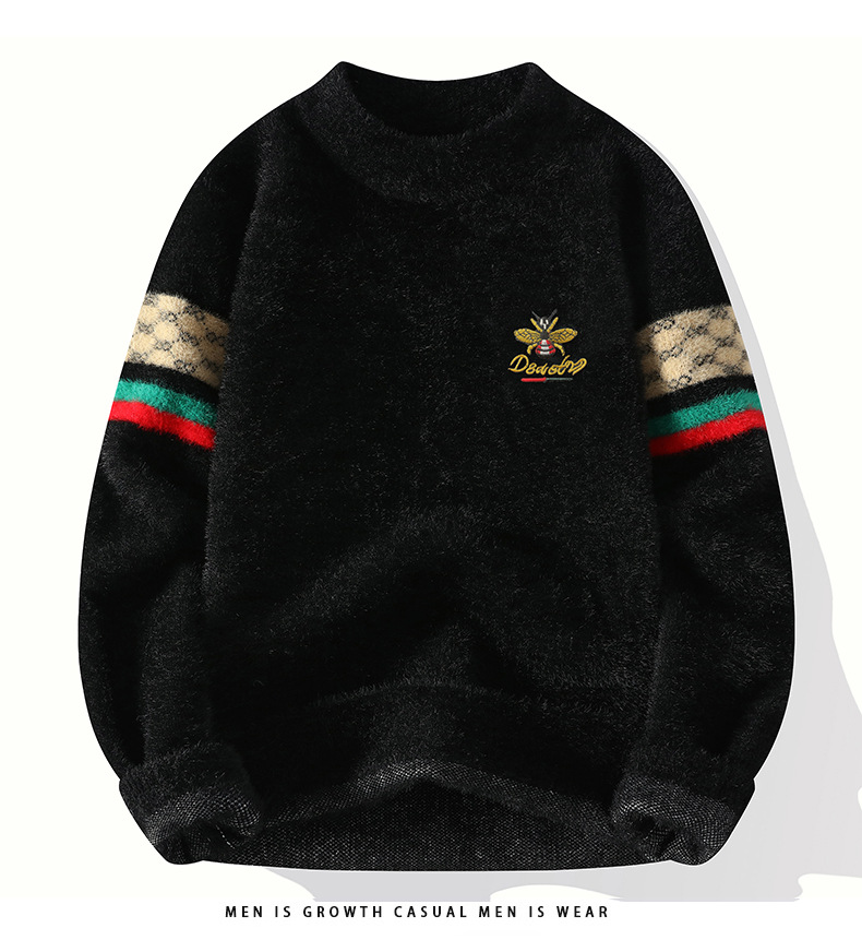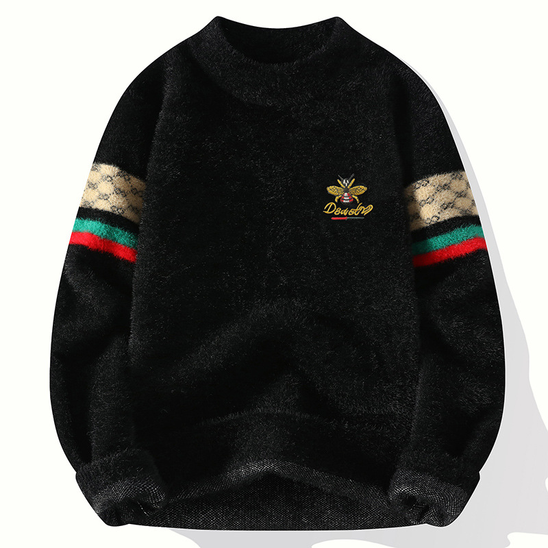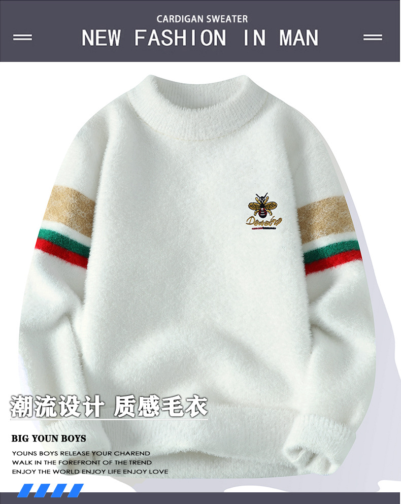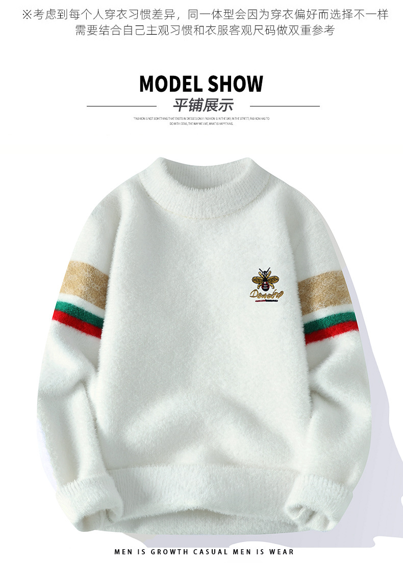 하프 터틀넥 모조 밍크 양털 스웨터 남자 2024 가을과 겨울 두꺼운 스웨터 따뜻한 칼라 옷스토어 가기