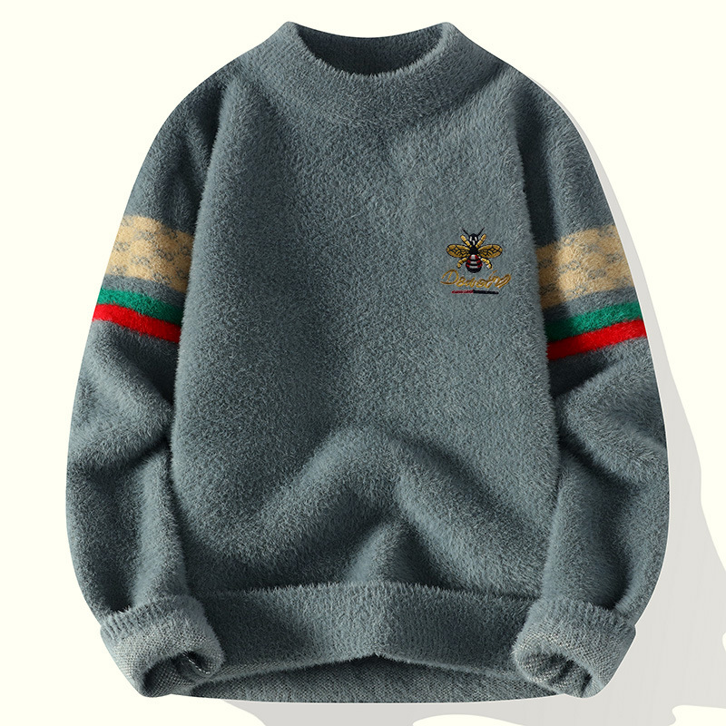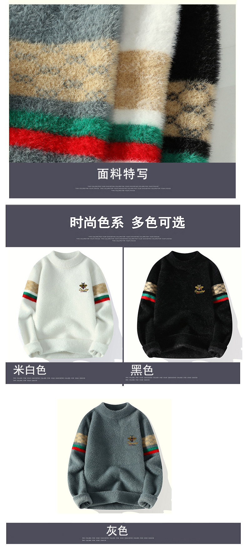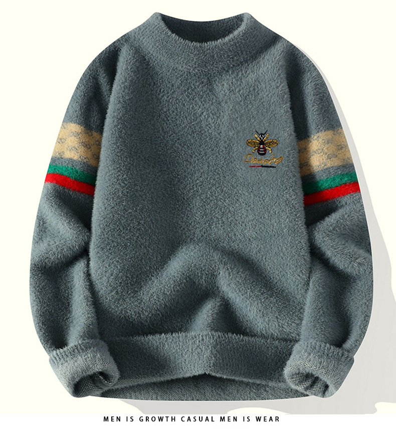 하프 터틀넥 모조 밍크 양털 스웨터 남자 2024 가을과 겨울 두꺼운 스웨터 따뜻한 칼라 옷