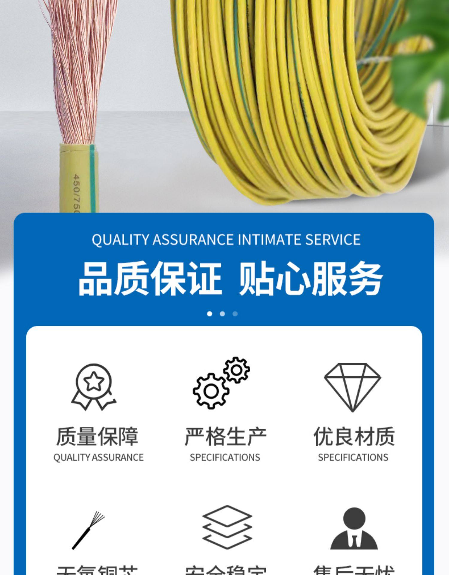 • 국가 표준 다중 연선 연선 황록색 ZR—BVR-10m-0.75 평방 밀리미터