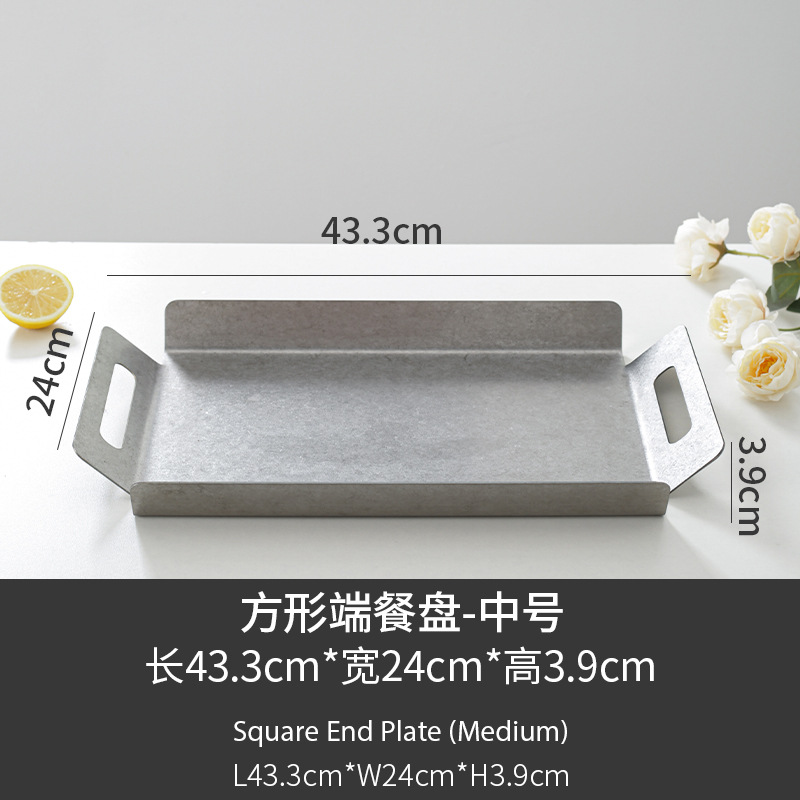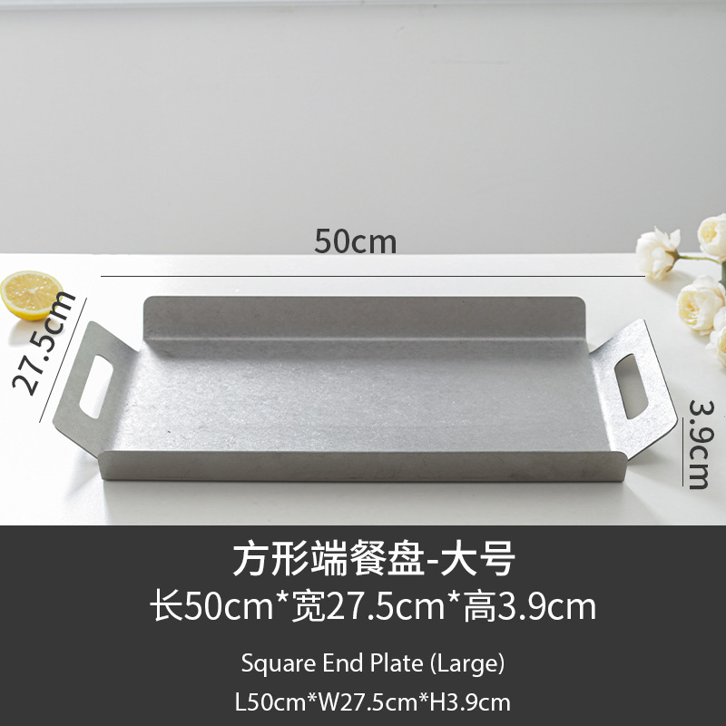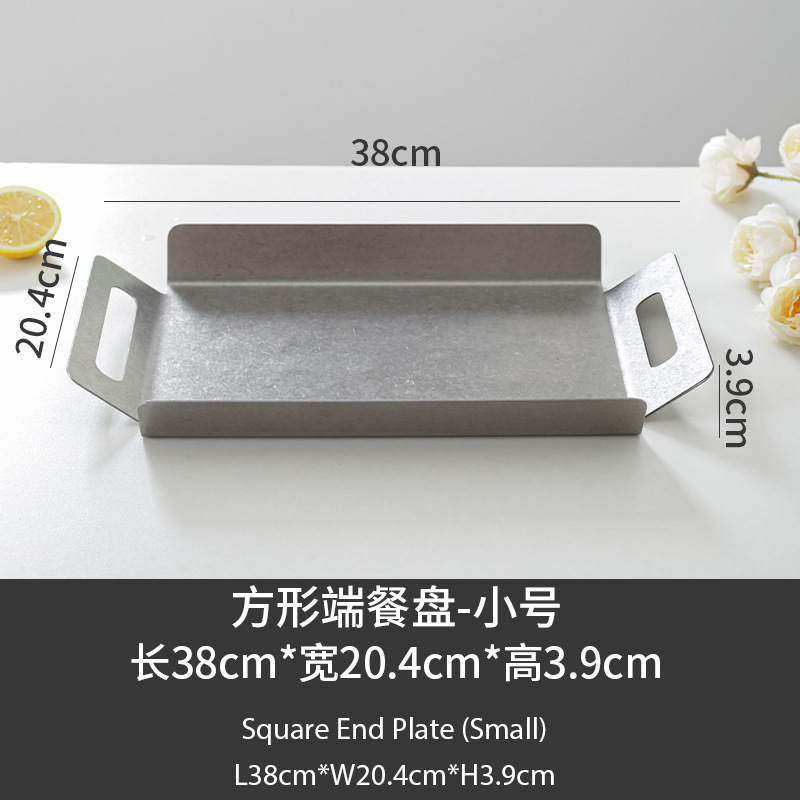 빈티지 304 스테인레스 스틸 엔드 디너 플레이트 커피 숍 애프터눈 티 페스트리 음료 티 트레이 직사각형 바이노럴 트레이스토어 가기