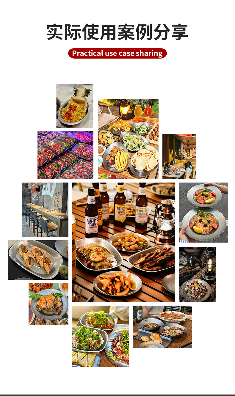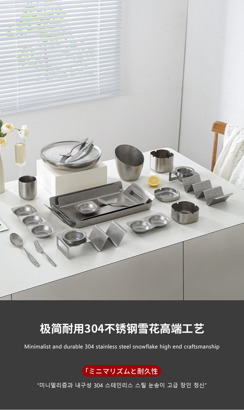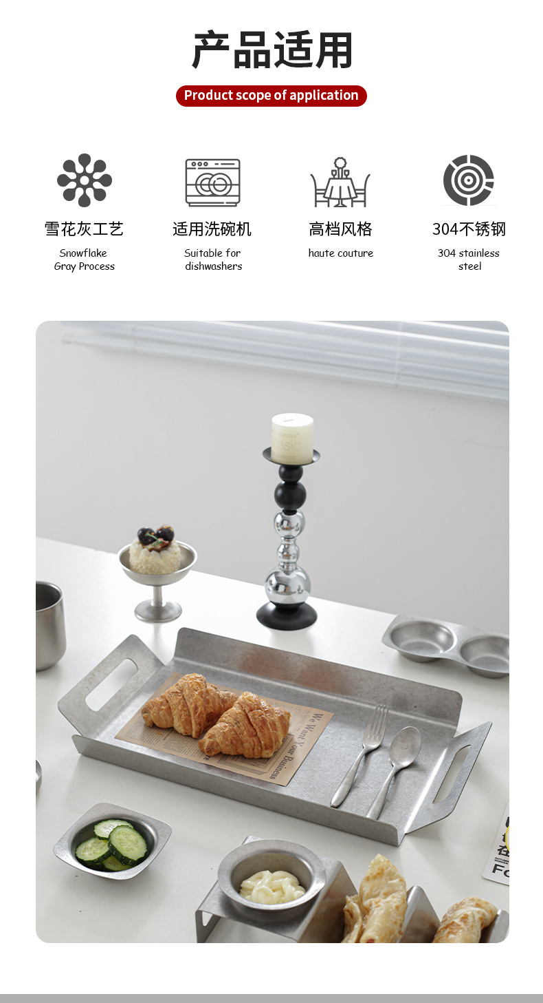 빈티지 304 스테인레스 스틸 엔드 디너 플레이트 커피 숍 애프터눈 티 페스트리 음료 티 트레이 직사각형 바이노럴 트레이
