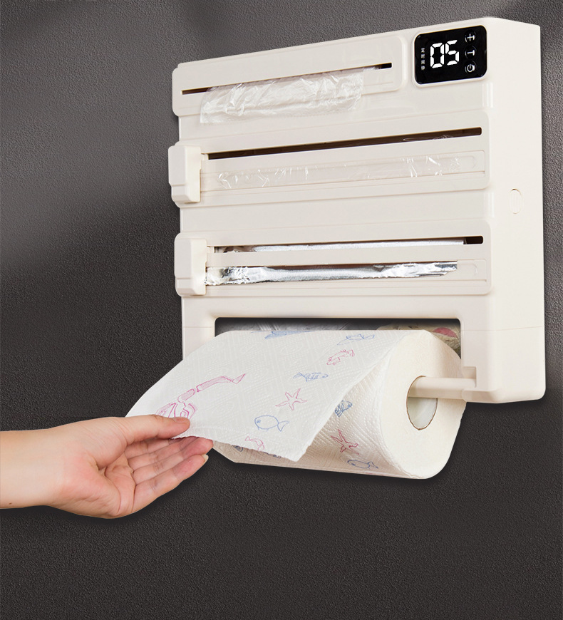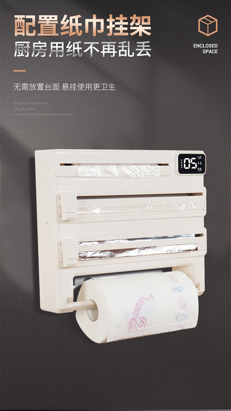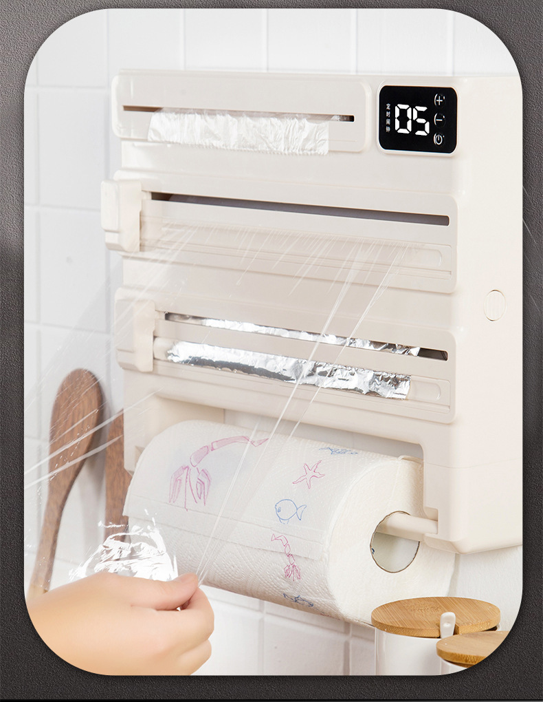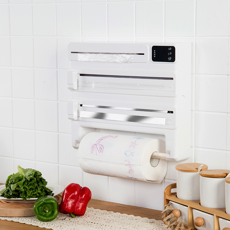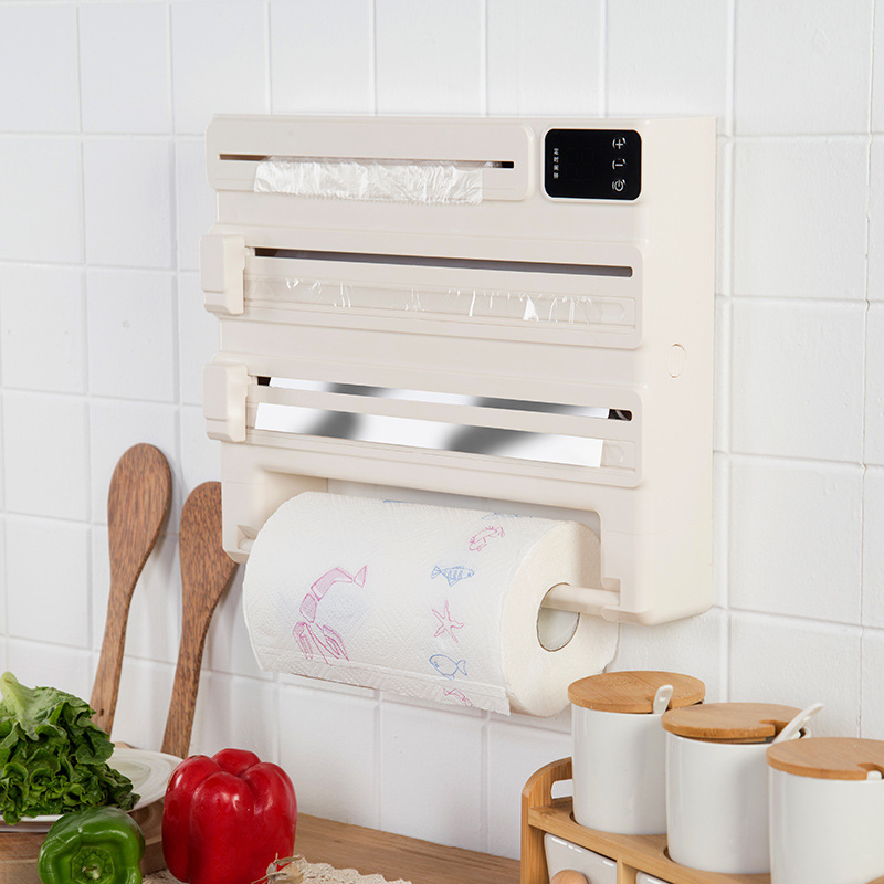 일본 다기능 주방 가정용 천공되지 않은 벽걸이 플라스틱 랩 주석 호일 커터 롤 종이 랙 타이밍