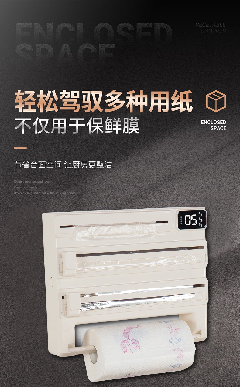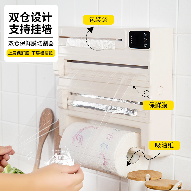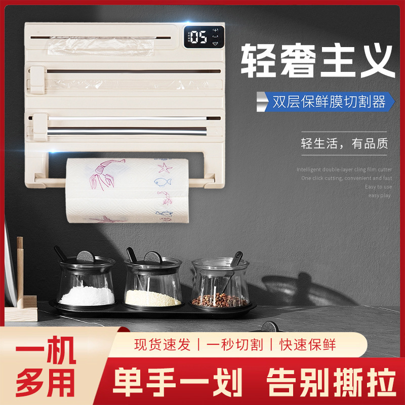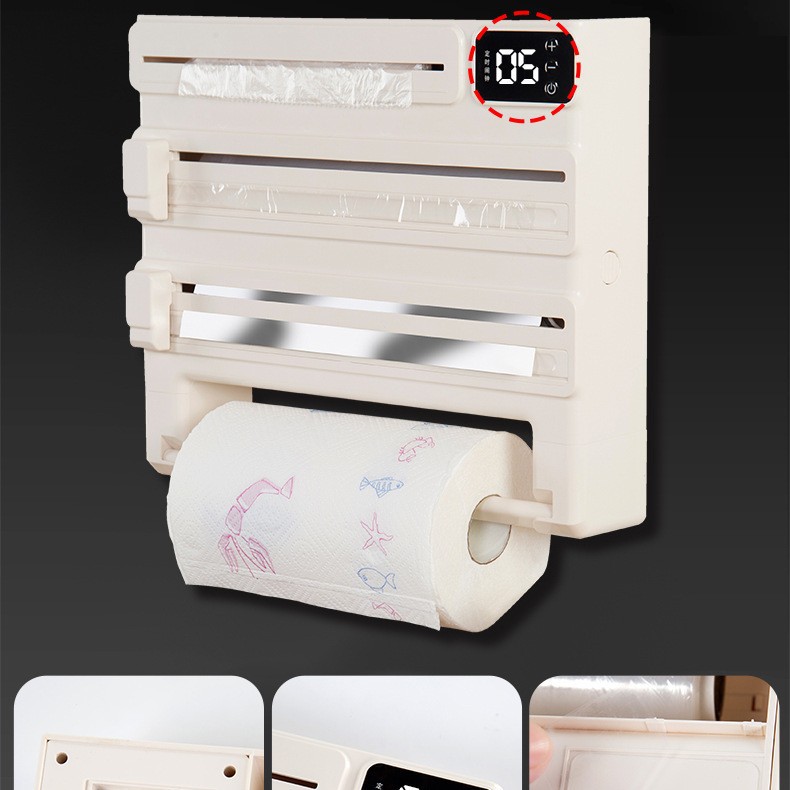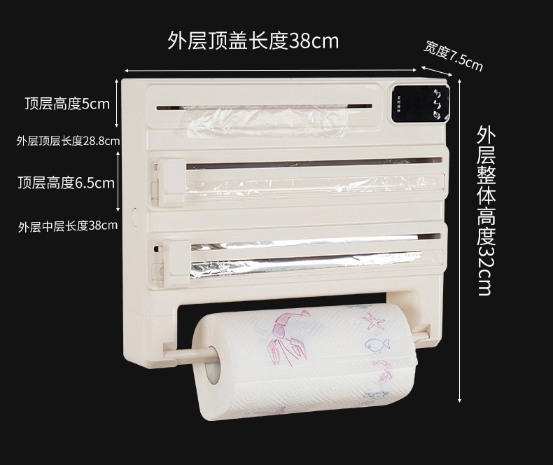 일본 다기능 주방 가정용 천공되지 않은 벽걸이 플라스틱 랩 주석 호일 커터 롤 종이 랙 타이밍