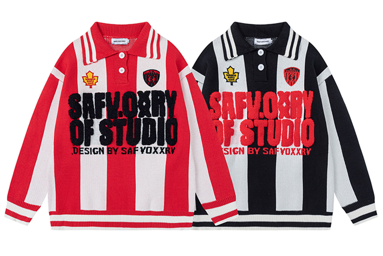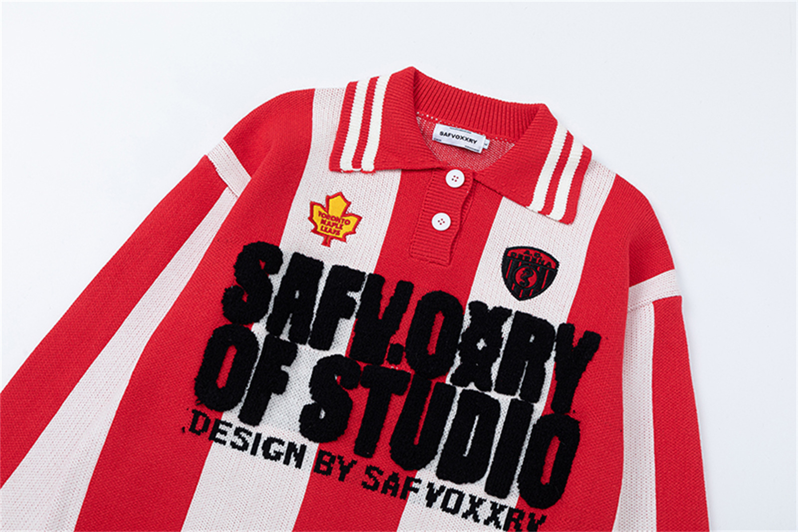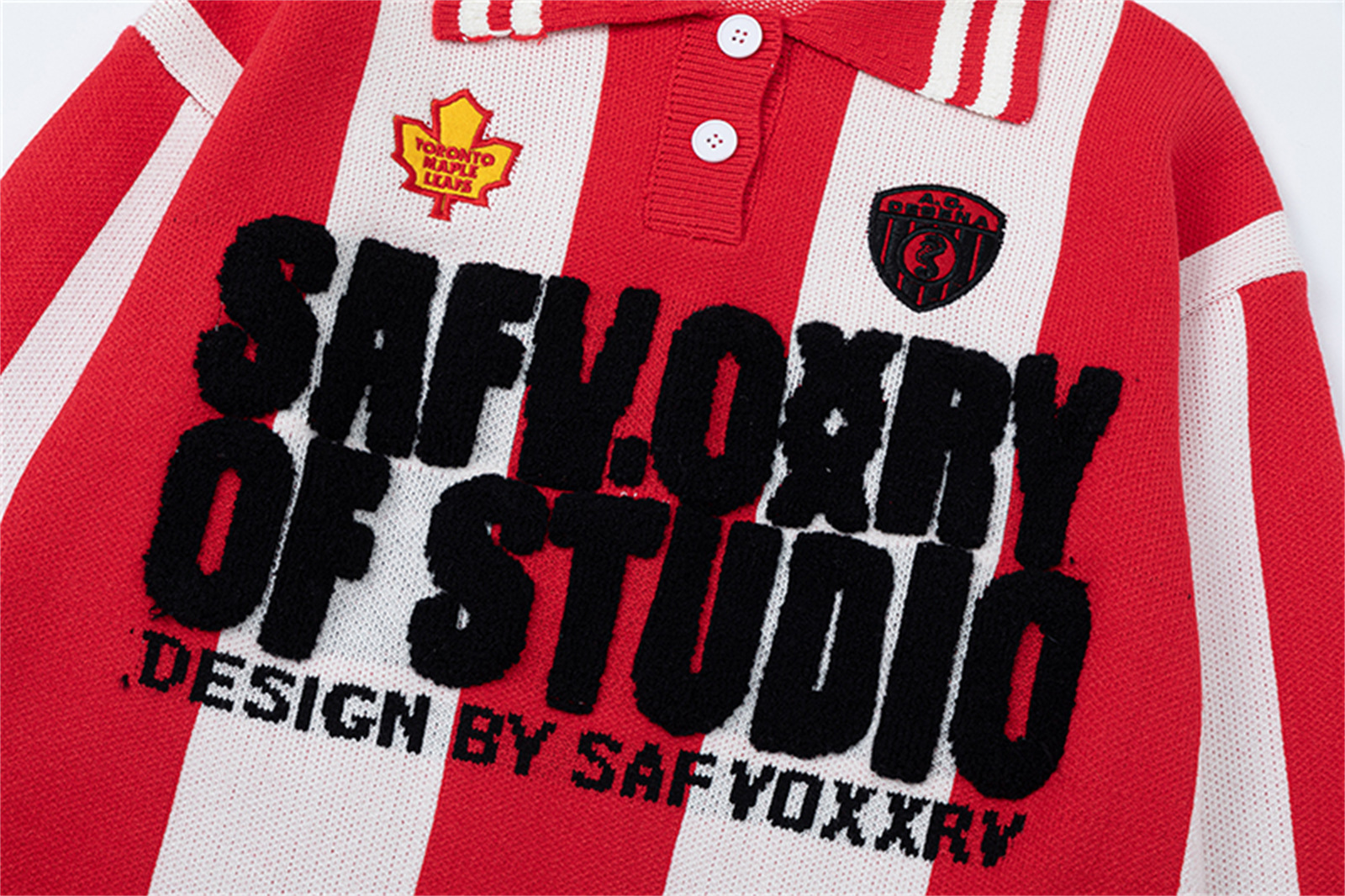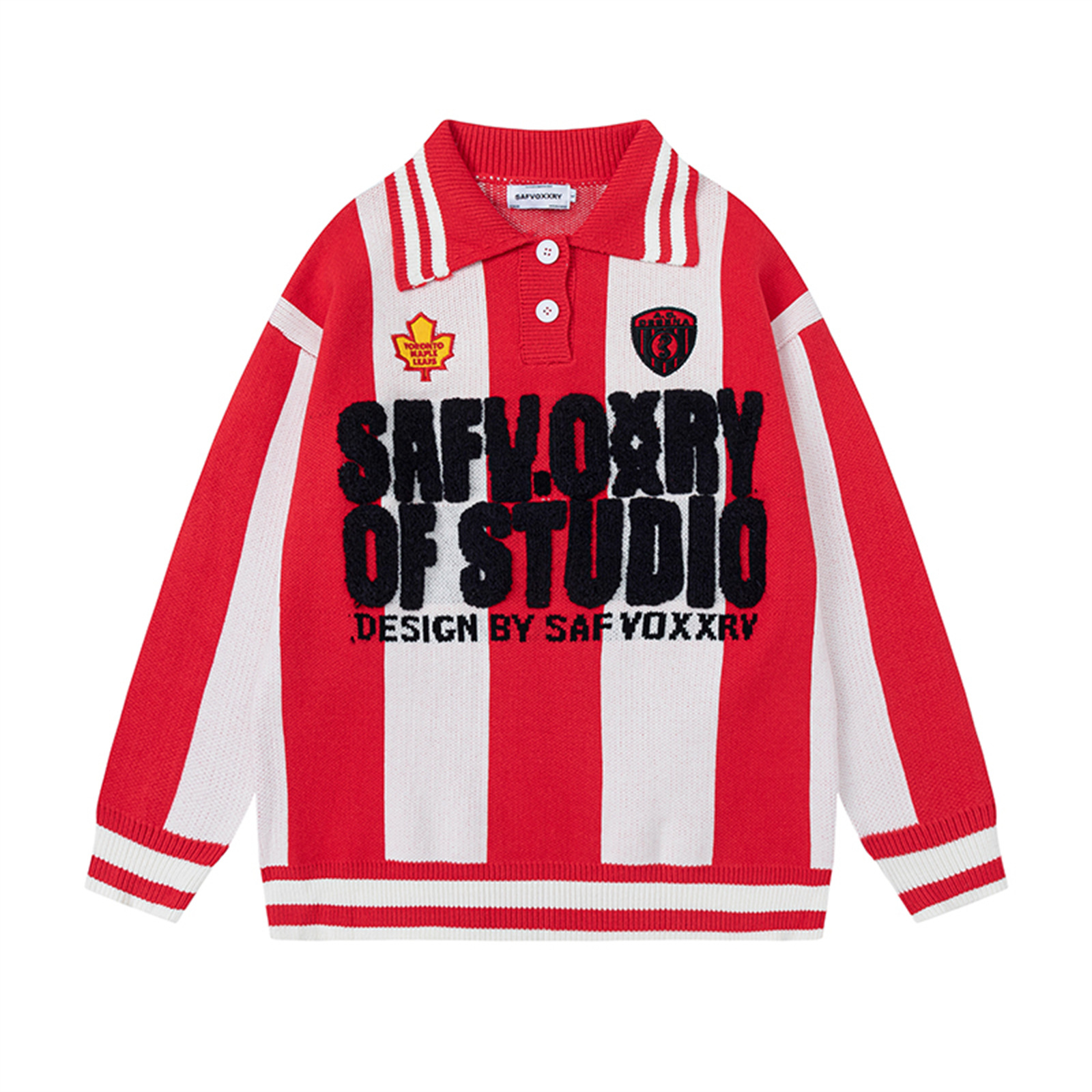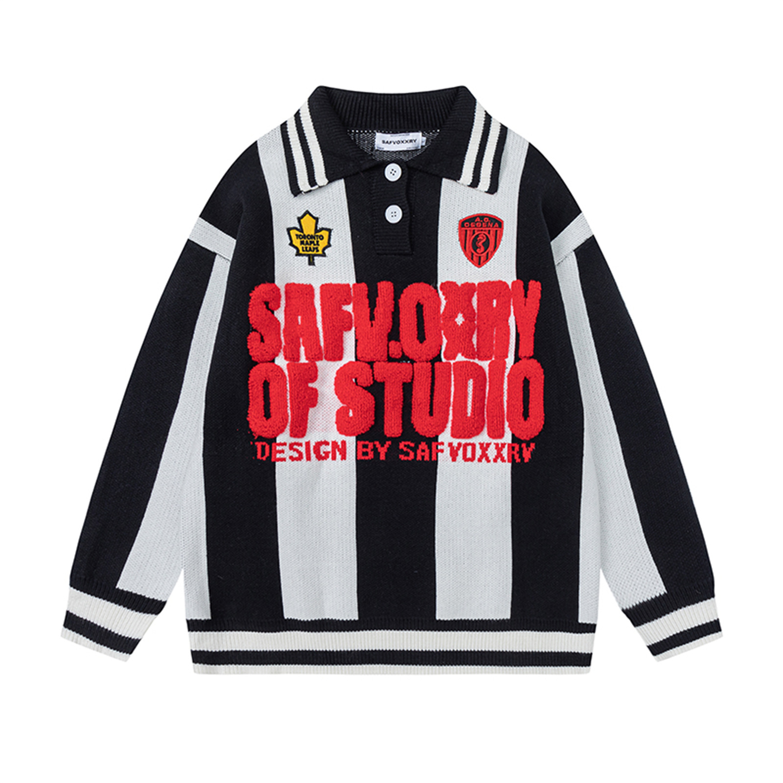 아메리칸 스트리트 콘트라스트 컬러 3 차원 편지 자수 옷깃 스웨터 남자 가을 겨울 뉴 스포츠 저지 스타일 스웨터