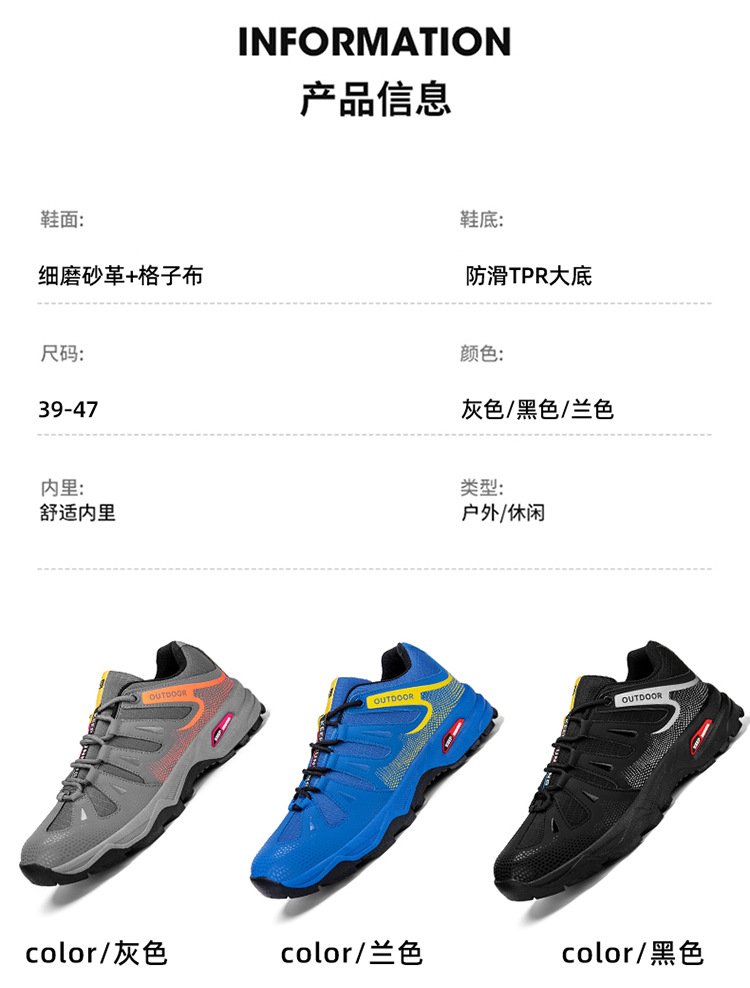 户外登山鞋休闲轻便徒步运动鞋男跑步鞋透气轻便防滑户外鞋防滑耐