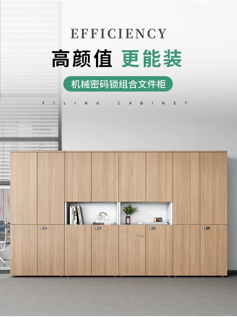 파일 캐비닛, 나무로 만든 심플하고 모던한 파일 캐비닛, 정보 보관 캐비닛, 책 보관, 잠금장치가 있는 유리 사무실 캐비닛