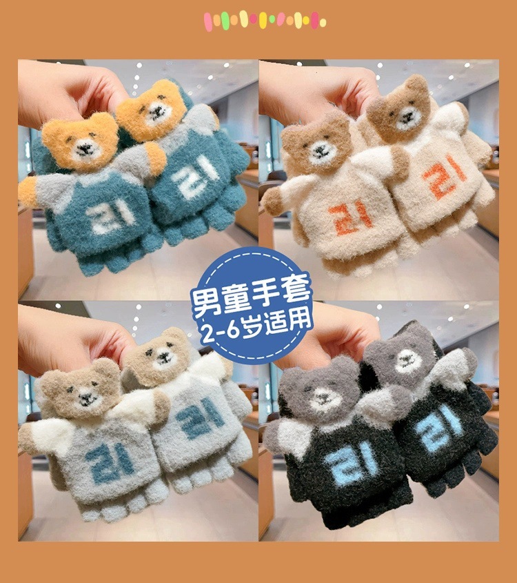 어린이 장갑 소년 겨울 따뜻한 어린이 5 손가락 플립 커버 소년 학생 반 손가락 숙제 큰 아이들스토어 가기