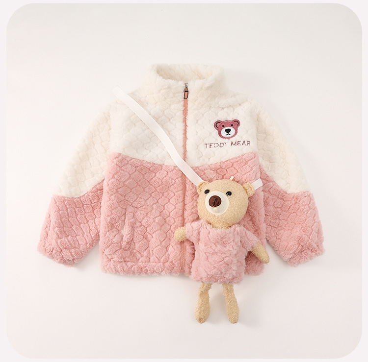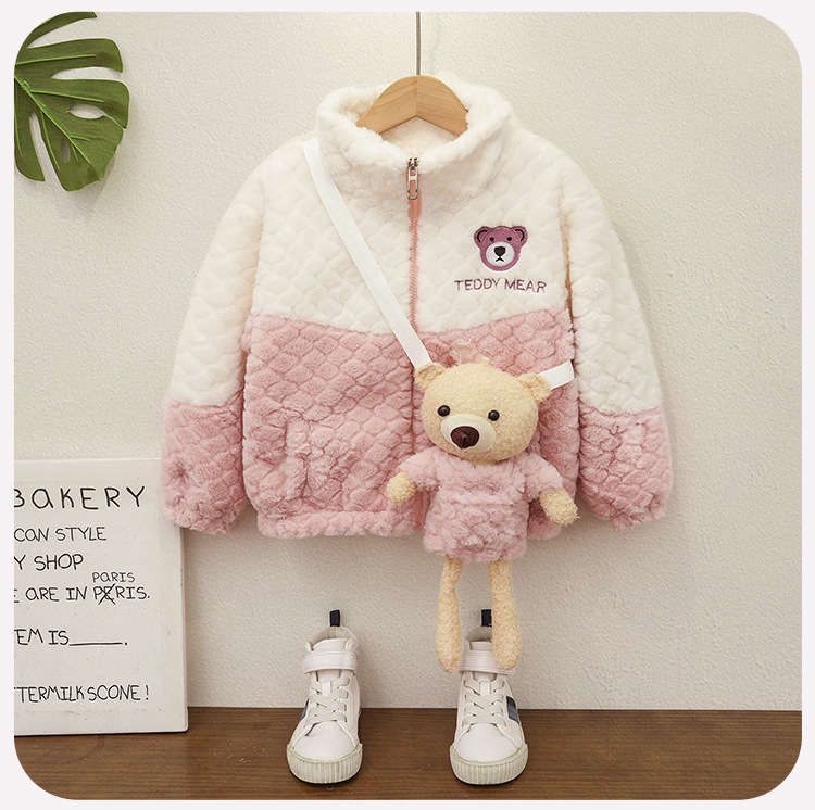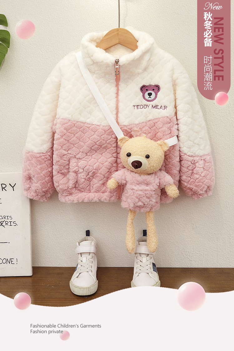 소녀의 가을과 겨울 모직 스웨터 소녀의 서양식 쿨로 미 플러스 벨벳 재킷 아기의 두꺼운 양고기 벨벳 어린이 겨울복