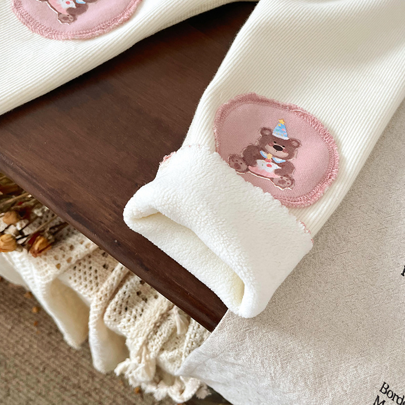 女童童套装2025秋冬新款加绒卡通卫衣女宝宝条纹打底裤童套装批发