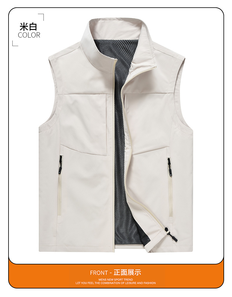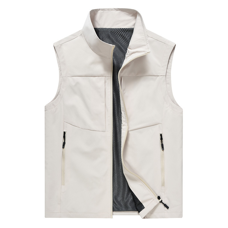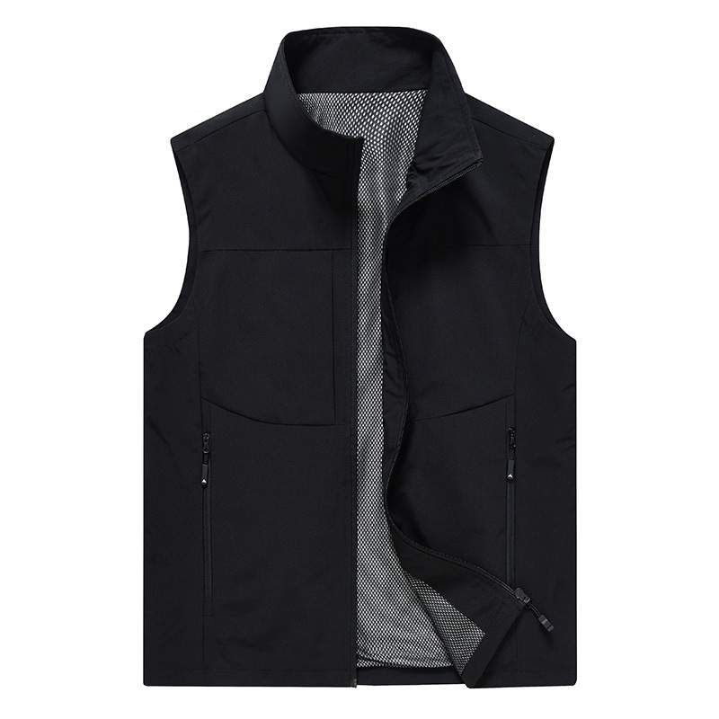 봄과 가을 남성 조끼 캐주얼 빠른 건조 수직 칼라 조끼 중년 및 노인 야외 멀티 포켓 조끼 남성용 어깨 조끼