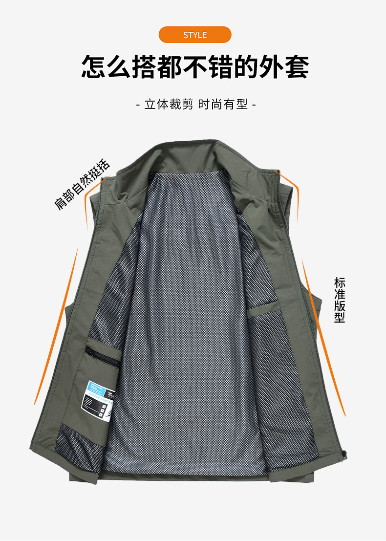 봄과 가을 남성 조끼 캐주얼 빠른 건조 수직 칼라 조끼 중년 및 노인 야외 멀티 포켓 조끼 남성용 어깨 조끼스토어 가기