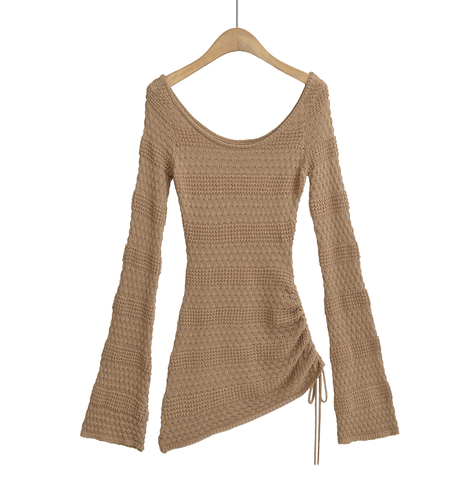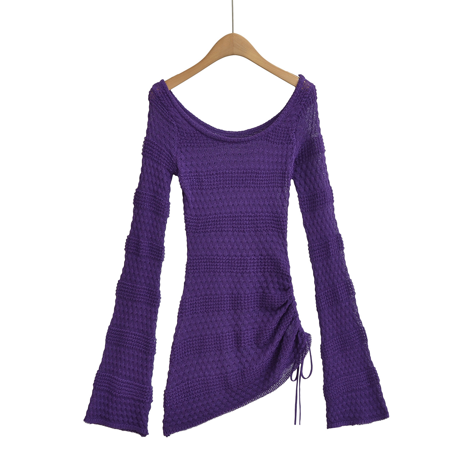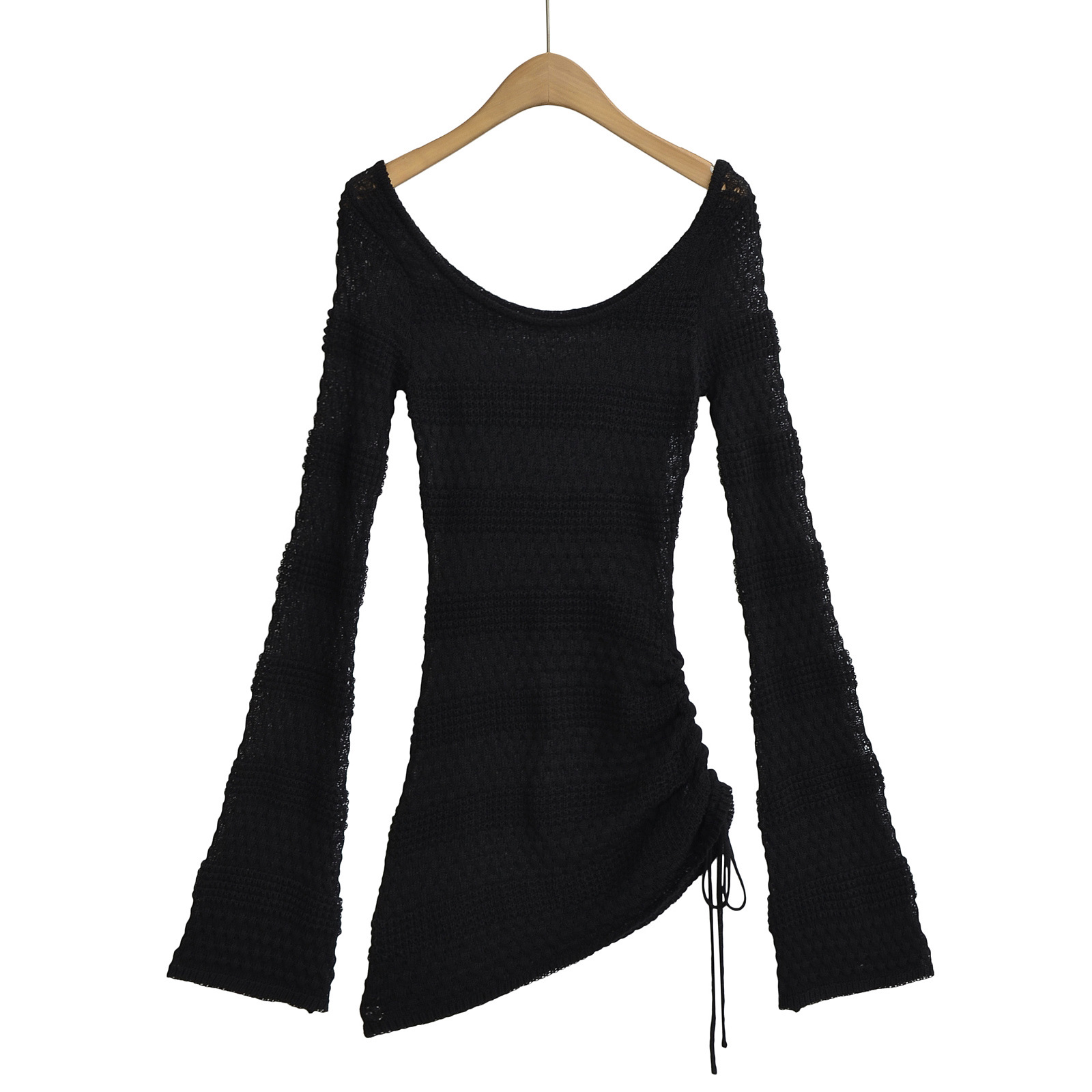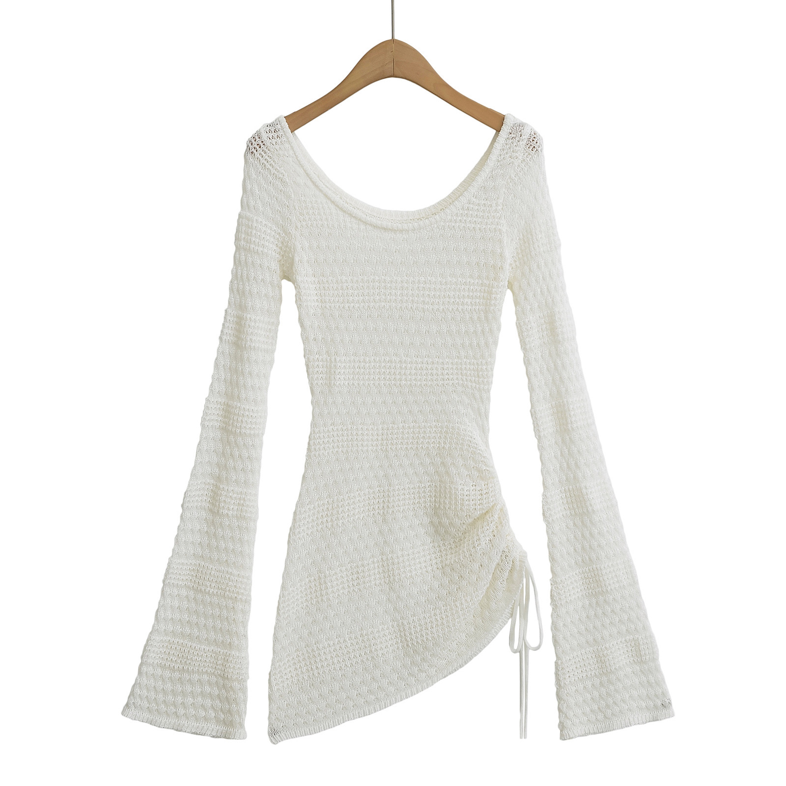 SY2016-24 가을 새로운 미국 스타일 스파이스 소녀 화이트 혼 슬리브 할로우 블라우스 여성용 게으른 허리 스웨터
