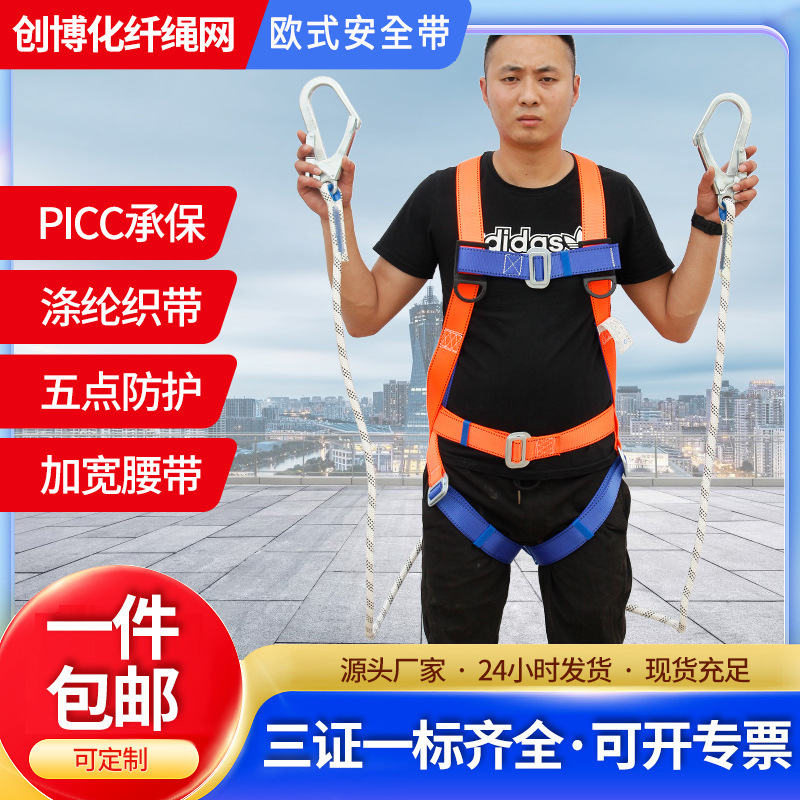 유럽식 안전 벨트 고고도 작업 후크 서스펜션 안전 벨트 이중 안전 5 점 버퍼 벨트