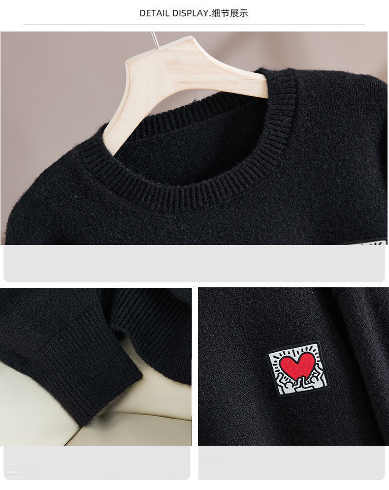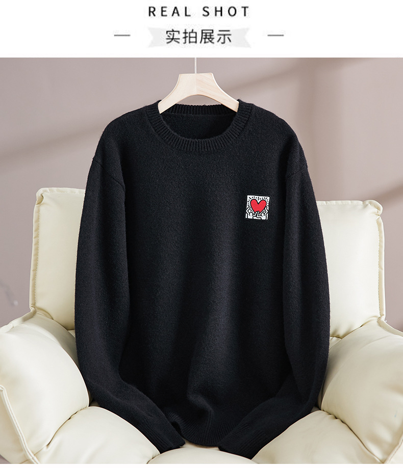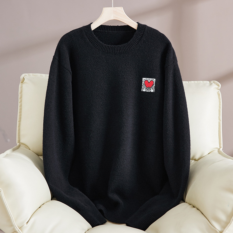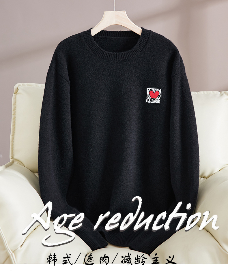 크루 넥 스웨터 남자 겨울 2024 새로운 두꺼운 니트 스웨터 느슨한 플러스 사이즈 베이스 셔츠 유행 따뜻한 스웨터스토어 가기