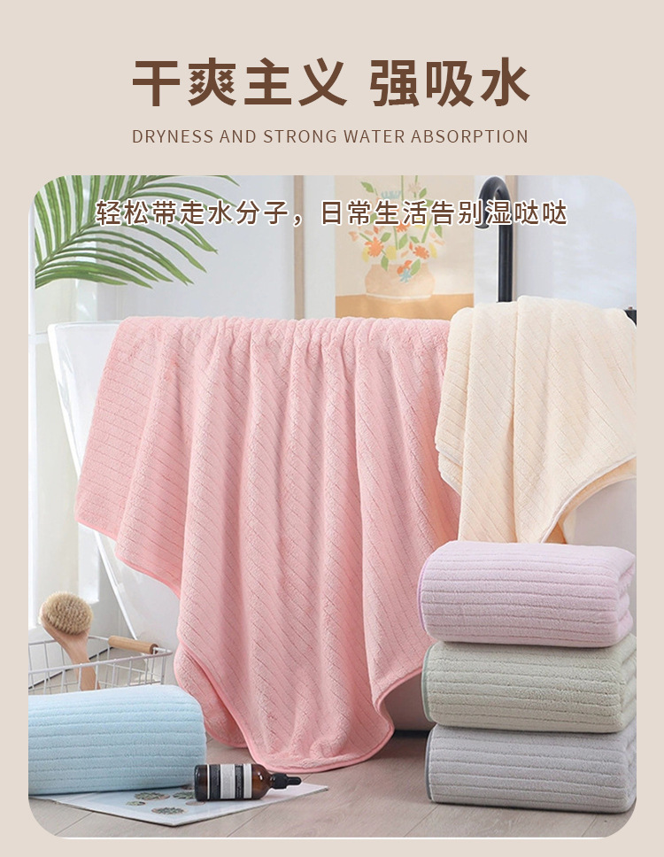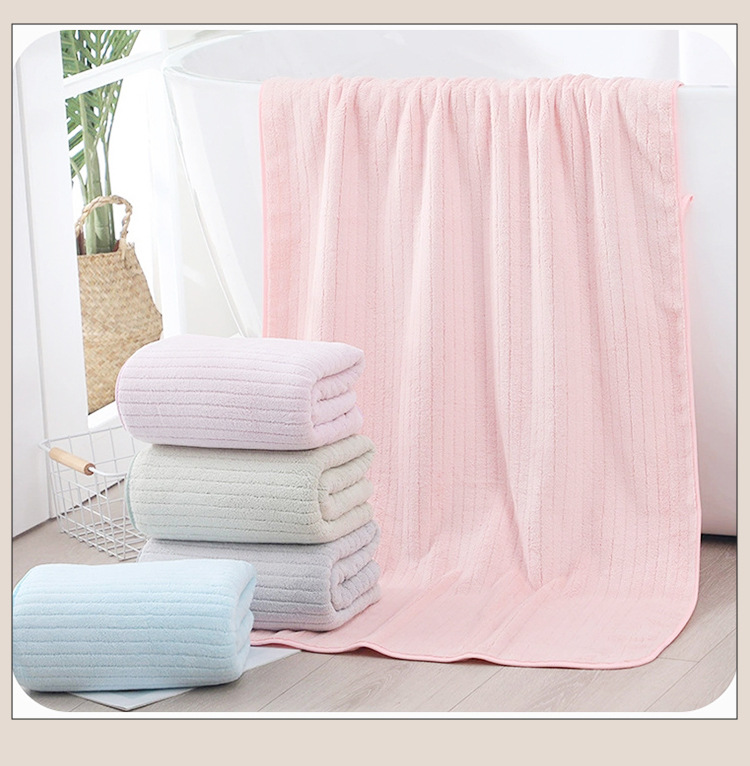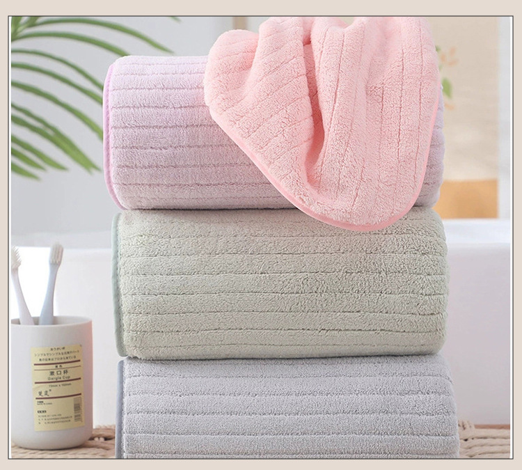 줄무늬 초대형 두꺼운 산호 양털 목욕 타월 가정용 성인 목욕 타월 흡수성 빠른 건조 수영 비치 타월