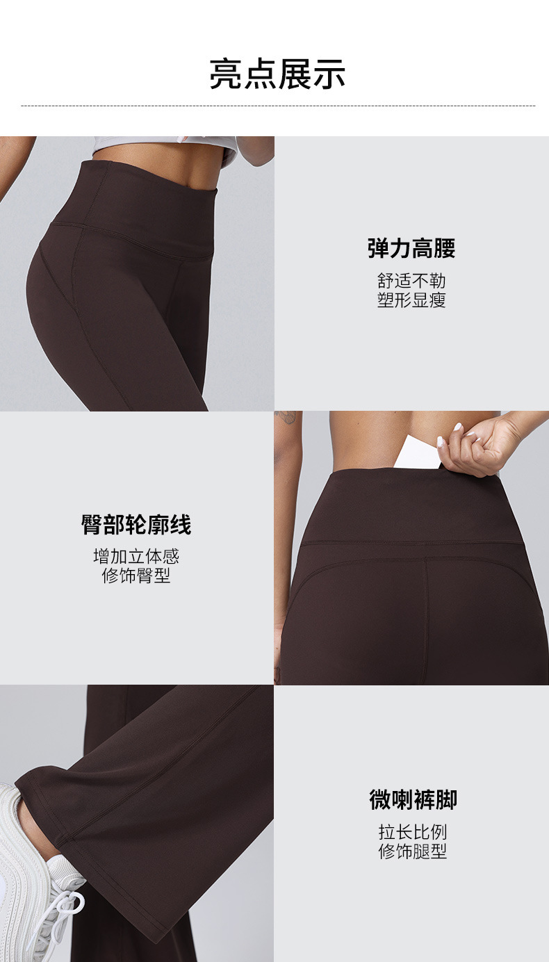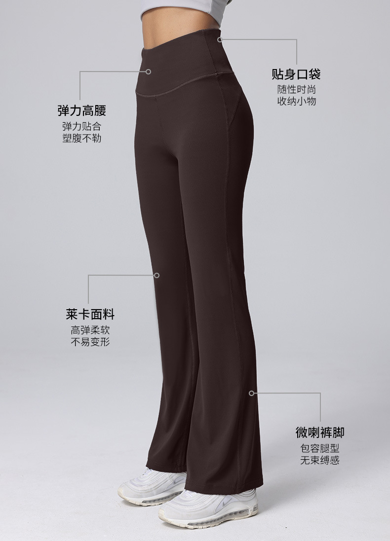 라이크라 누드 느낌 스포츠 플레어 팬츠 여성용 하이웨이스트 힙업 탄력 피트니스 와이드 팬츠 아우터웨어 캐주얼 요가 팬츠 마이크로 플레어