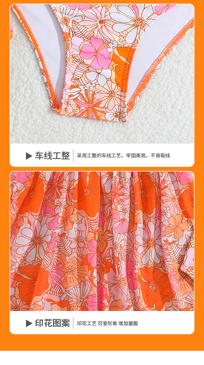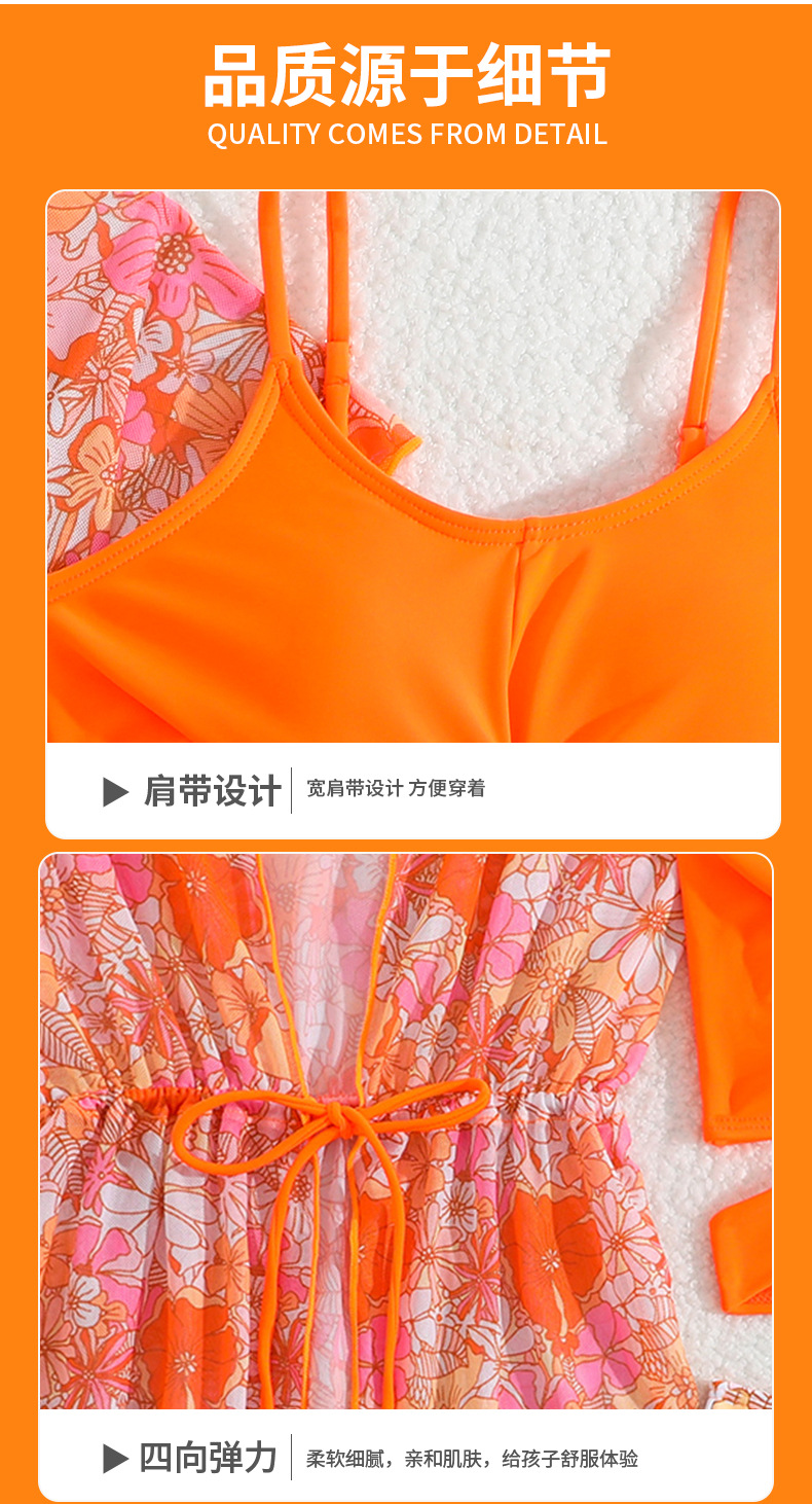 2025 새로운 어린이 수영복 3 피스 오렌지 프린트 소녀 스플릿 수영복 크로스 보드 슈트 수영복스토어 가기