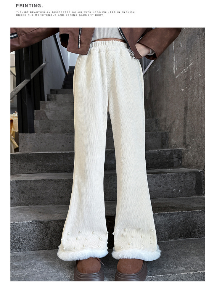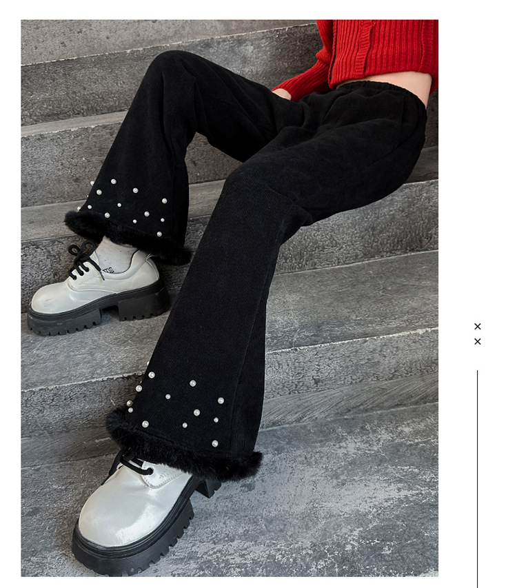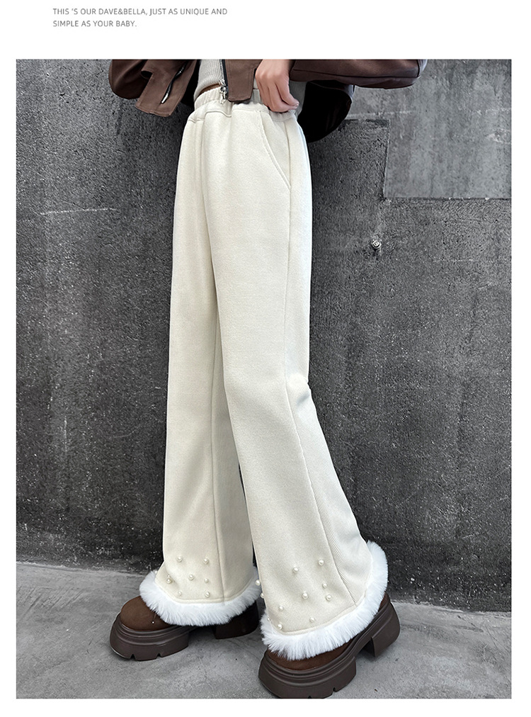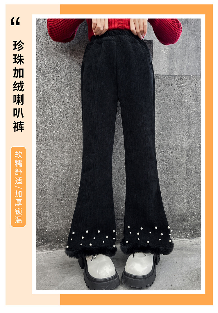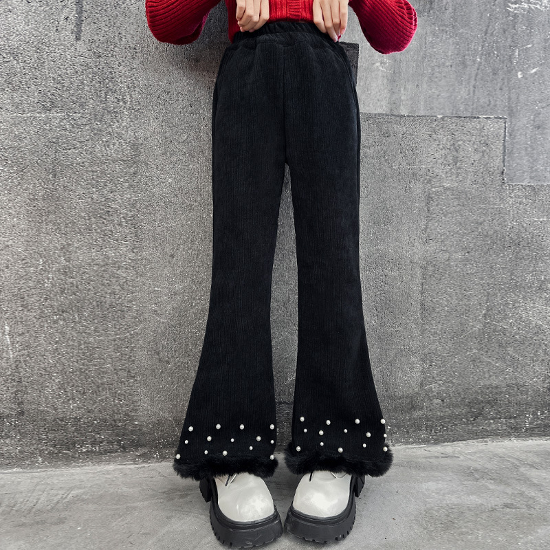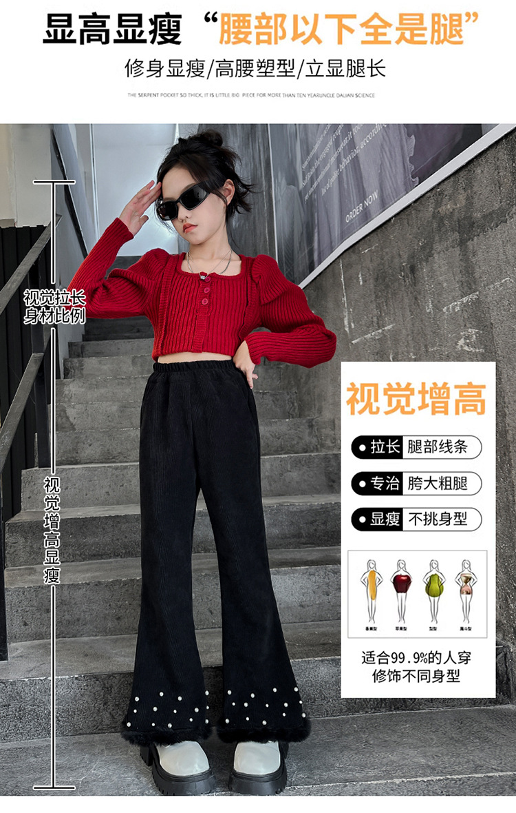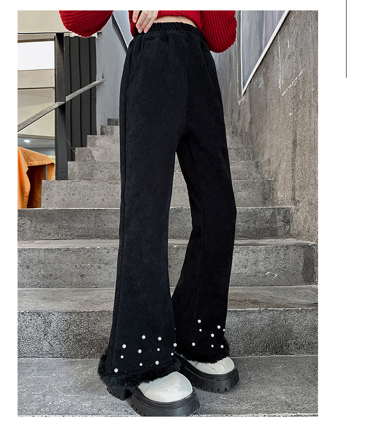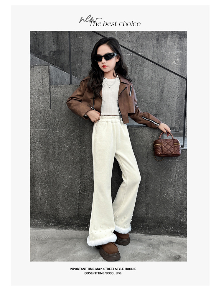 패션 캐주얼 와이드 레그 팬츠 소녀 2024 가을/겨울 새로운 서양식 중 큰 어린이 기모 두껍게 느슨한 외주 바지스토어 가기