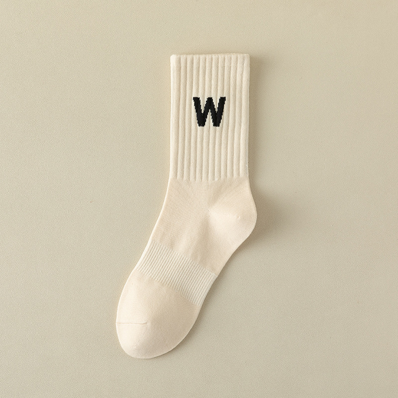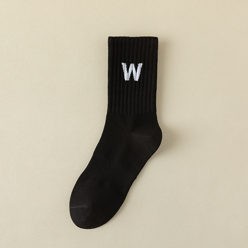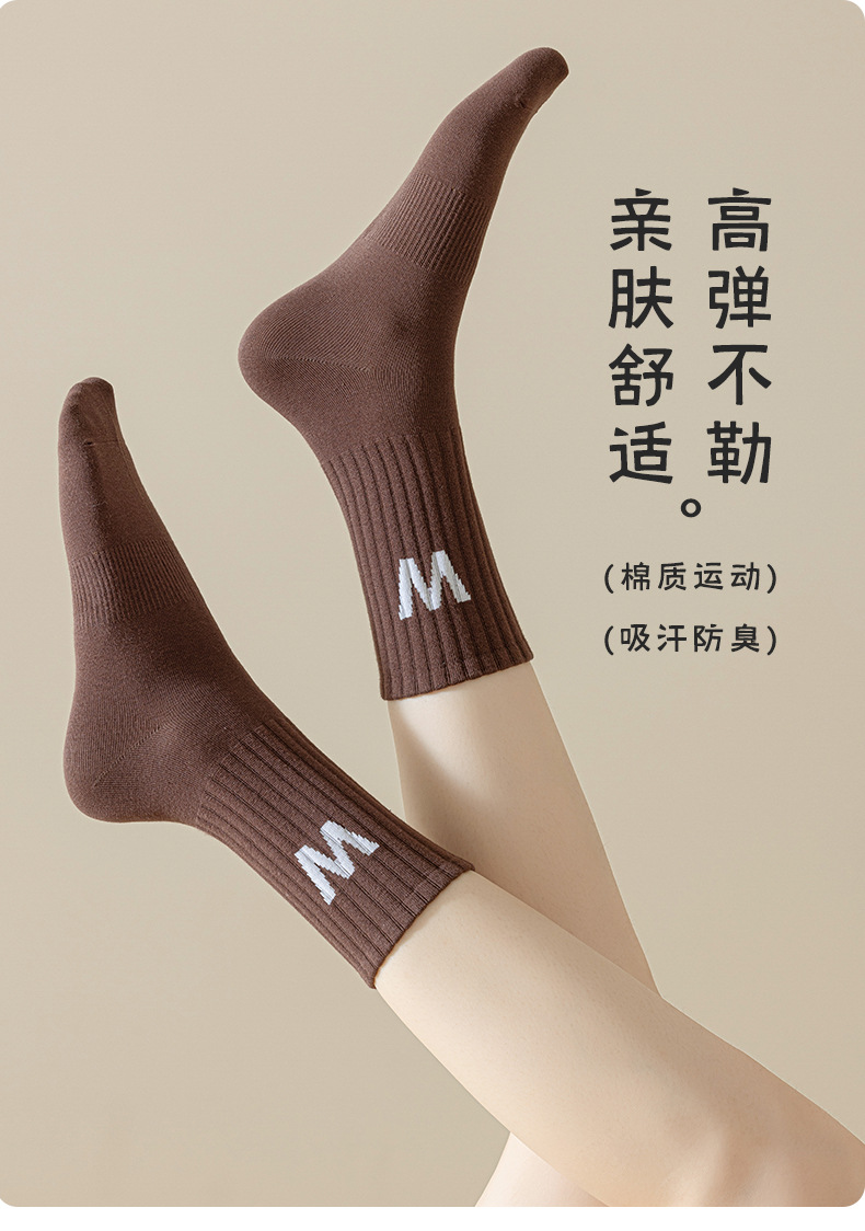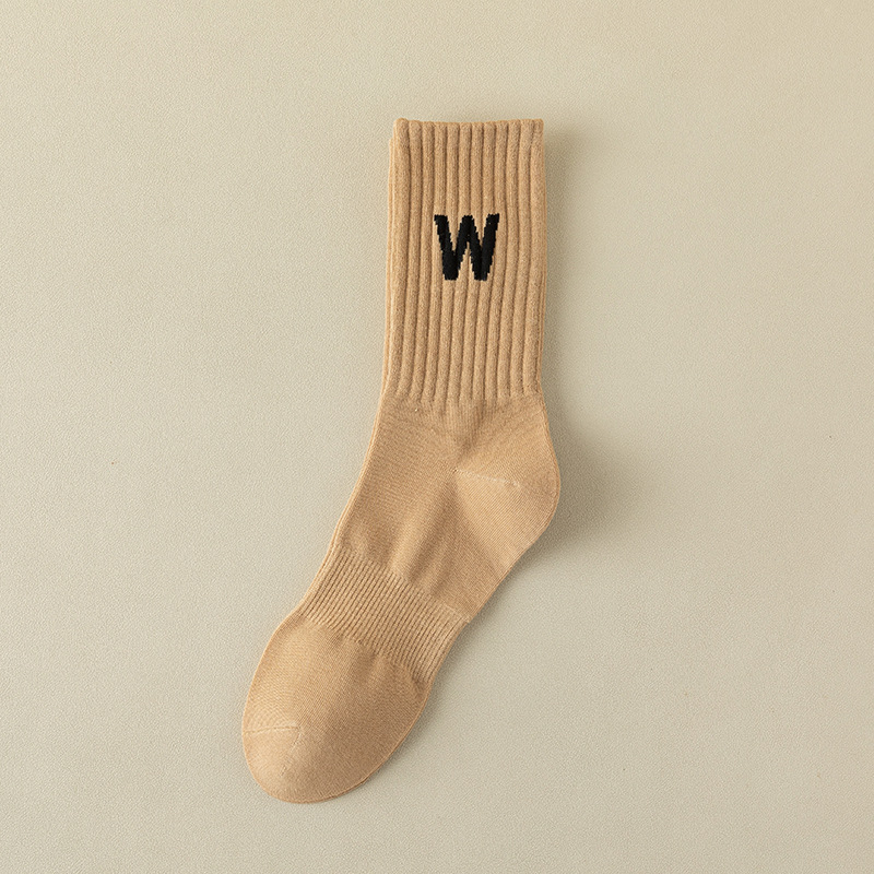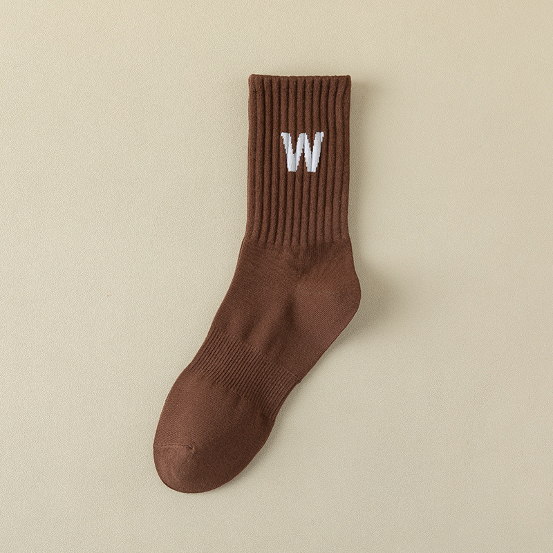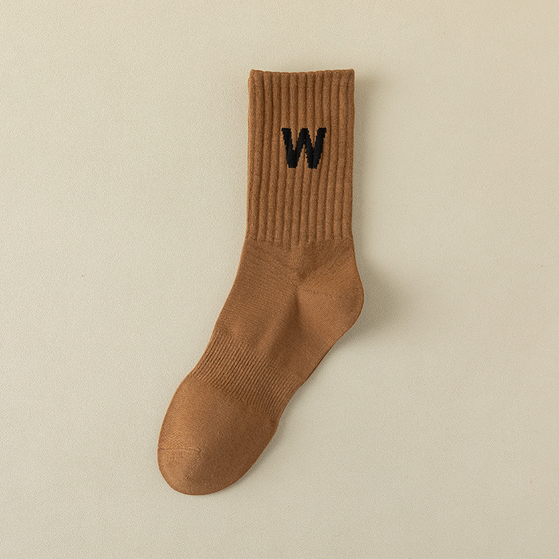 여성 양말 봄과 가을 중간 튜브 양말 한국 인 조수 편지 긴 튜브 스포츠 양말 다크 브라운 상어 바지 면화 양말 도매
