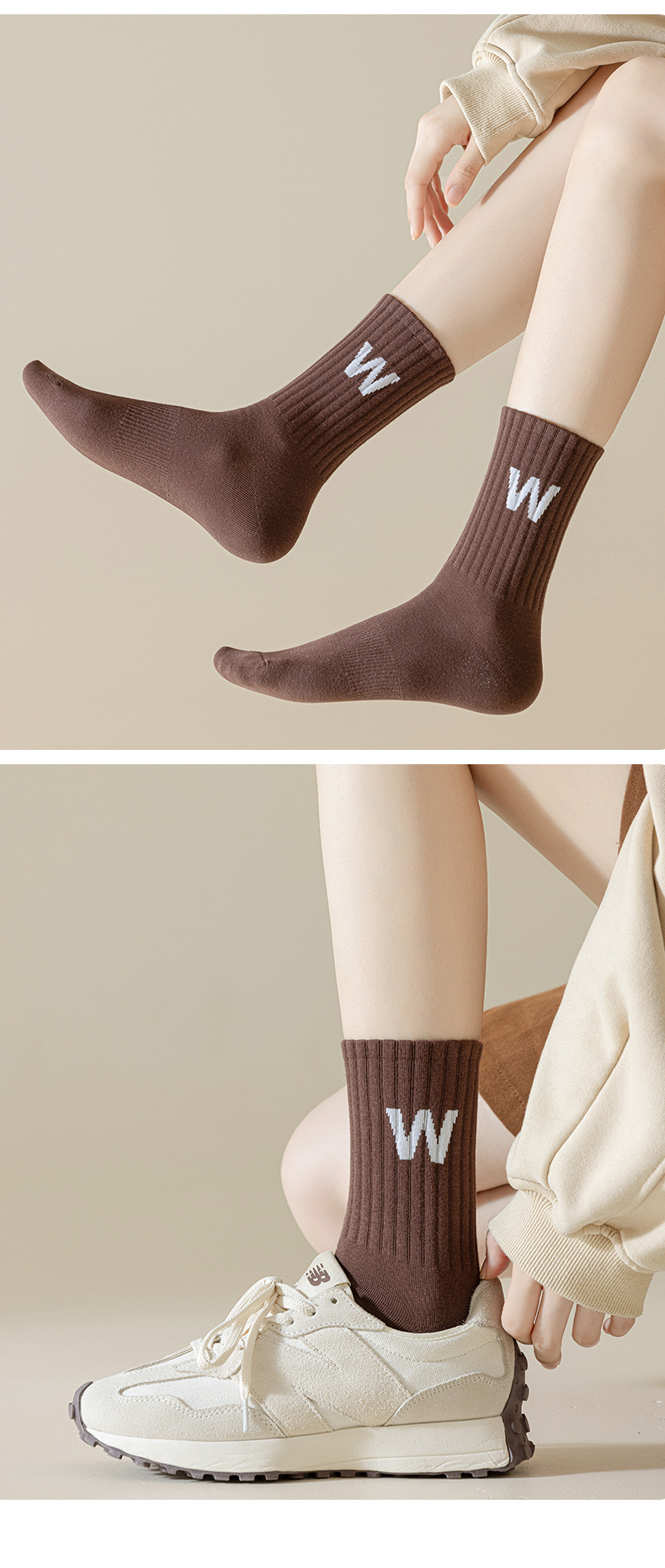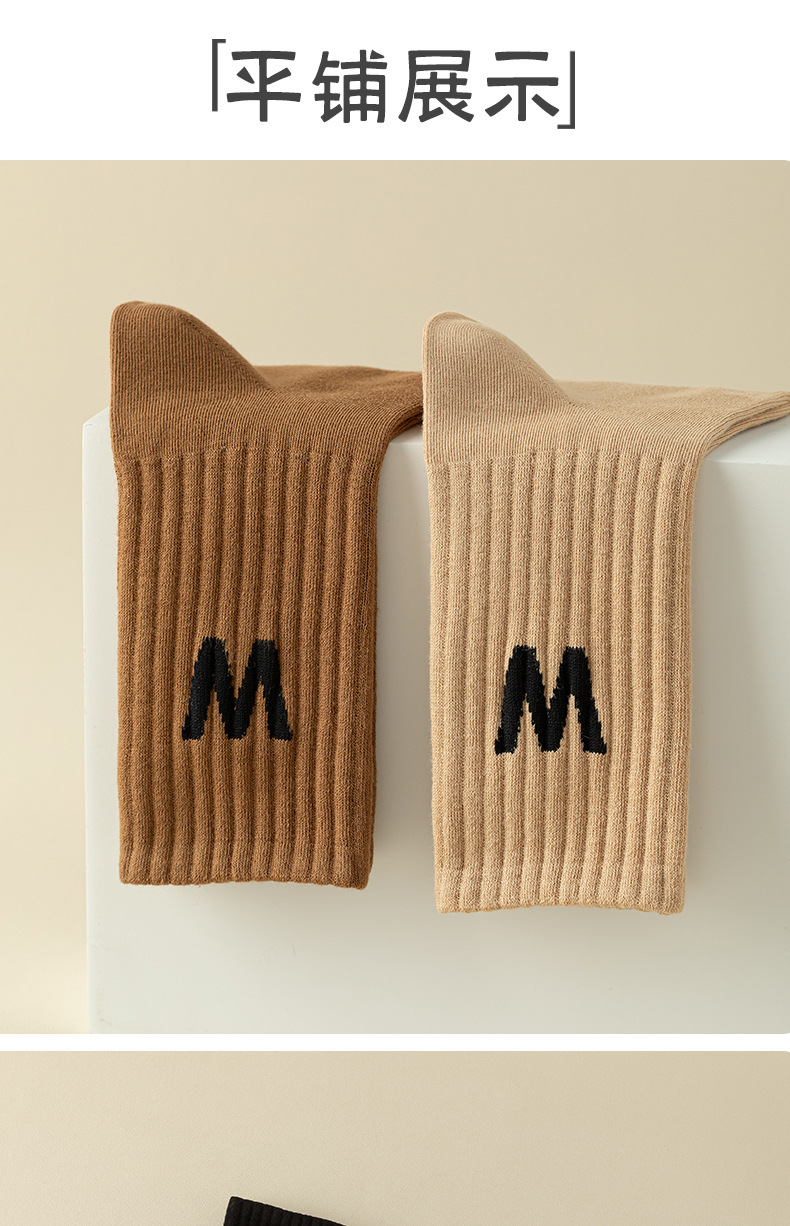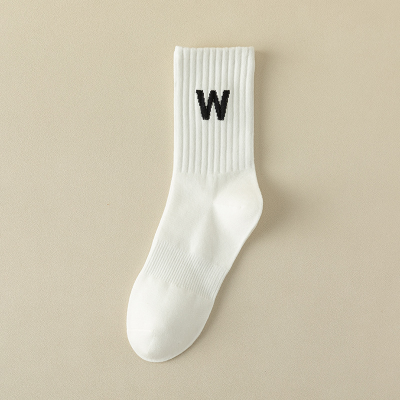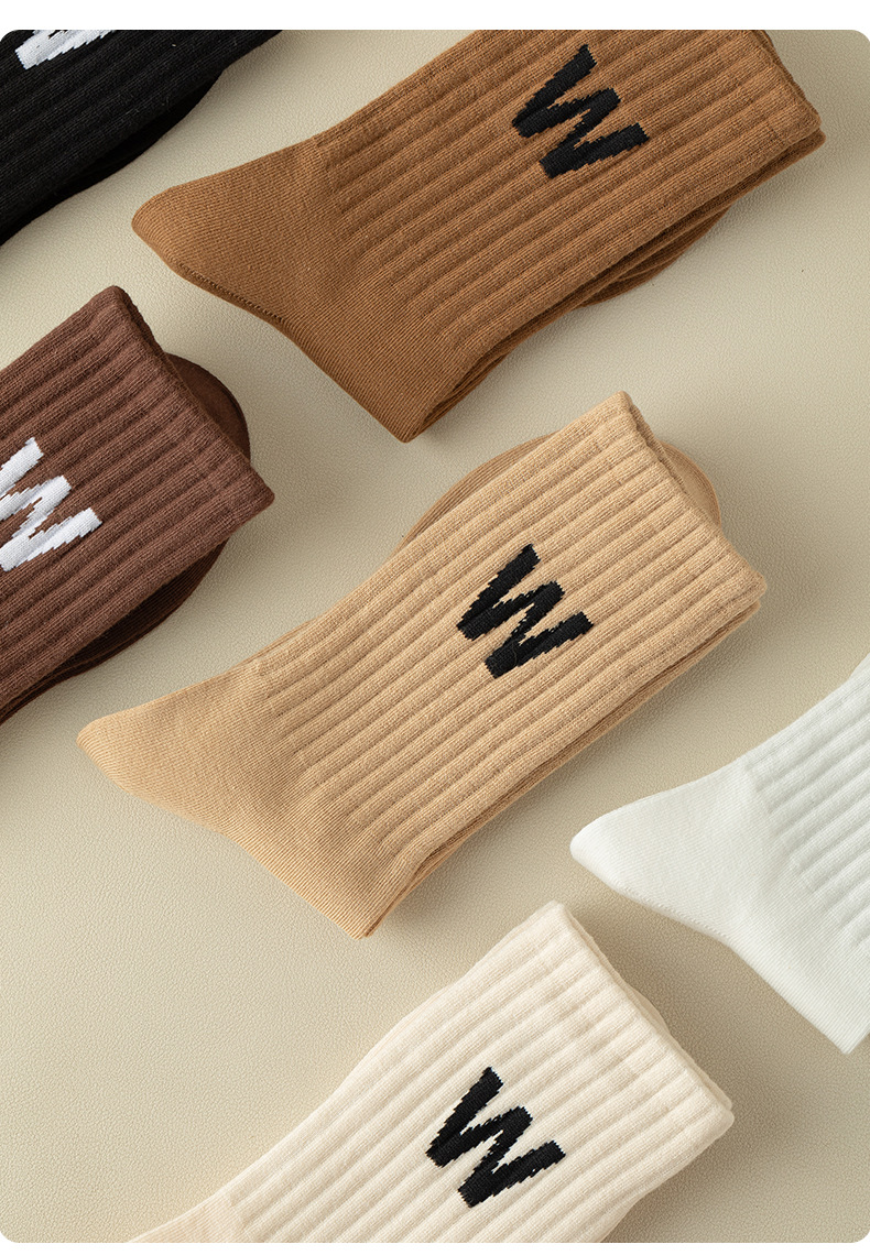 여성 양말 봄과 가을 중간 튜브 양말 한국 인 조수 편지 긴 튜브 스포츠 양말 다크 브라운 상어 바지 면화 양말 도매