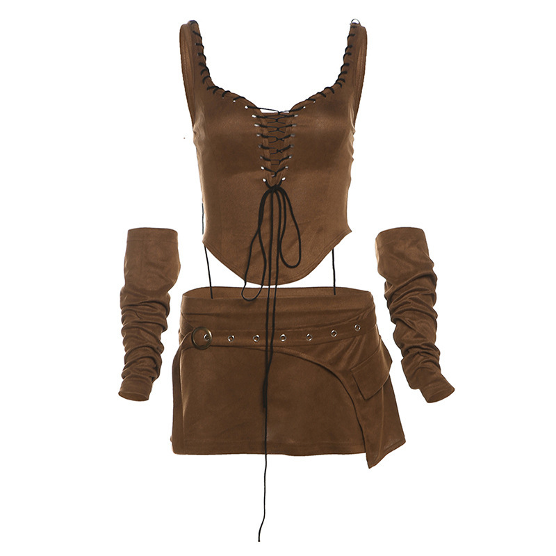 2024 국경 유럽 및 미국 스타일 WISH 가을 새로운 여성의 섹시한 스트랩 백리스 조끼 높은 허리 엉덩이 스커트스토어 가기