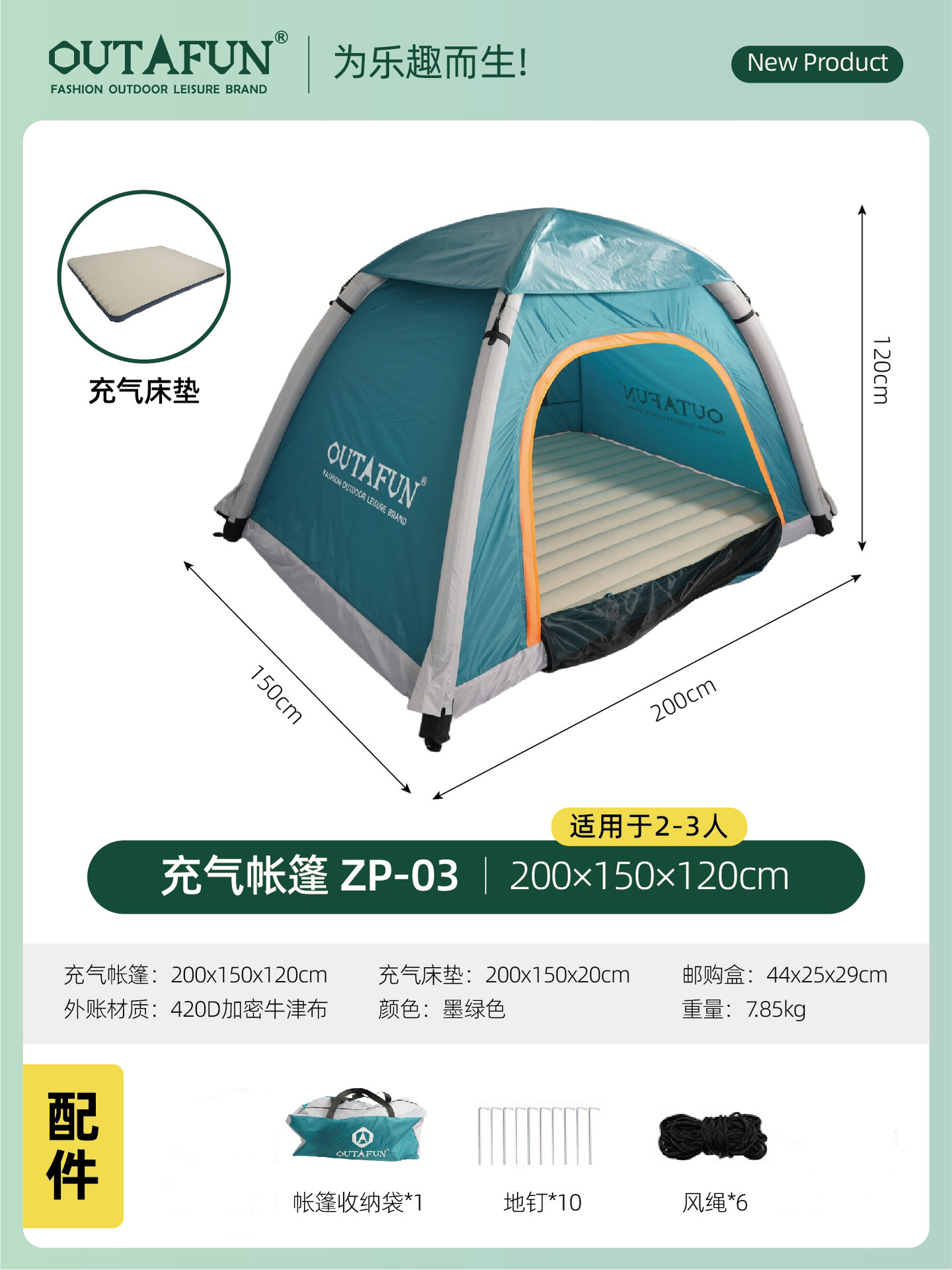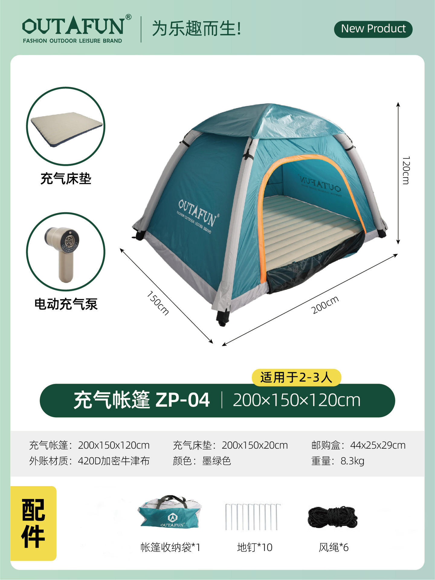 • 진한 녹색(공기 펌프/에어 매트리스 포함)
