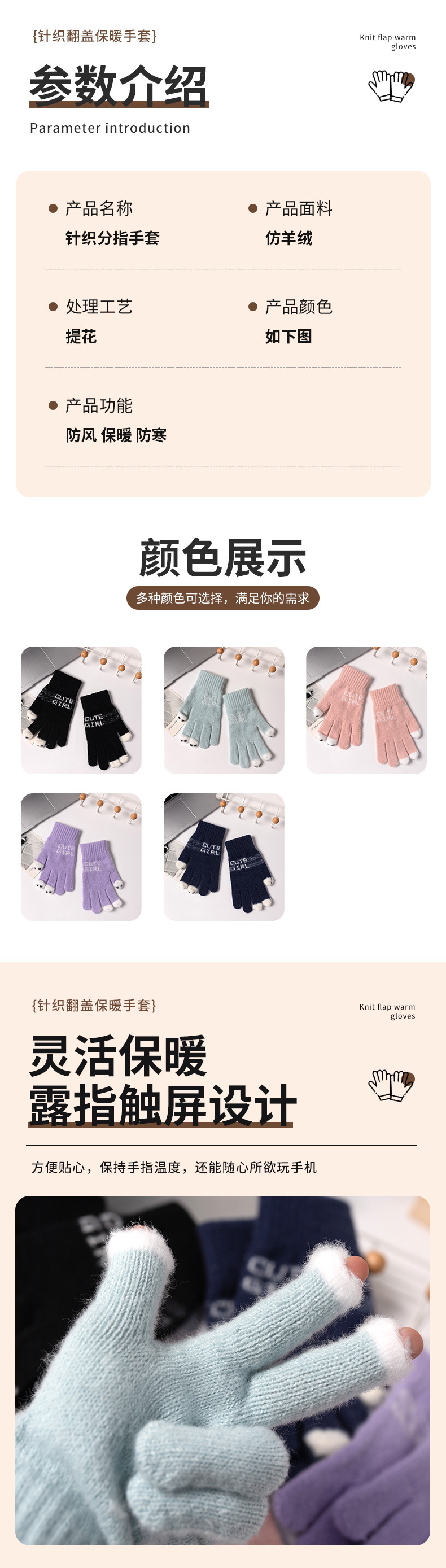 새로운 가을 겨울 여성용 플러시 따뜻한 손가락 없는 장갑, 방한 터치스크린 귀여운 한국 스타일 숙제용 장갑스토어 가기