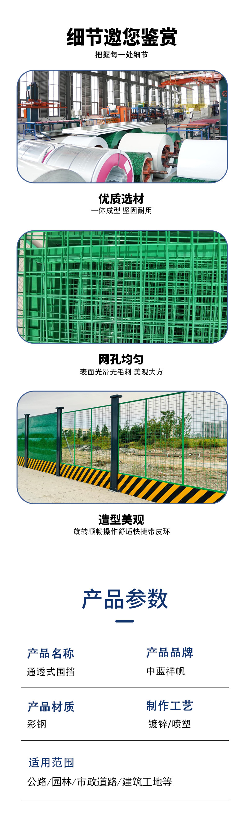 투명 울타리 건설 현장 간단한 철판 울타리 엔지니어링 건설 공사 가드 레일 안전 투명 격리 울타리 컬러 강철스토어 가기