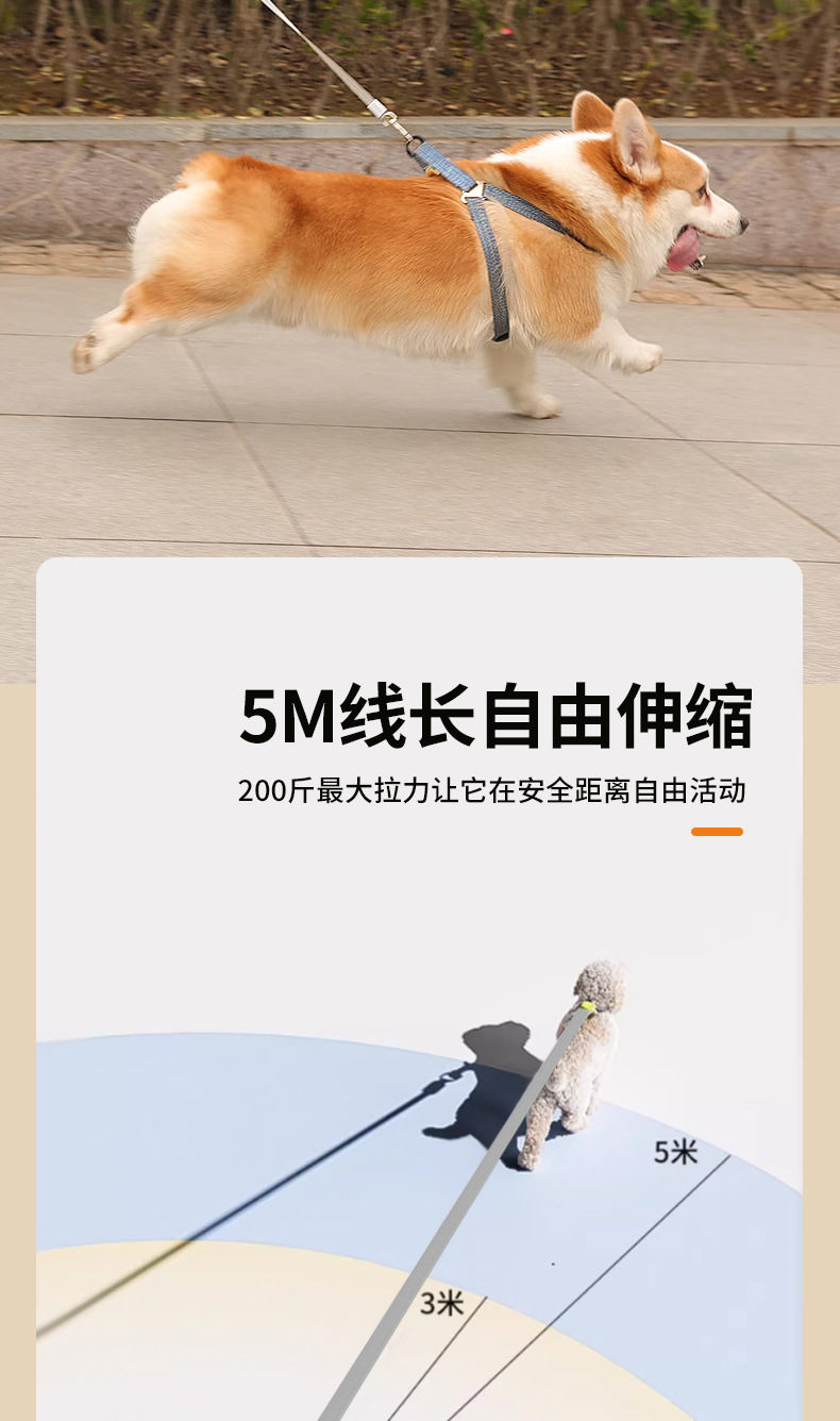 애완 동물 견인 로프 망원경 제어 가능한 안전 개 보행 로프 국경 간 재고 도매 반사 로프 개 5m 견인기스토어 가기
