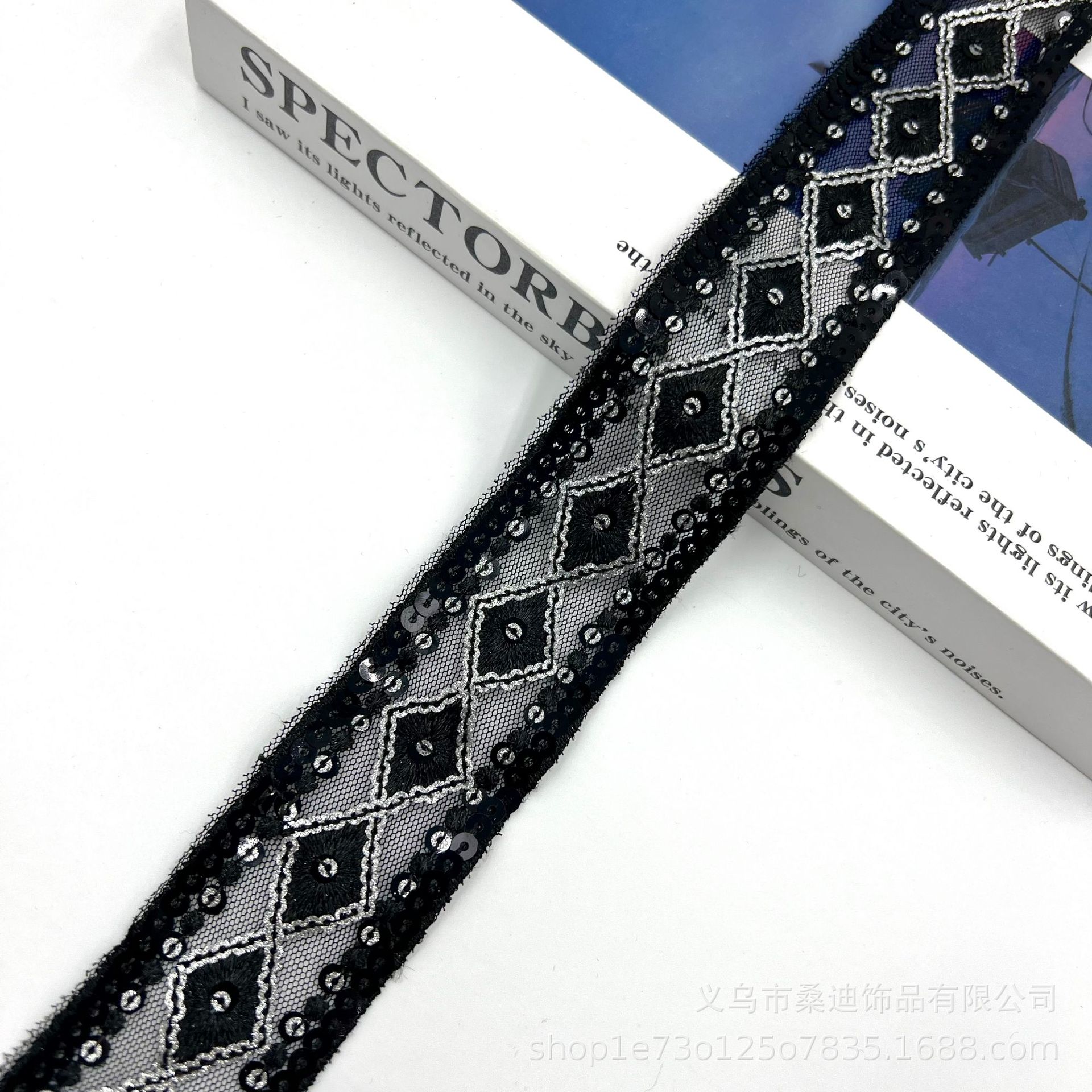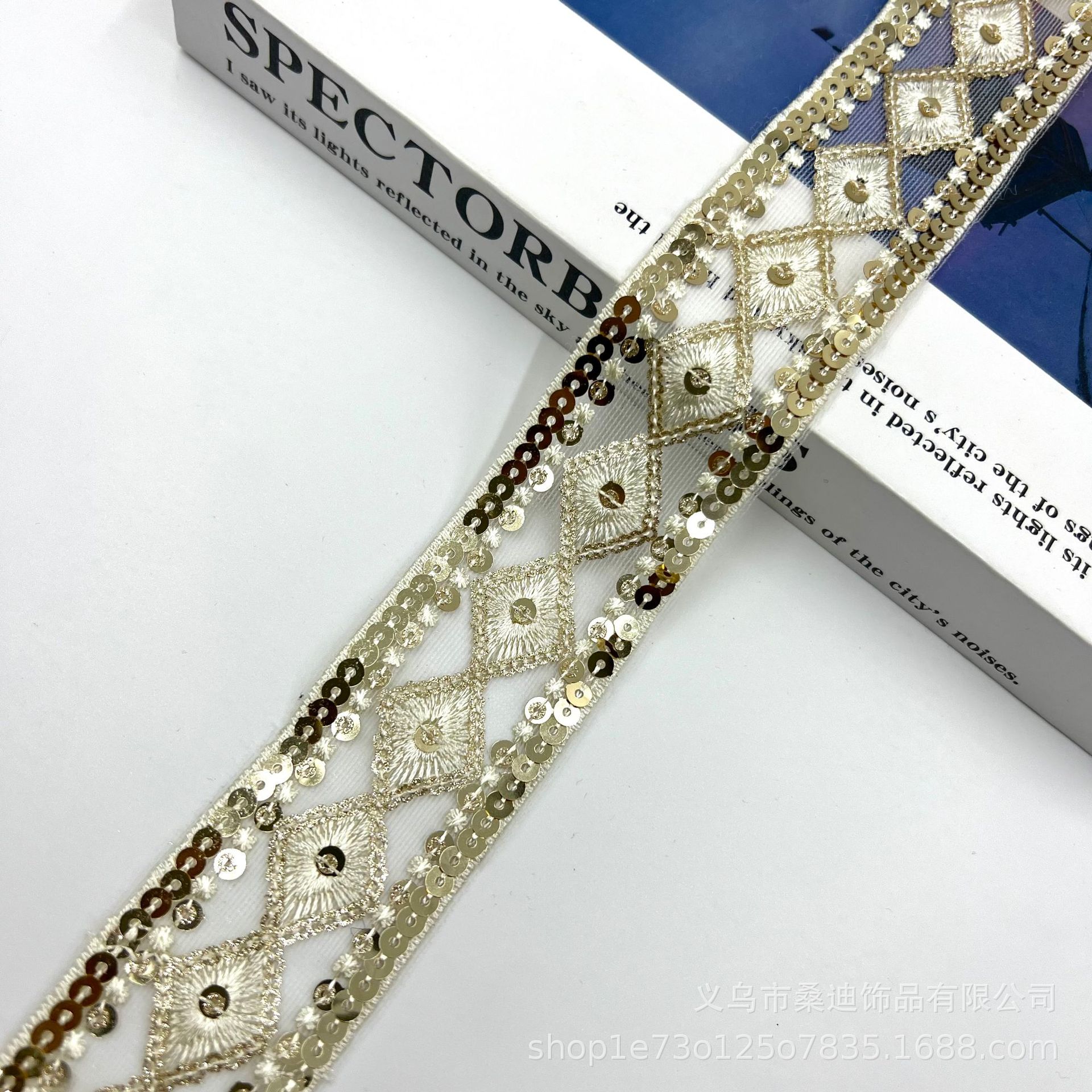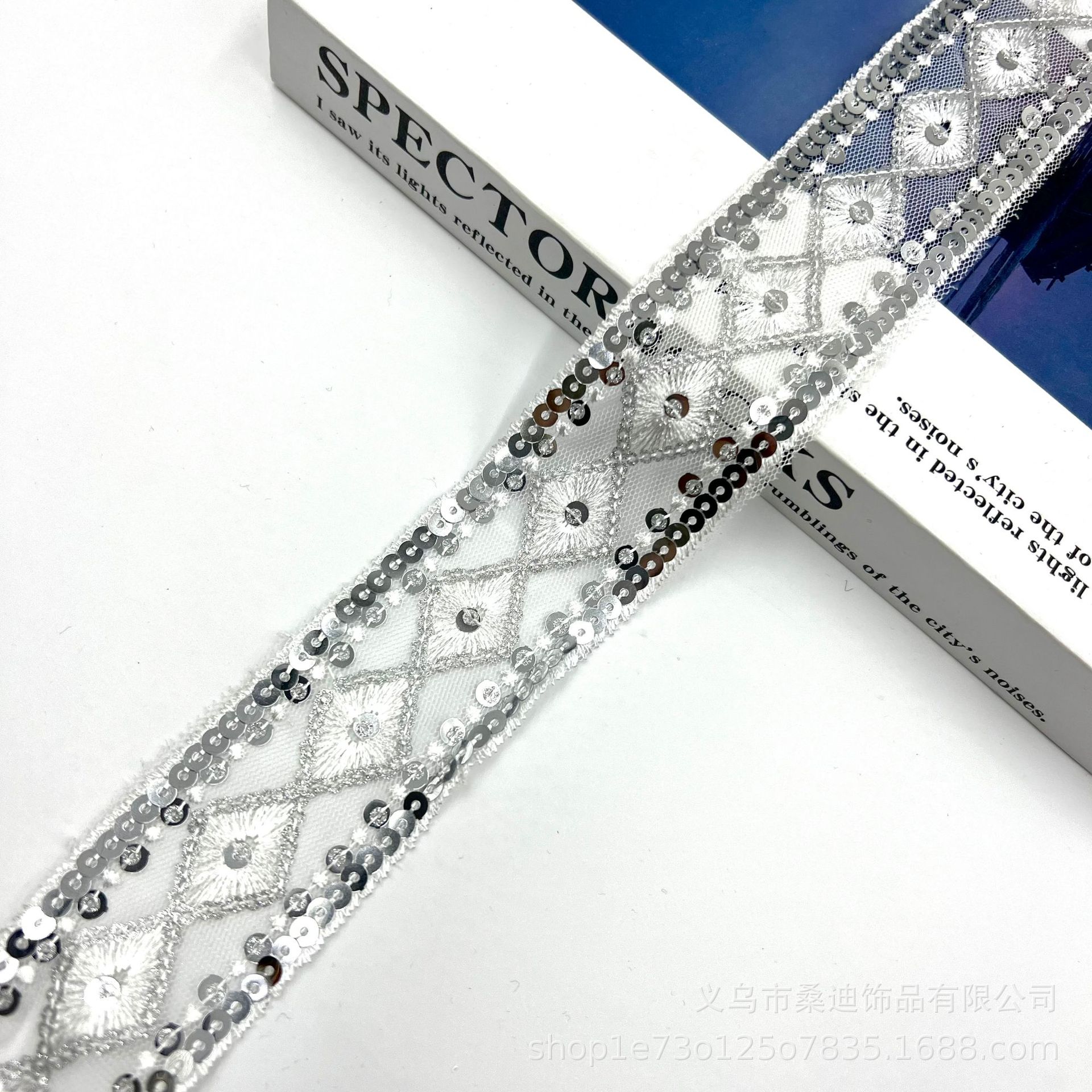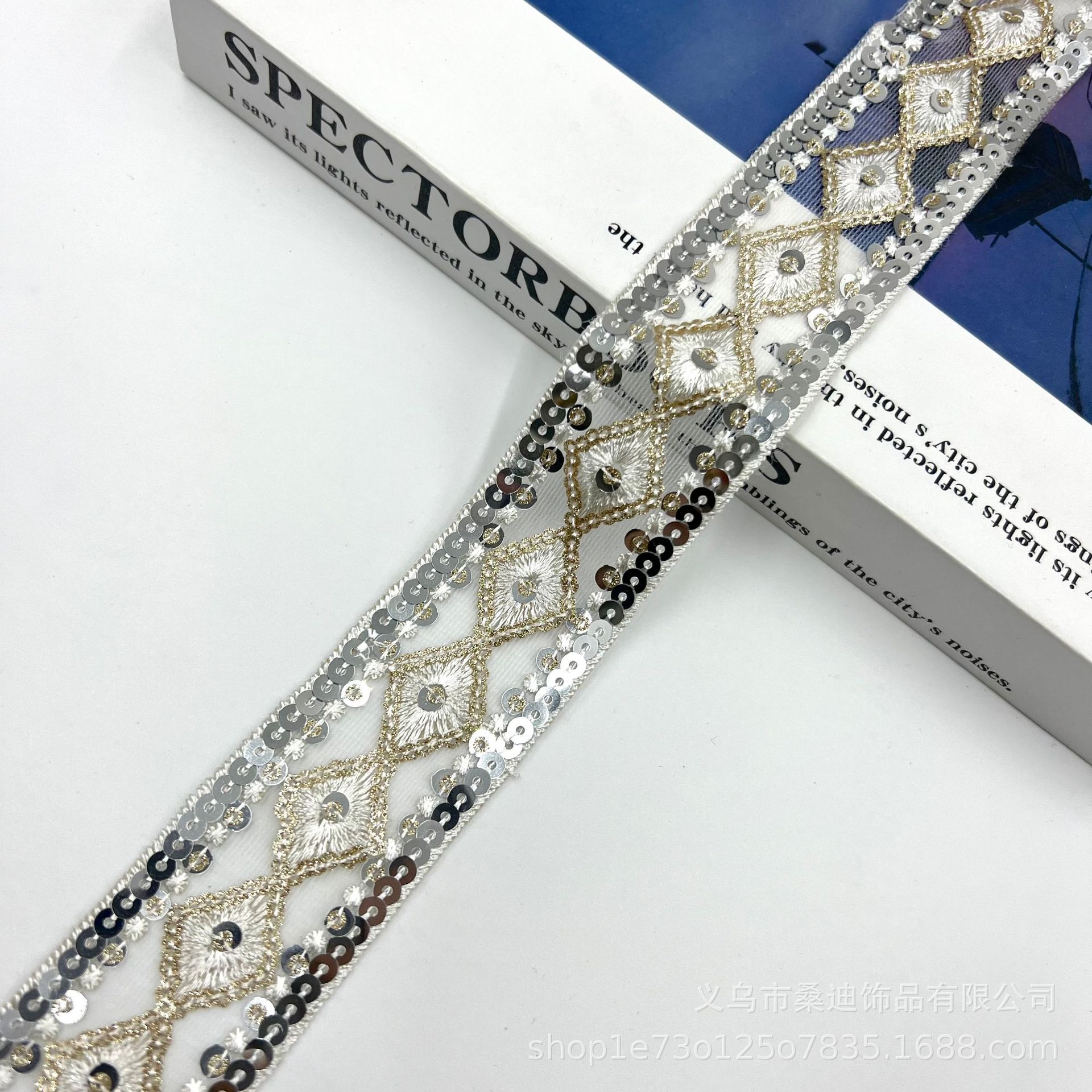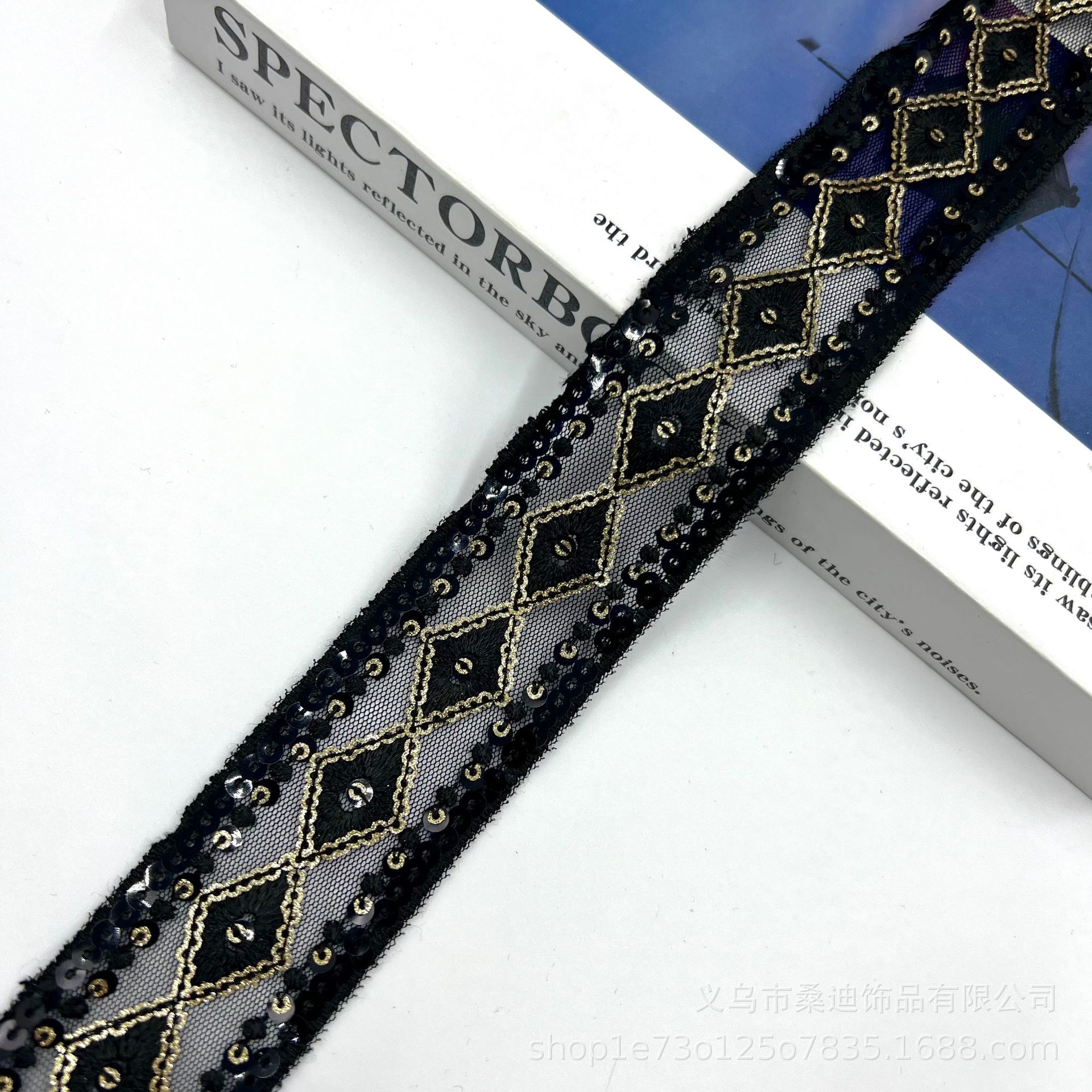 새로운 수용성 스팽글 멀티 컬러 레이스 바코드 4CM 와이드 비드 자수 리본 DIY 장식 액세서리 도매스토어 가기