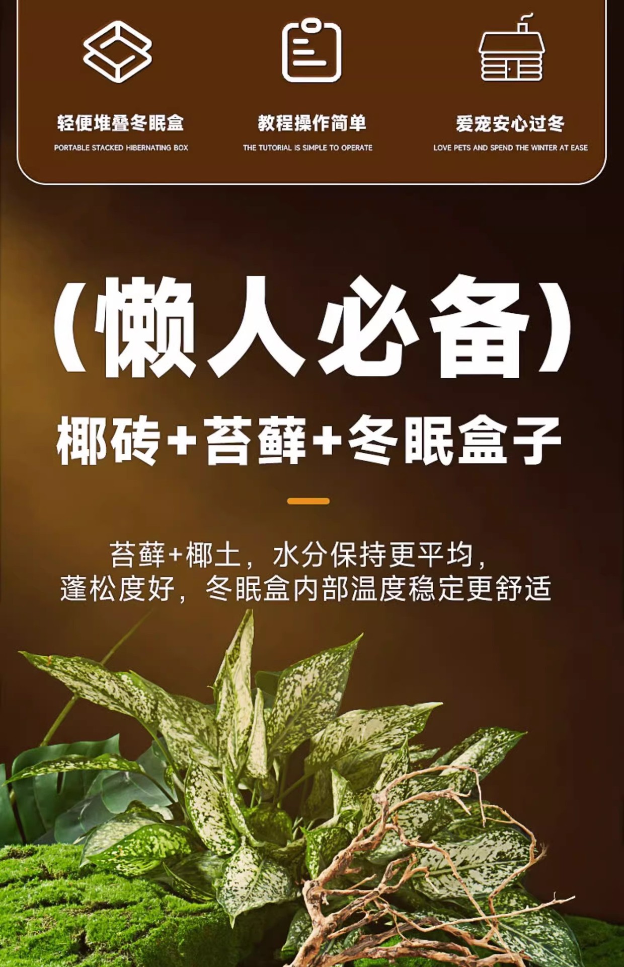 • 중형 패키지 휴면상자 + 코코넛 브릭 + 이끼 100g