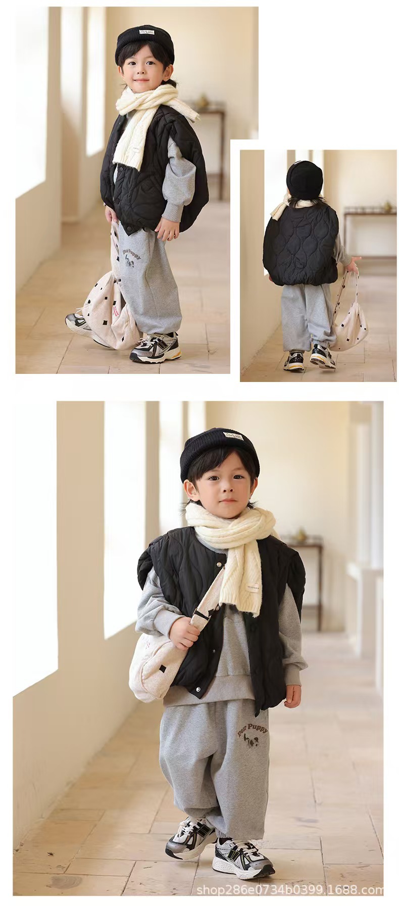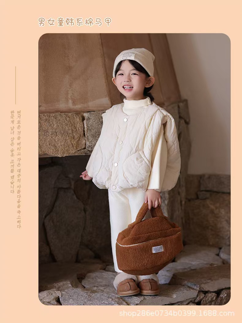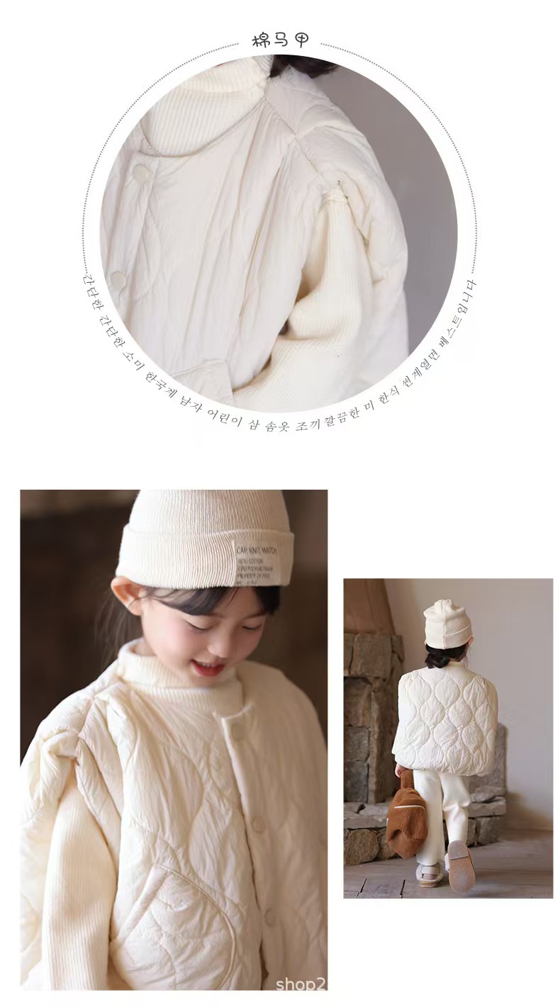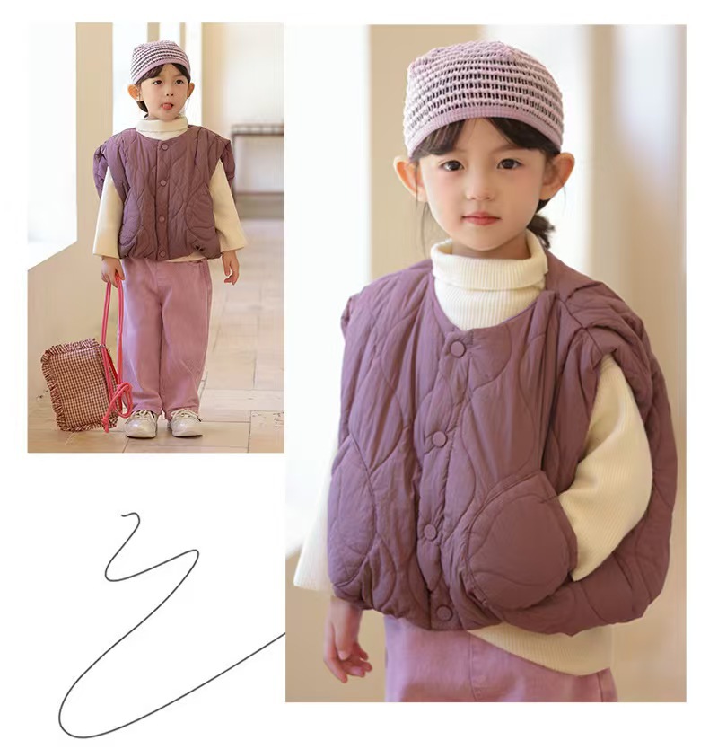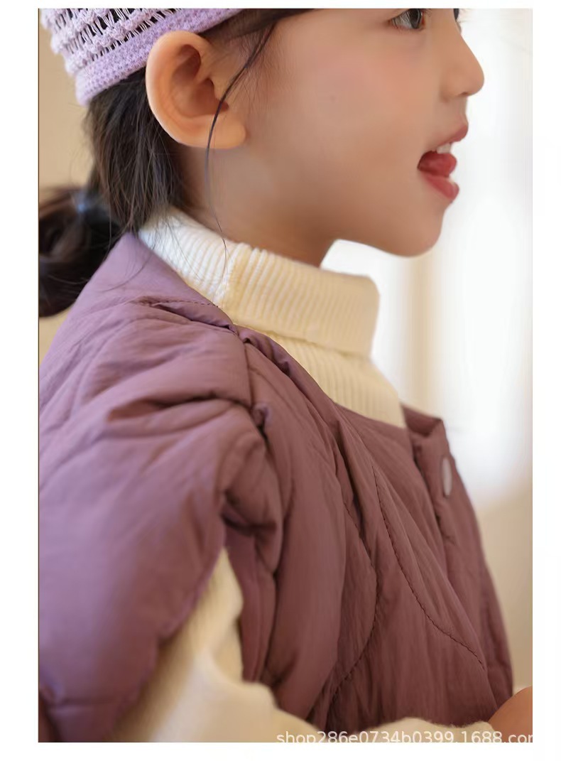 어린이 2024 면 패딩 재킷 조끼 한국 아동복 가을과 겨울 소녀 새로운 서양식 따뜻한 양복 조끼