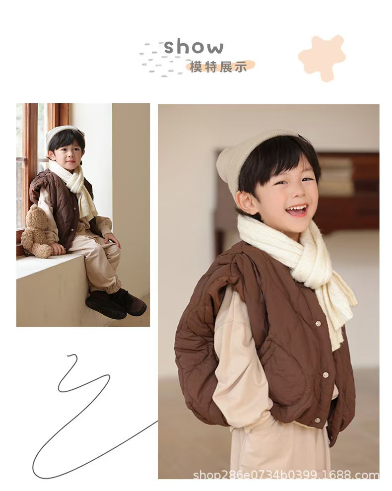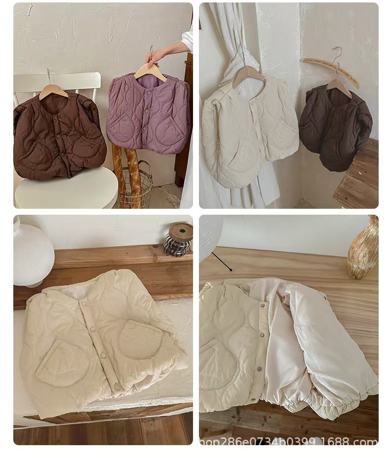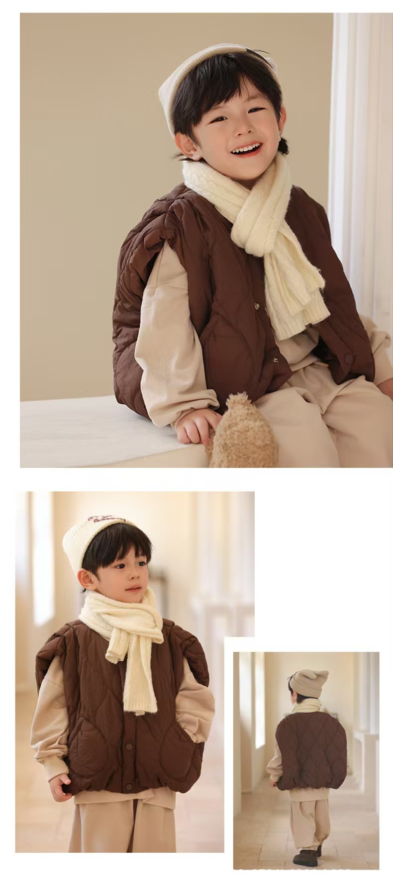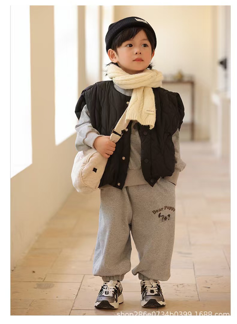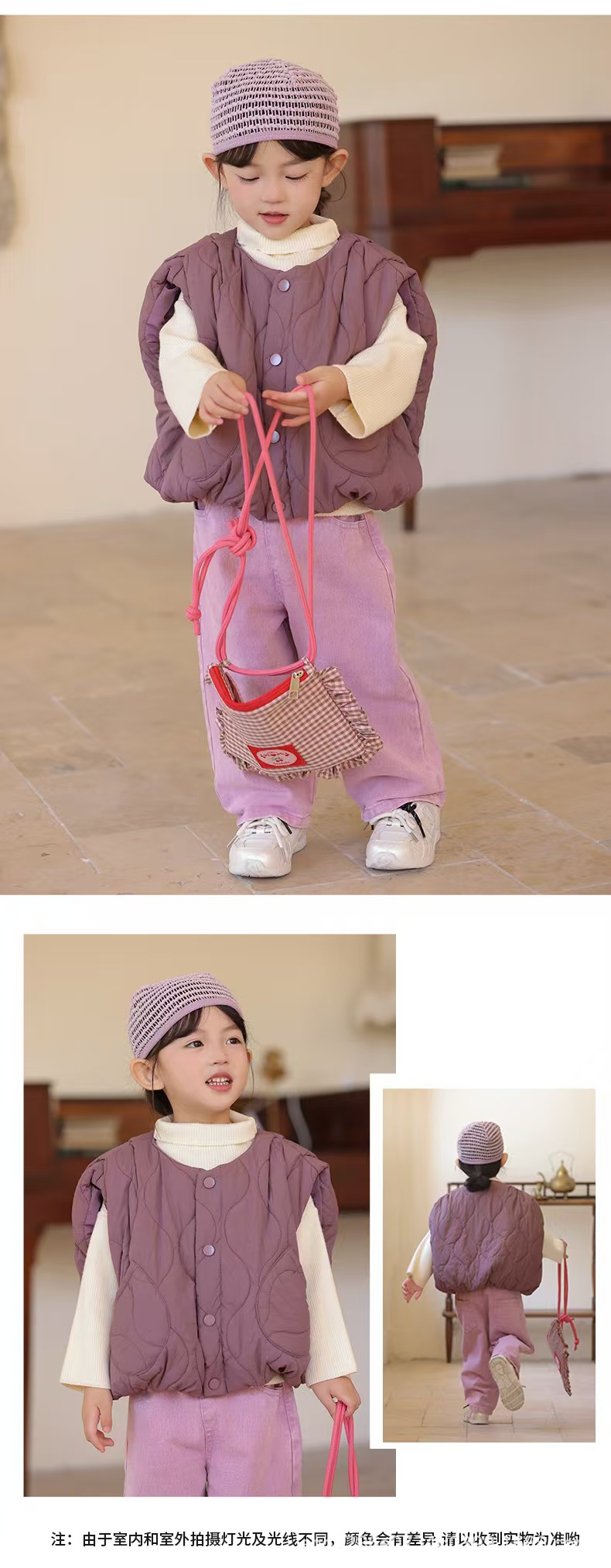 어린이 2024 면 패딩 재킷 조끼 한국 아동복 가을과 겨울 소녀 새로운 서양식 따뜻한 양복 조끼