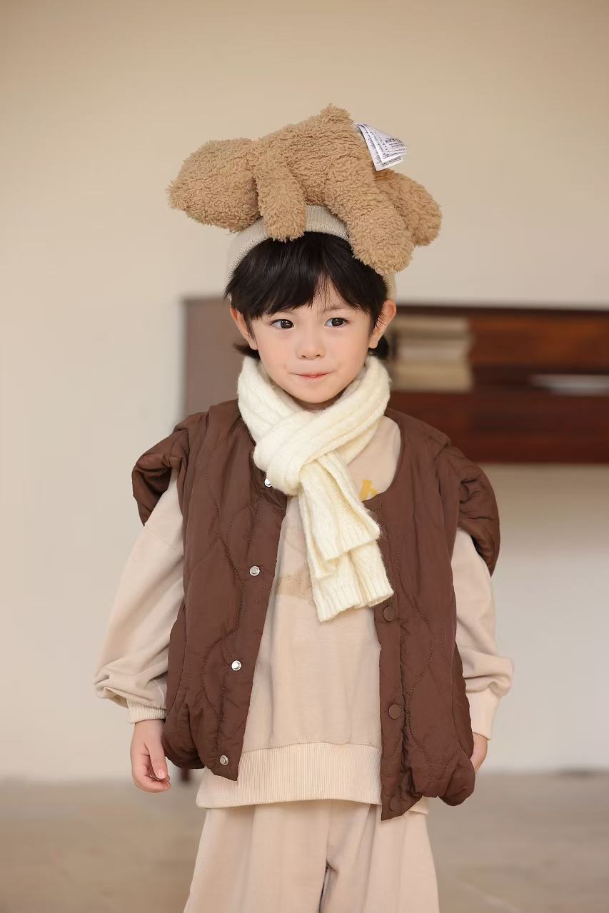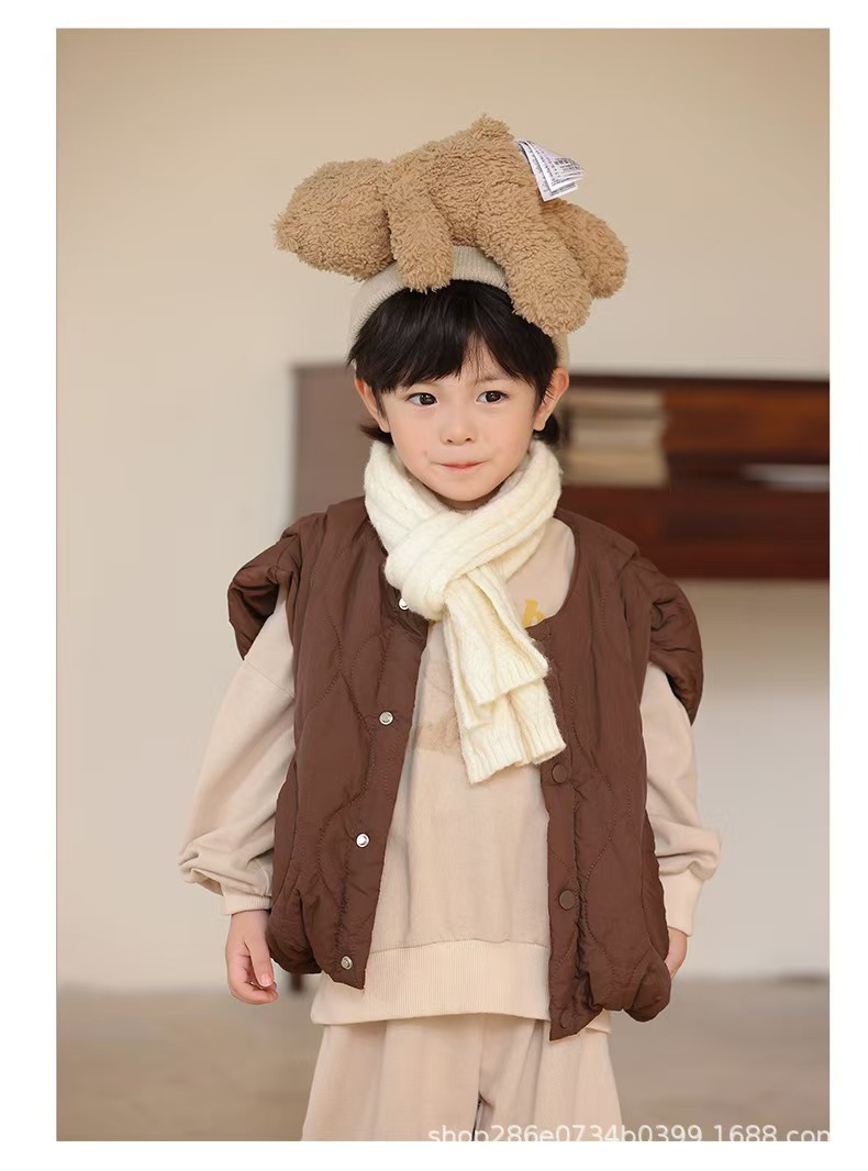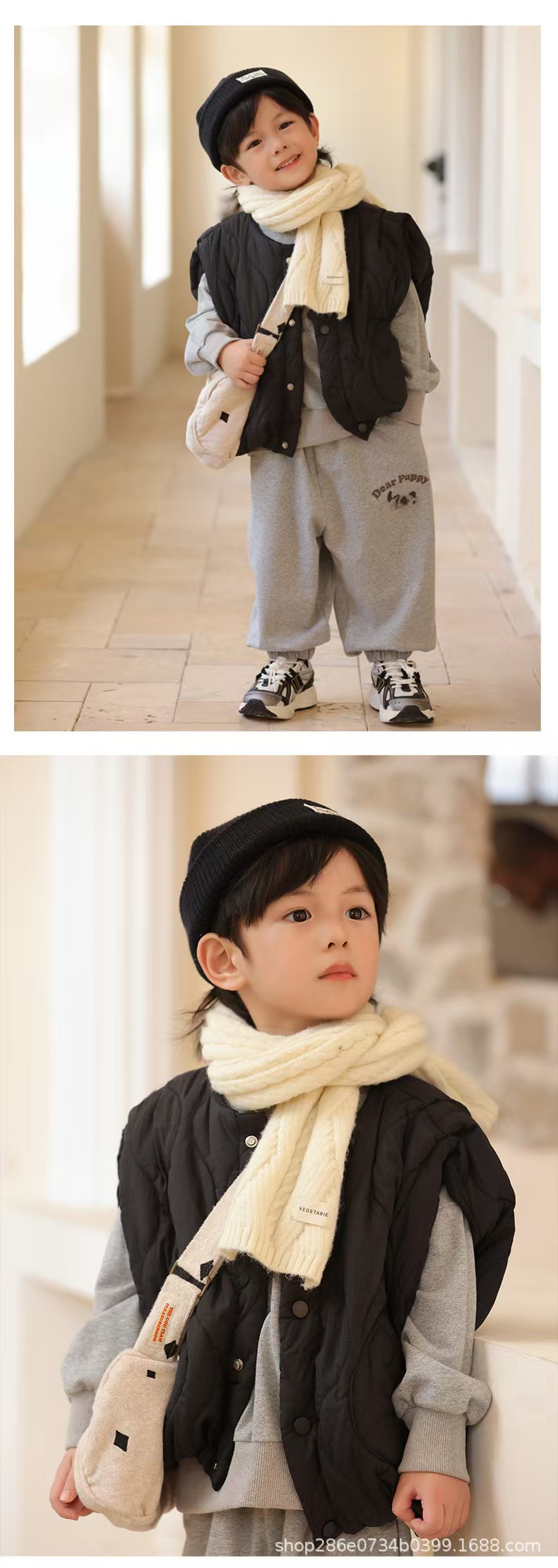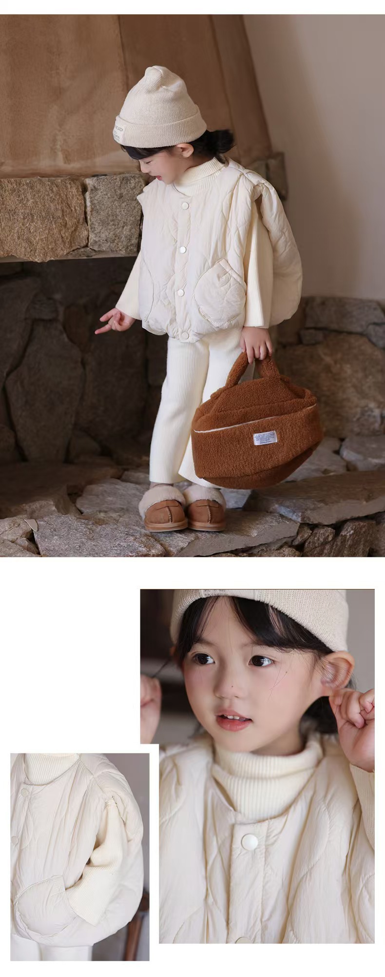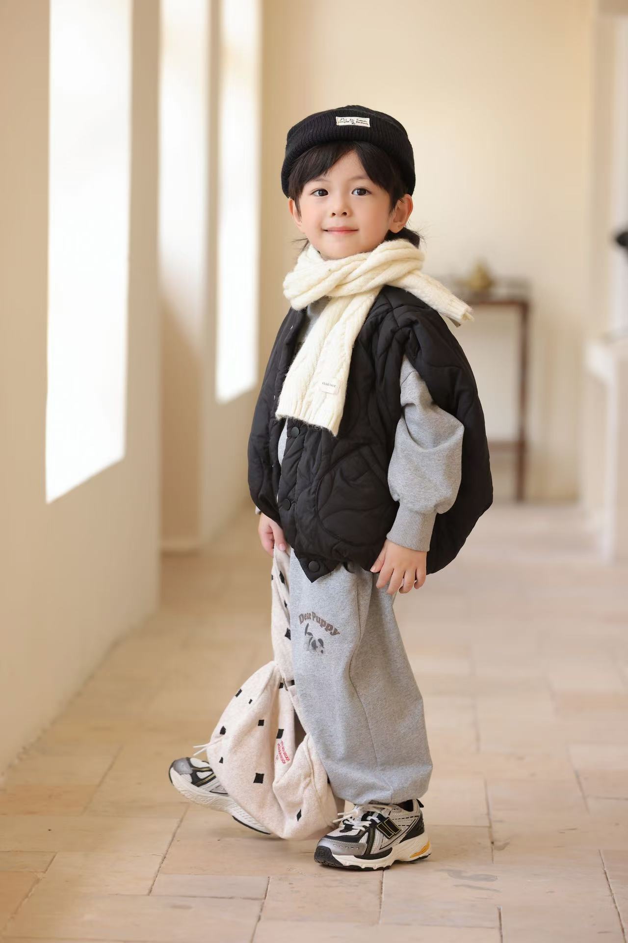 어린이 2024 면 패딩 재킷 조끼 한국 아동복 가을과 겨울 소녀 새로운 서양식 따뜻한 양복 조끼