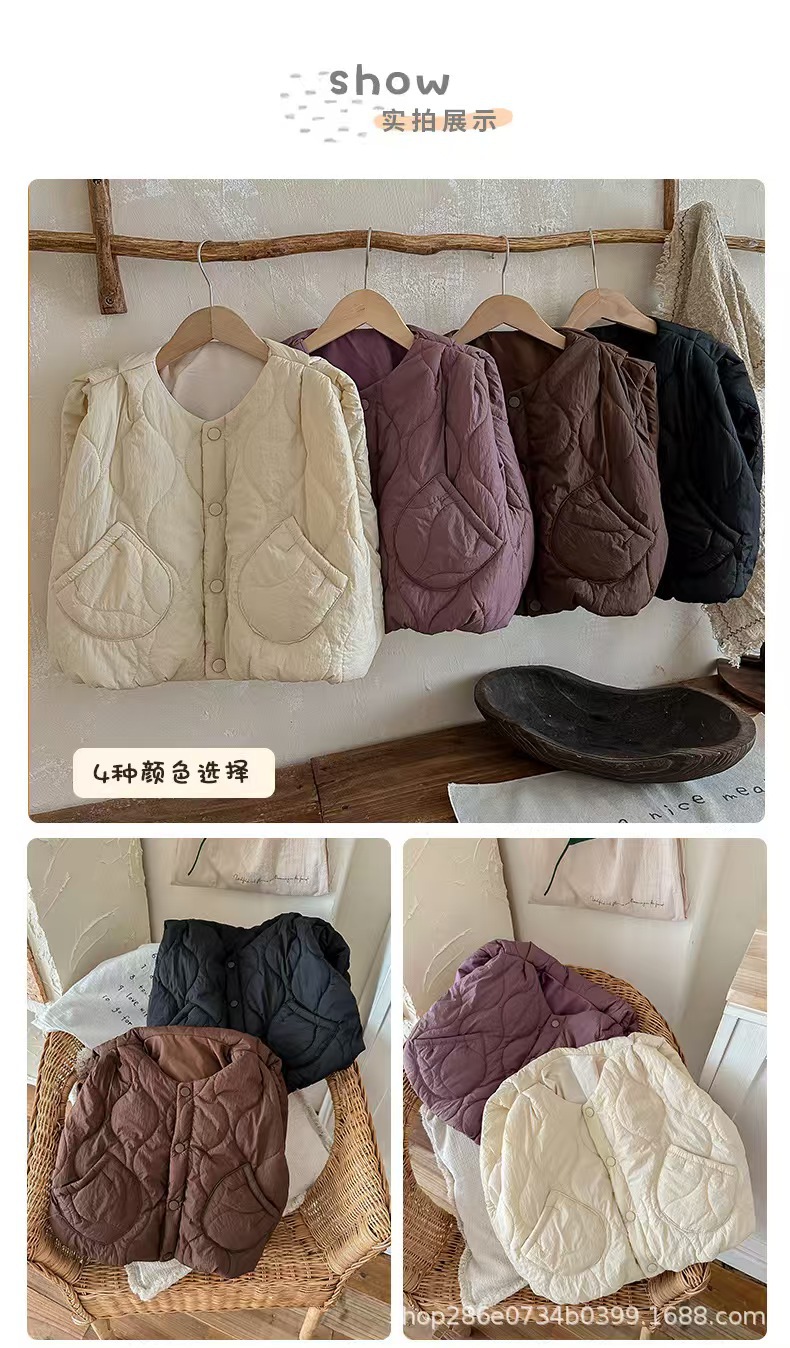어린이 2024 면 패딩 재킷 조끼 한국 아동복 가을과 겨울 소녀 새로운 서양식 따뜻한 양복 조끼스토어 가기