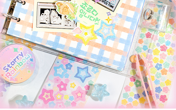 언어 유휴 다이 커팅 테이프 스타 라이트 투어 시리즈 귀여운 파운데이션 조커 소재 장식 손 계정 스타 구어 카드 스티커스토어 가기