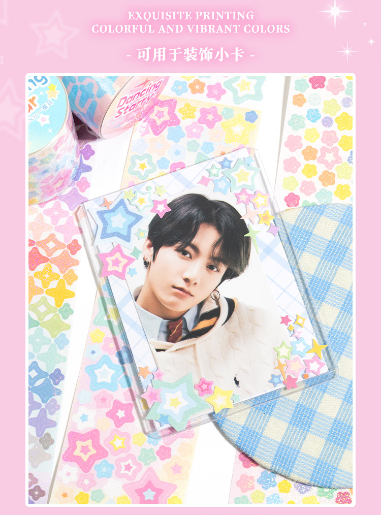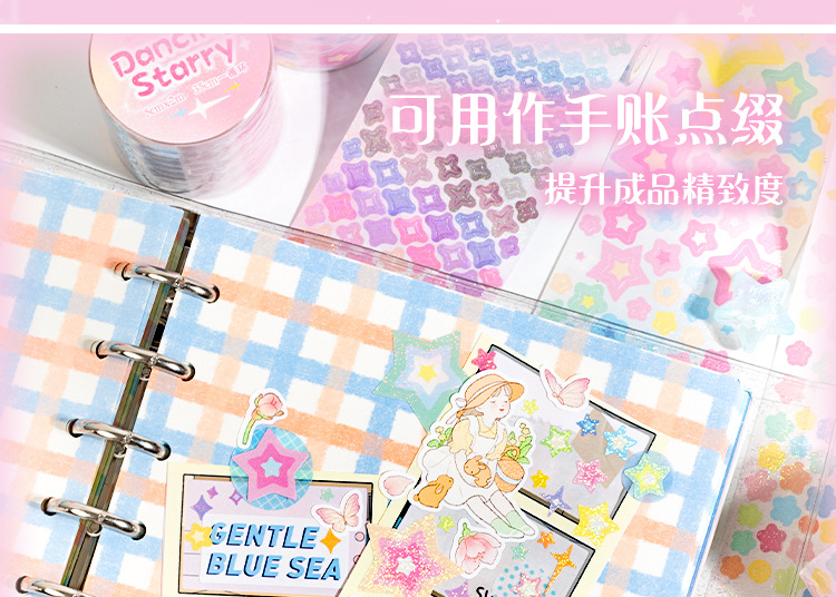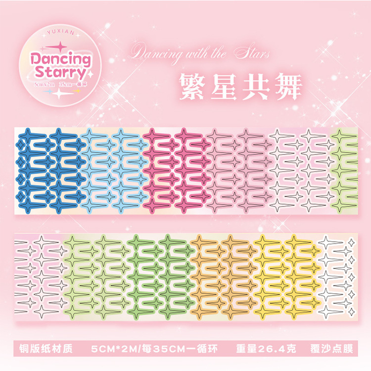 언어 유휴 다이 커팅 테이프 스타 라이트 투어 시리즈 귀여운 파운데이션 조커 소재 장식 손 계정 스타 구어 카드 스티커
