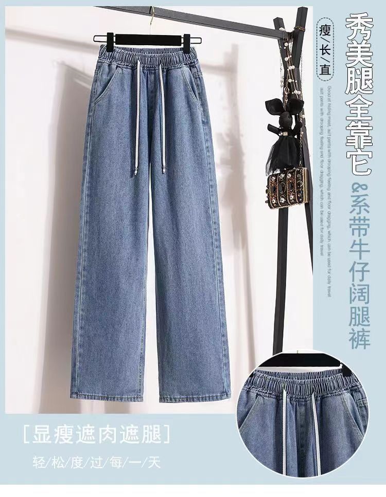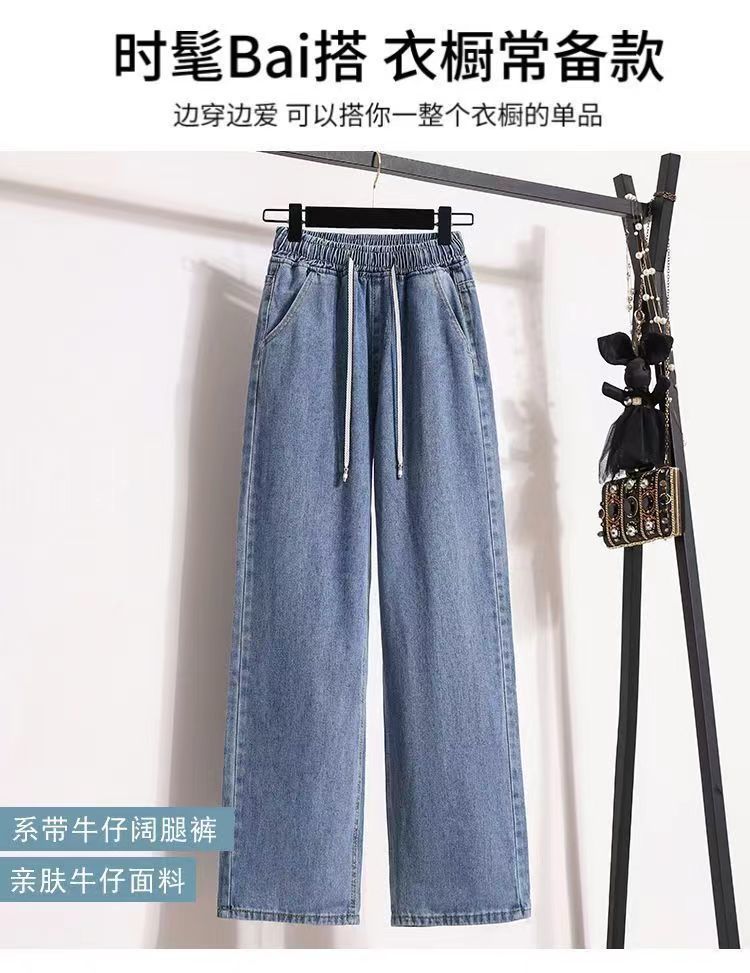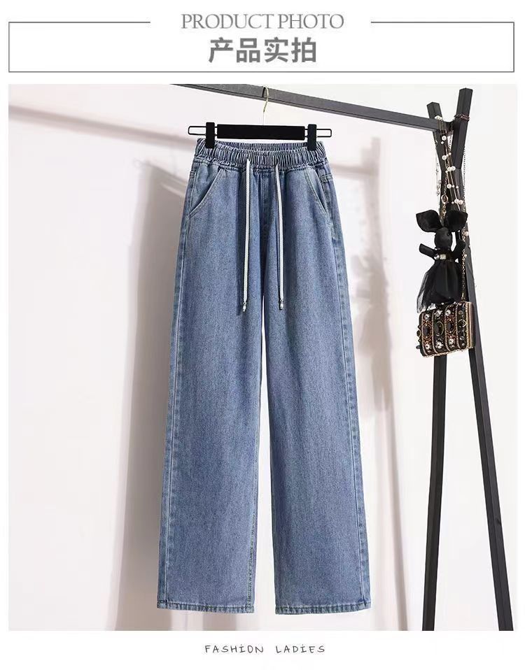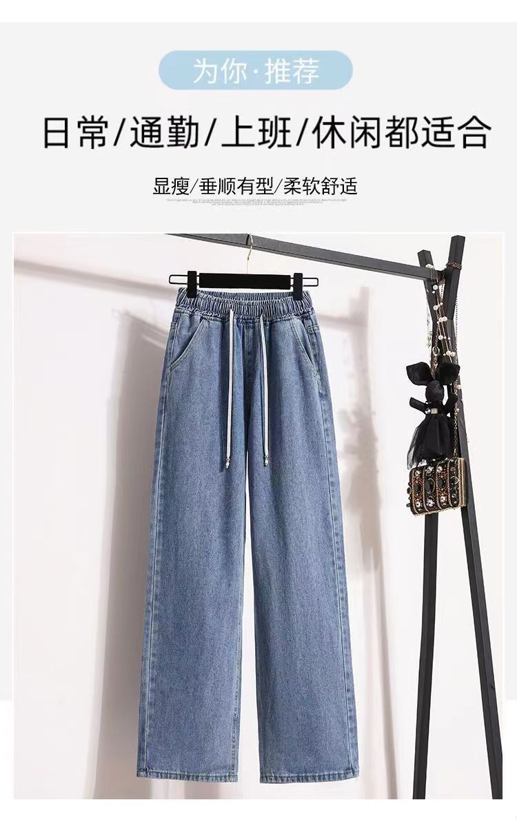 2024 플러스 사이즈 여성 봄과 가을 탄성 미드 웨이스트 청바지 느슨한 슬림 캐주얼 다재다능한 대학 스트레이트 팬츠