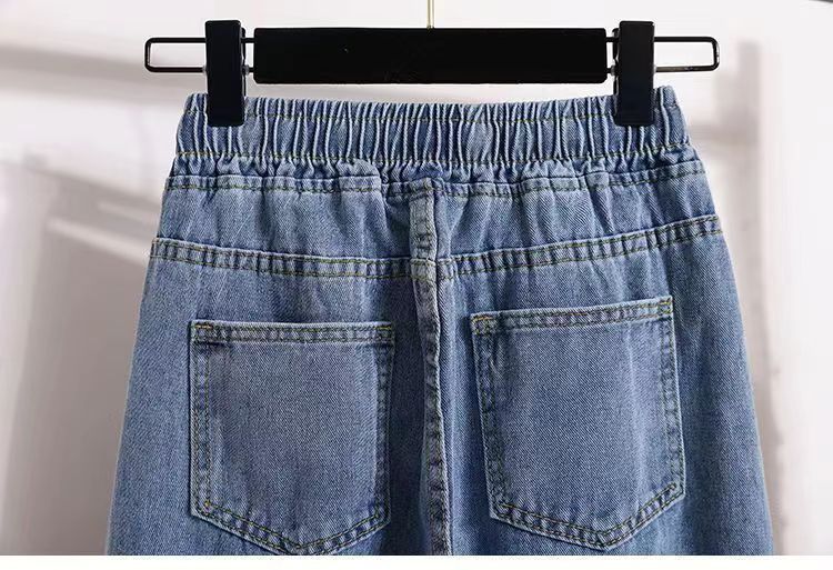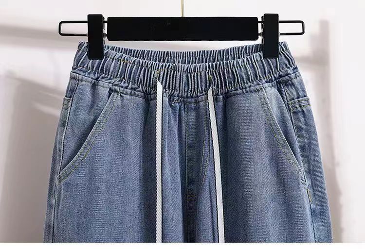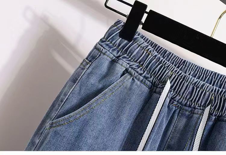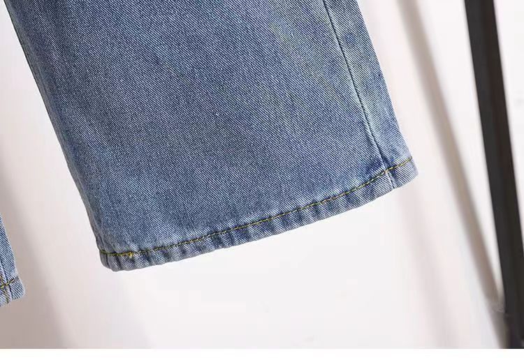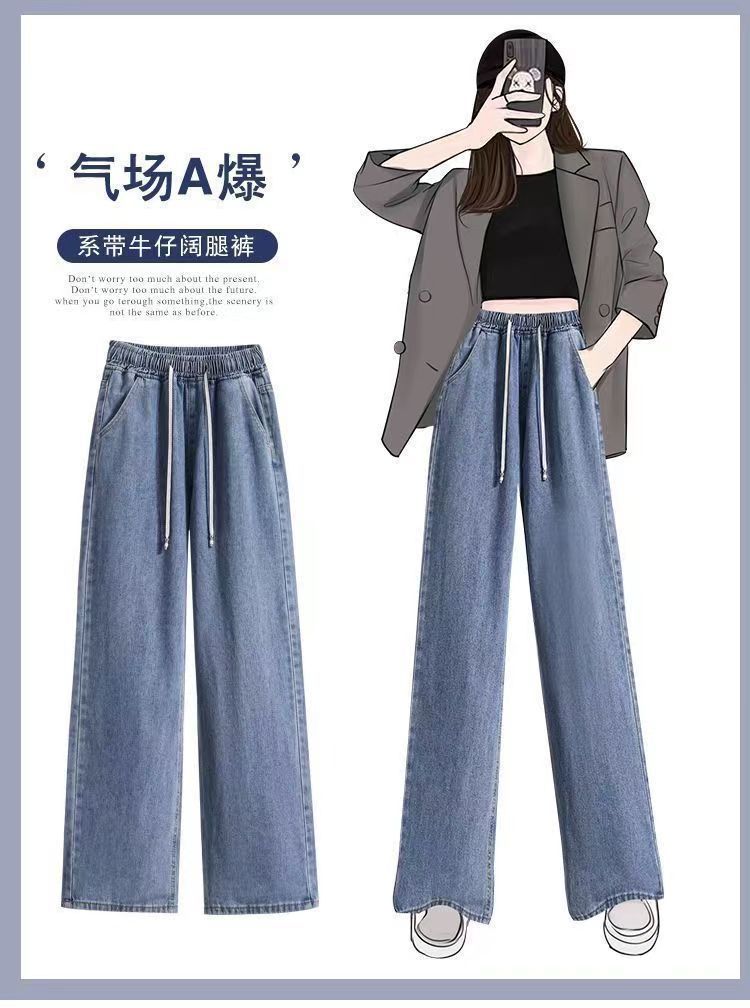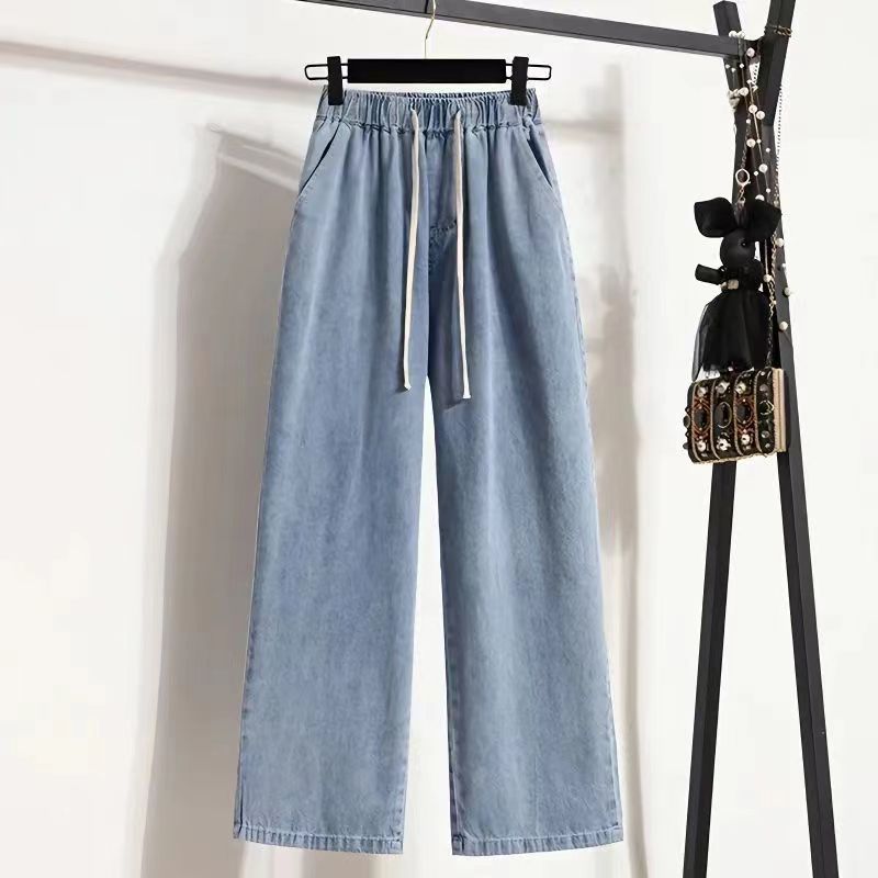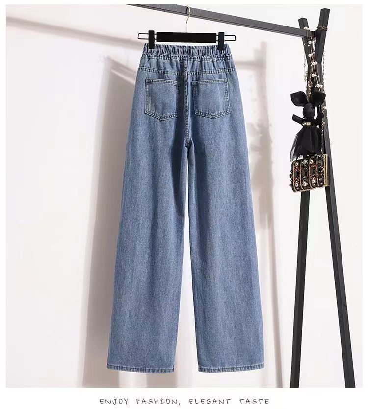 2024 플러스 사이즈 여성 봄과 가을 탄성 미드 웨이스트 청바지 느슨한 슬림 캐주얼 다재다능한 대학 스트레이트 팬츠