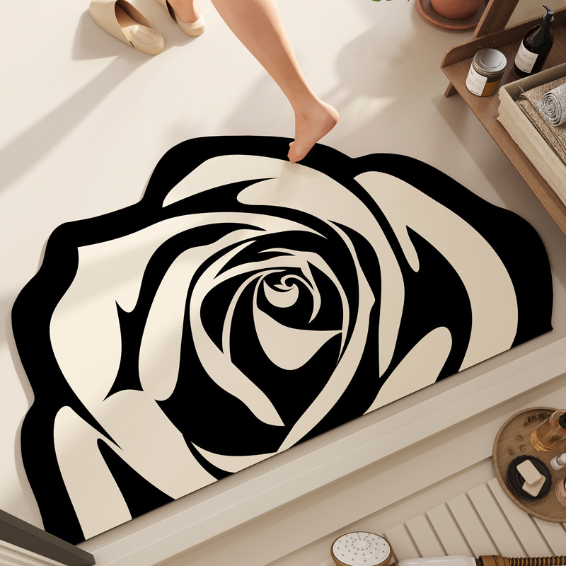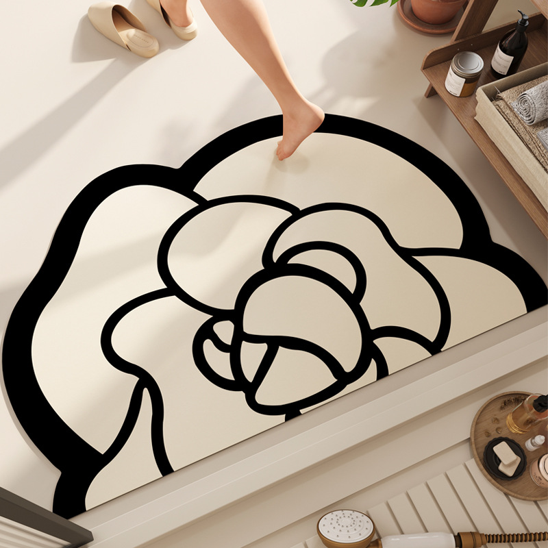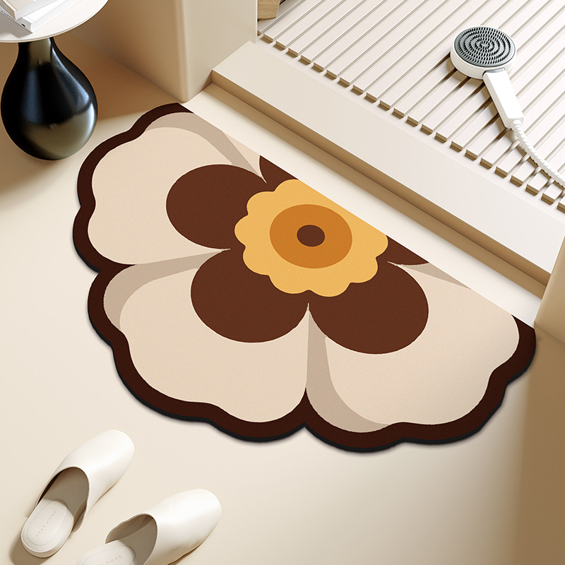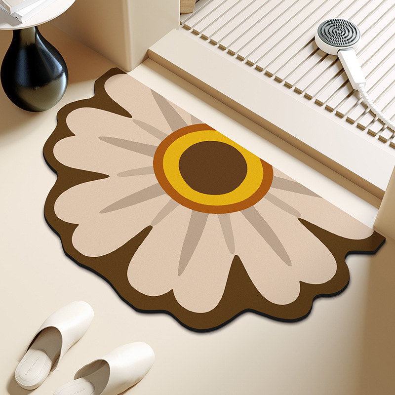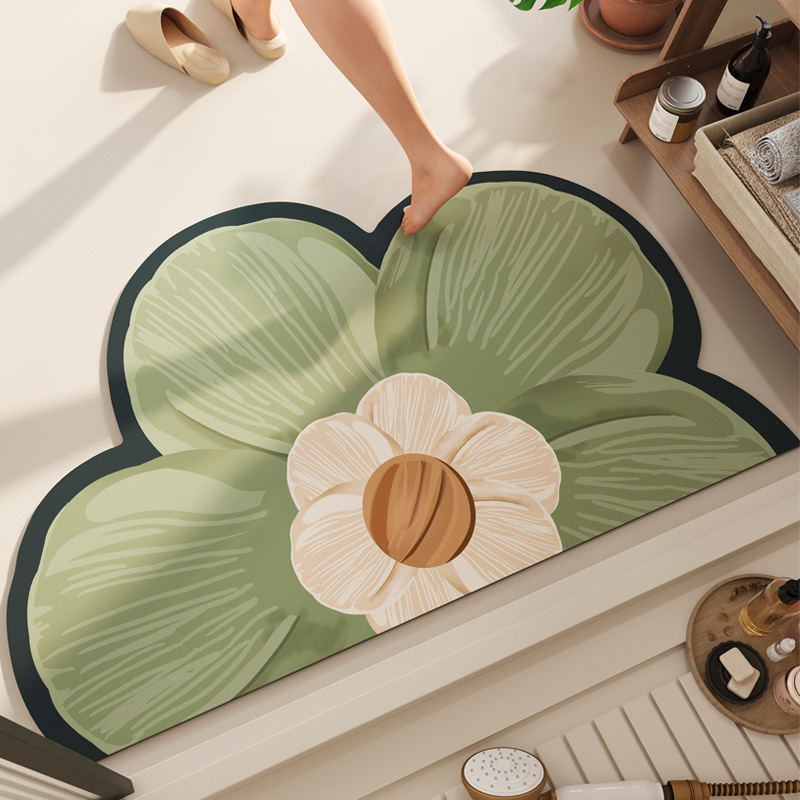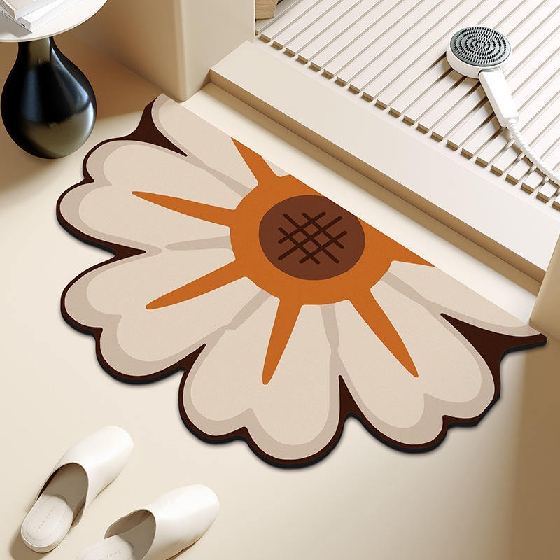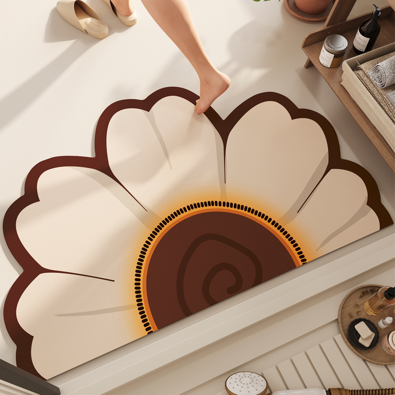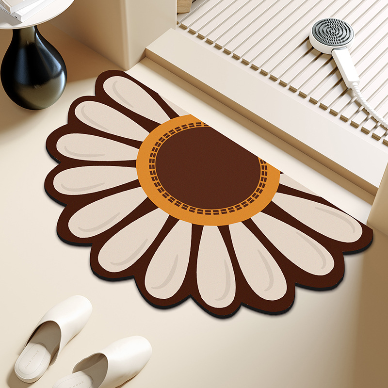 반원형 꽃 욕실 욕실 도어 diatom 진흙 미끄럼 방지 흡수성 빠른 건조 바닥 매트 화장실 주방 매트