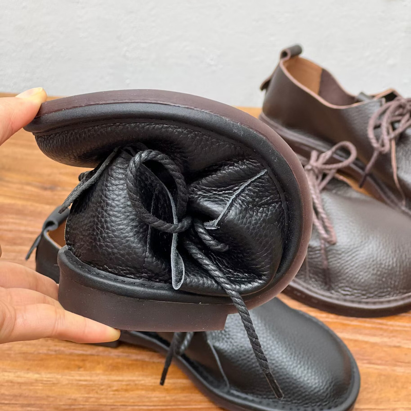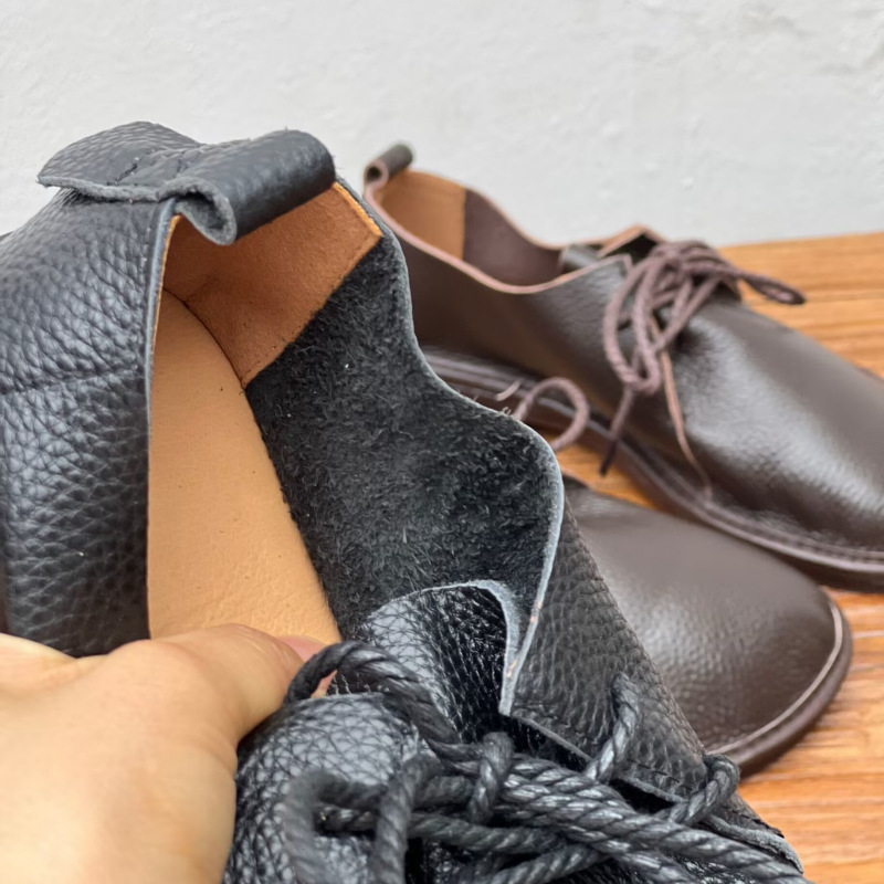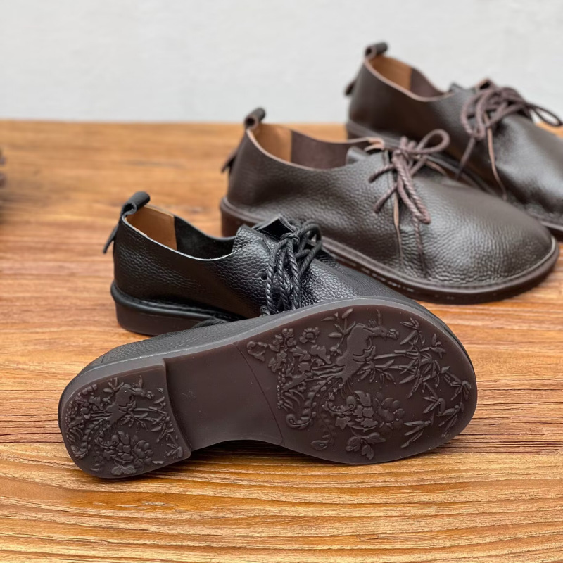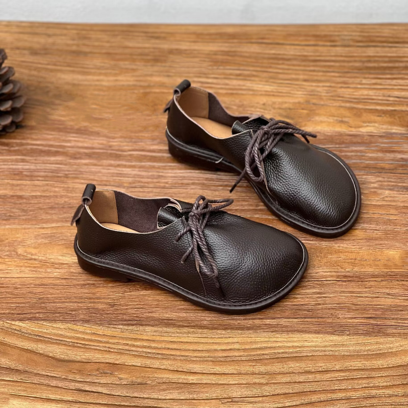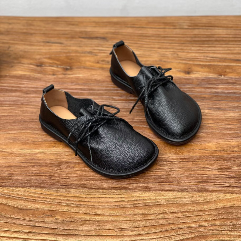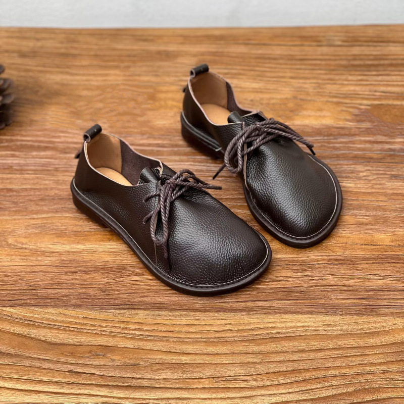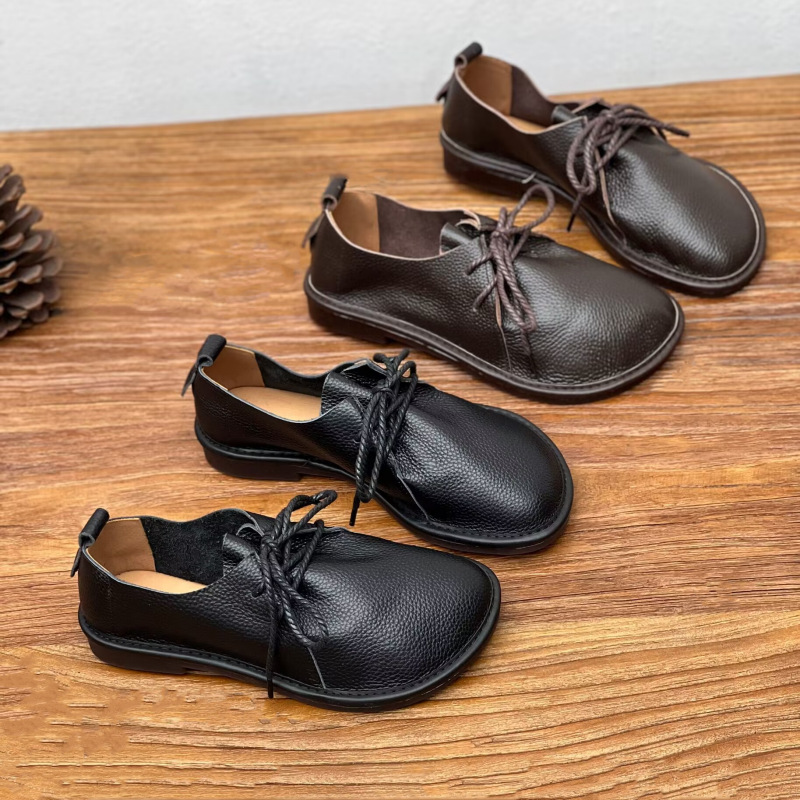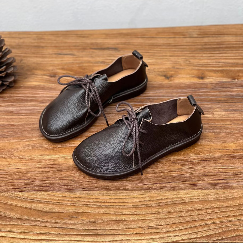 대외 무역 수제 소 가죽 신발 사계절 복고풍 문학 라운드 발가락 레이스 업 부드러운 단독 캐주얼 대형 정품 가죽 여성 신발스토어 가기