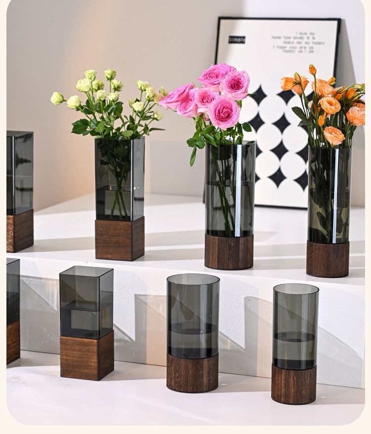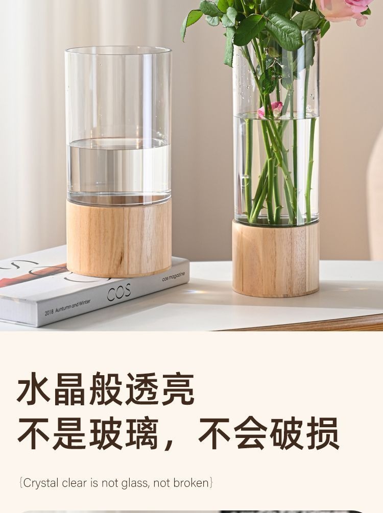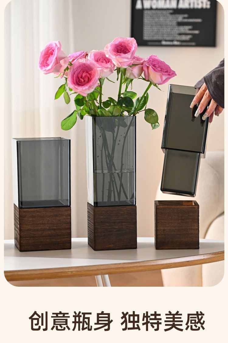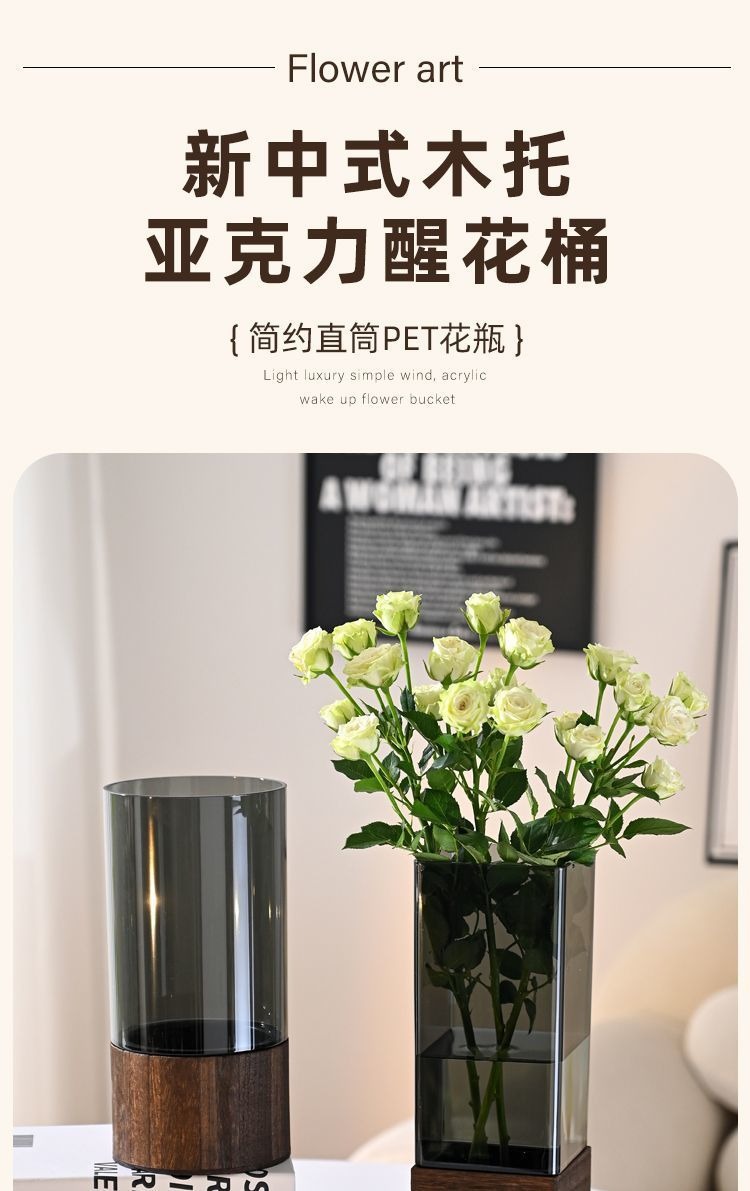 높은 투자율 모방 유리 안티 가을 PET 투명 꽃병 나무 꽃병 두껍게 둥근 사각형 바탕 화면 장식스토어 가기