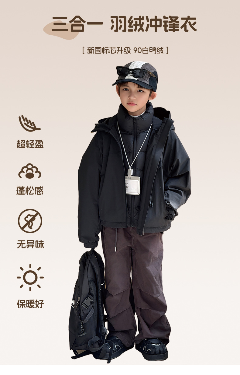 어린이 충전 옷 3 대 1 다운 재킷 겨울 옷 분리 가능한 루즈 재킷 아기 소년과 소녀 다운 재킷