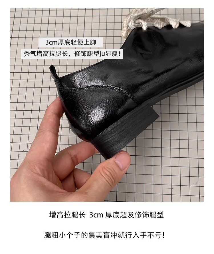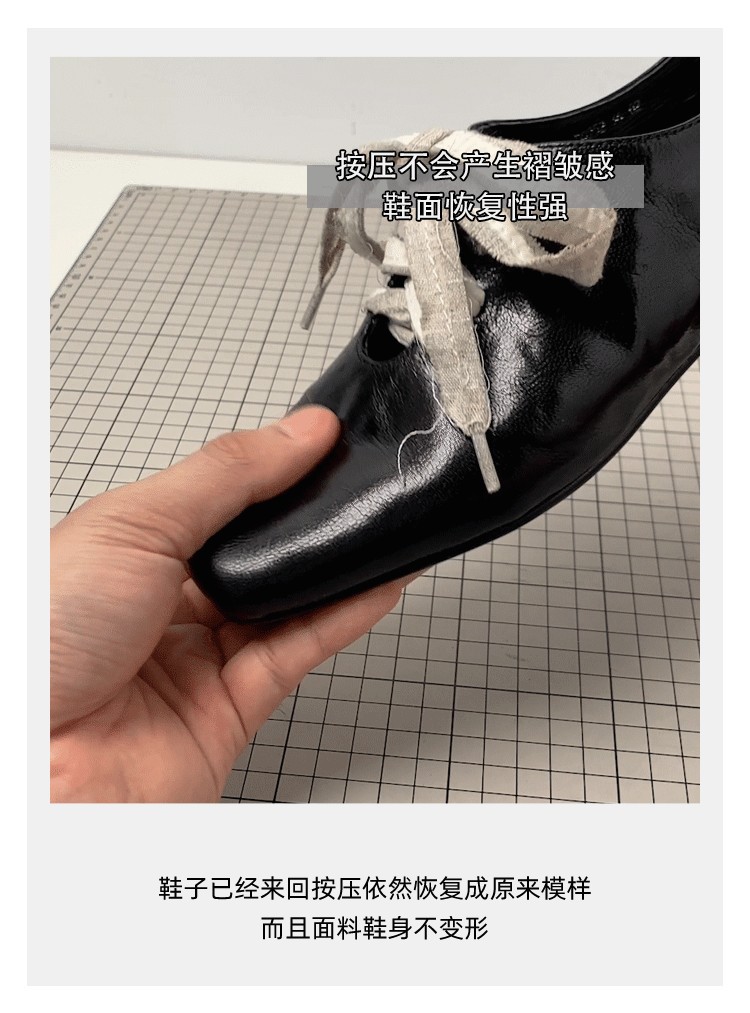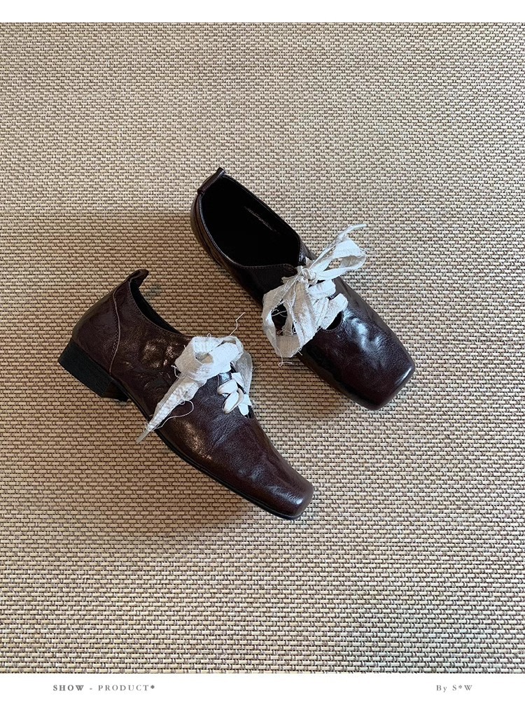 즉시 배송! 레트로 문예 스타일의 사각코 가죽 슈즈, 고급스러운 굽, 앞끈으로 묶는 발레 스타일의 다용도 여성용 신발스토어 가기