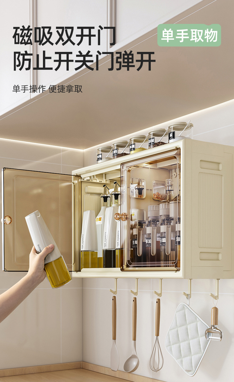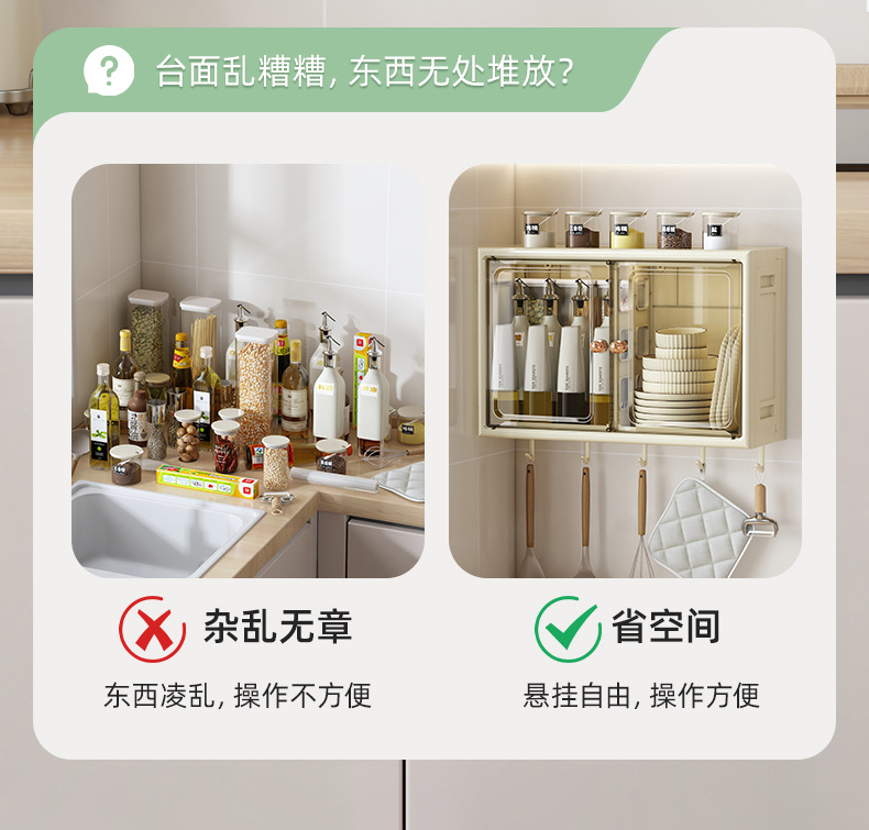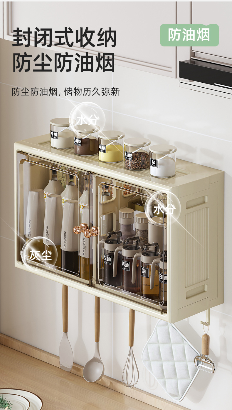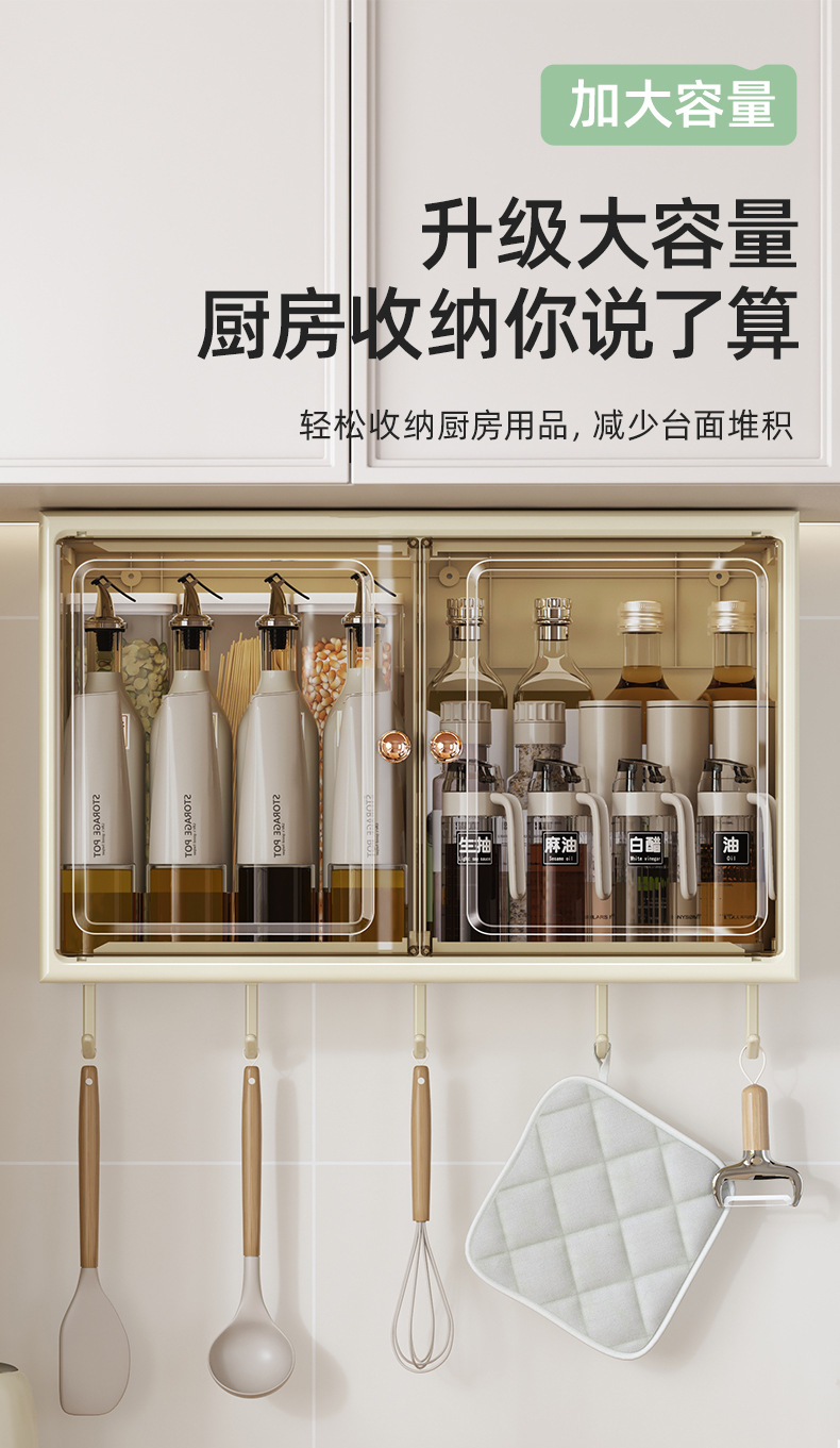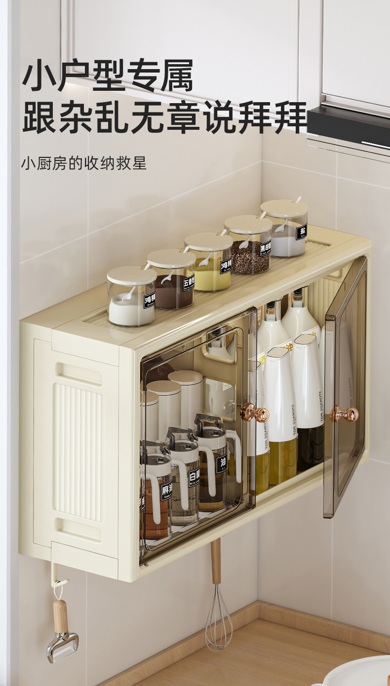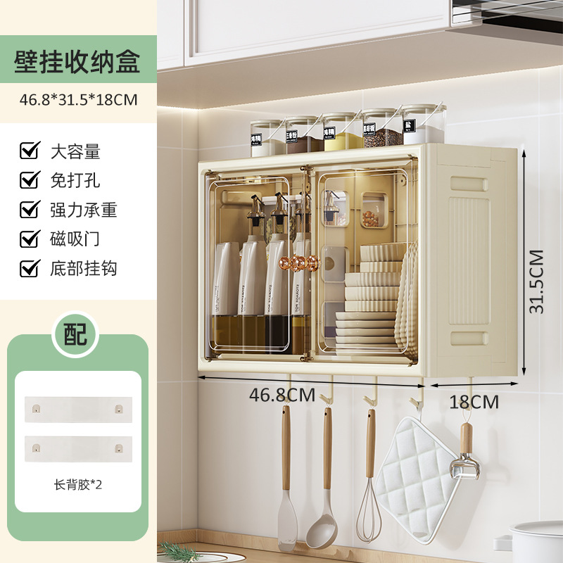 다기능 주방 랙 조미료 보관 캐비닛 펀치없는 벽 매달려 탈선 된 가정용 대용량 저장 상자