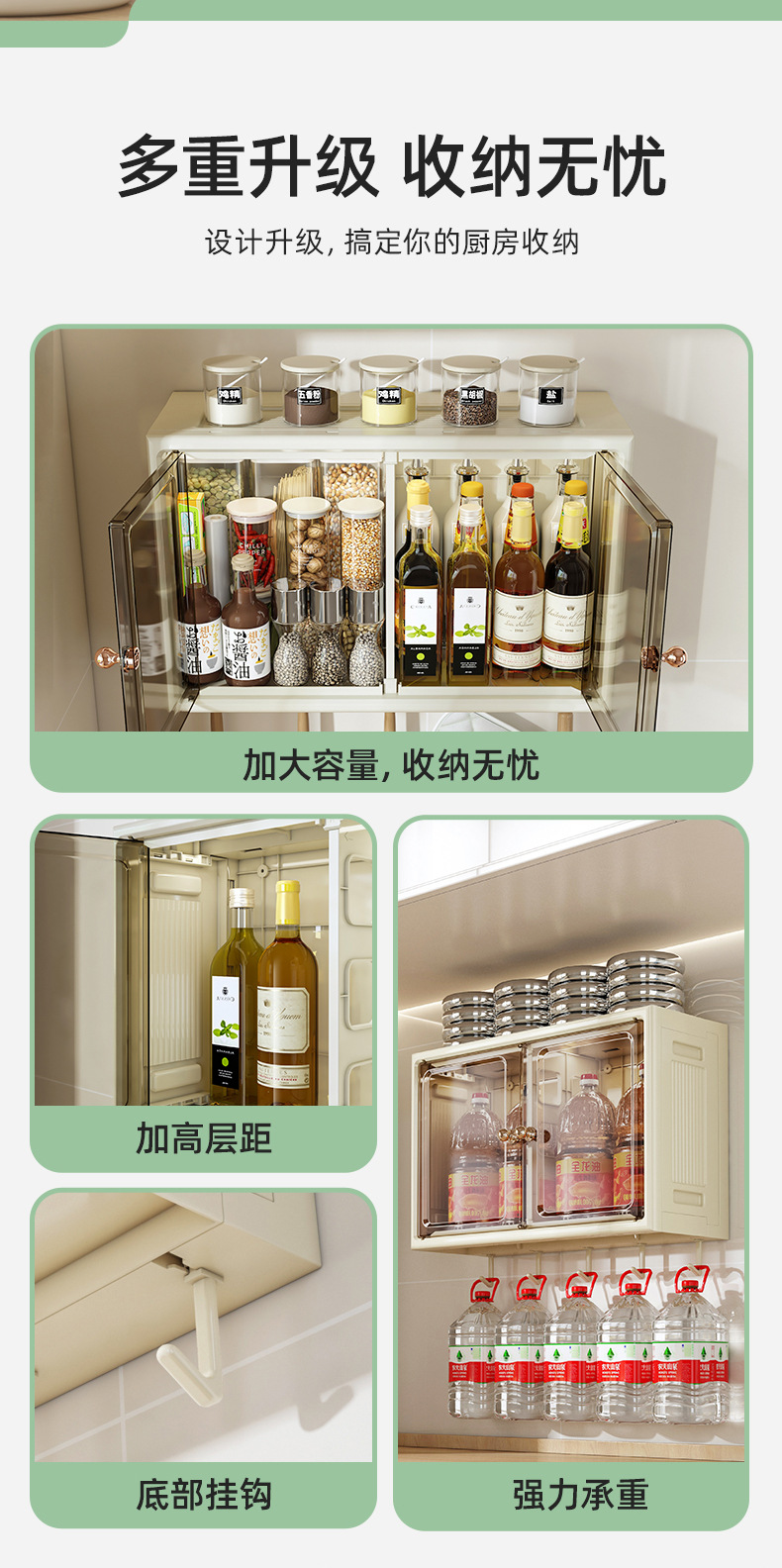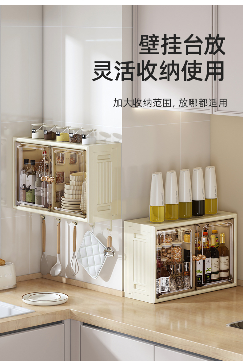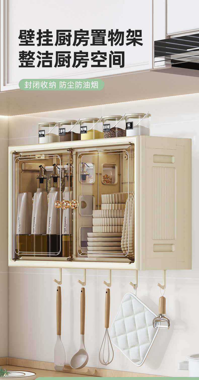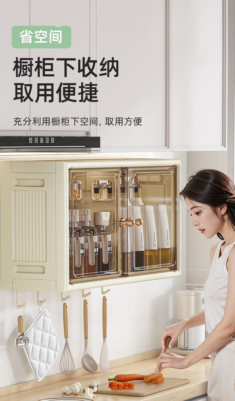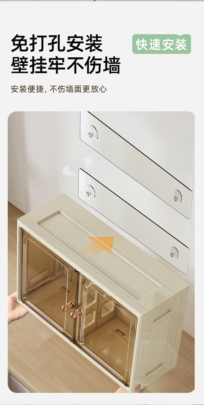 다기능 주방 랙 조미료 보관 캐비닛 펀치없는 벽 매달려 탈선 된 가정용 대용량 저장 상자